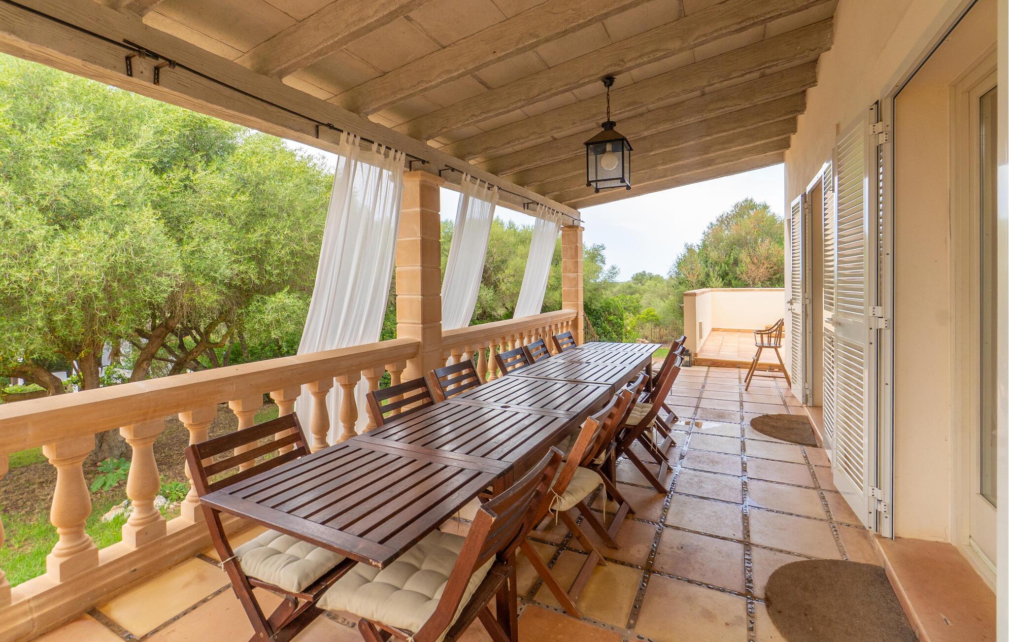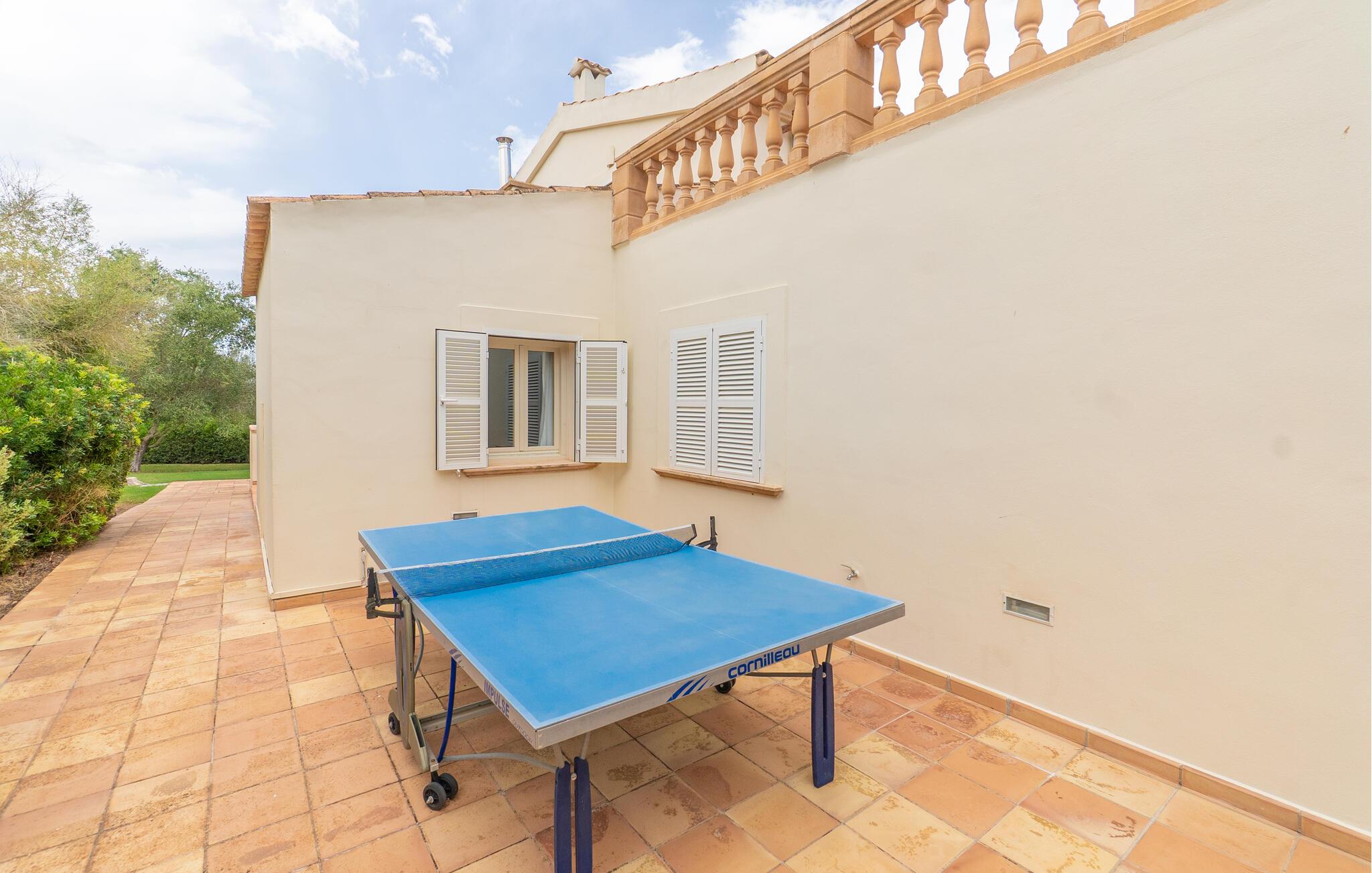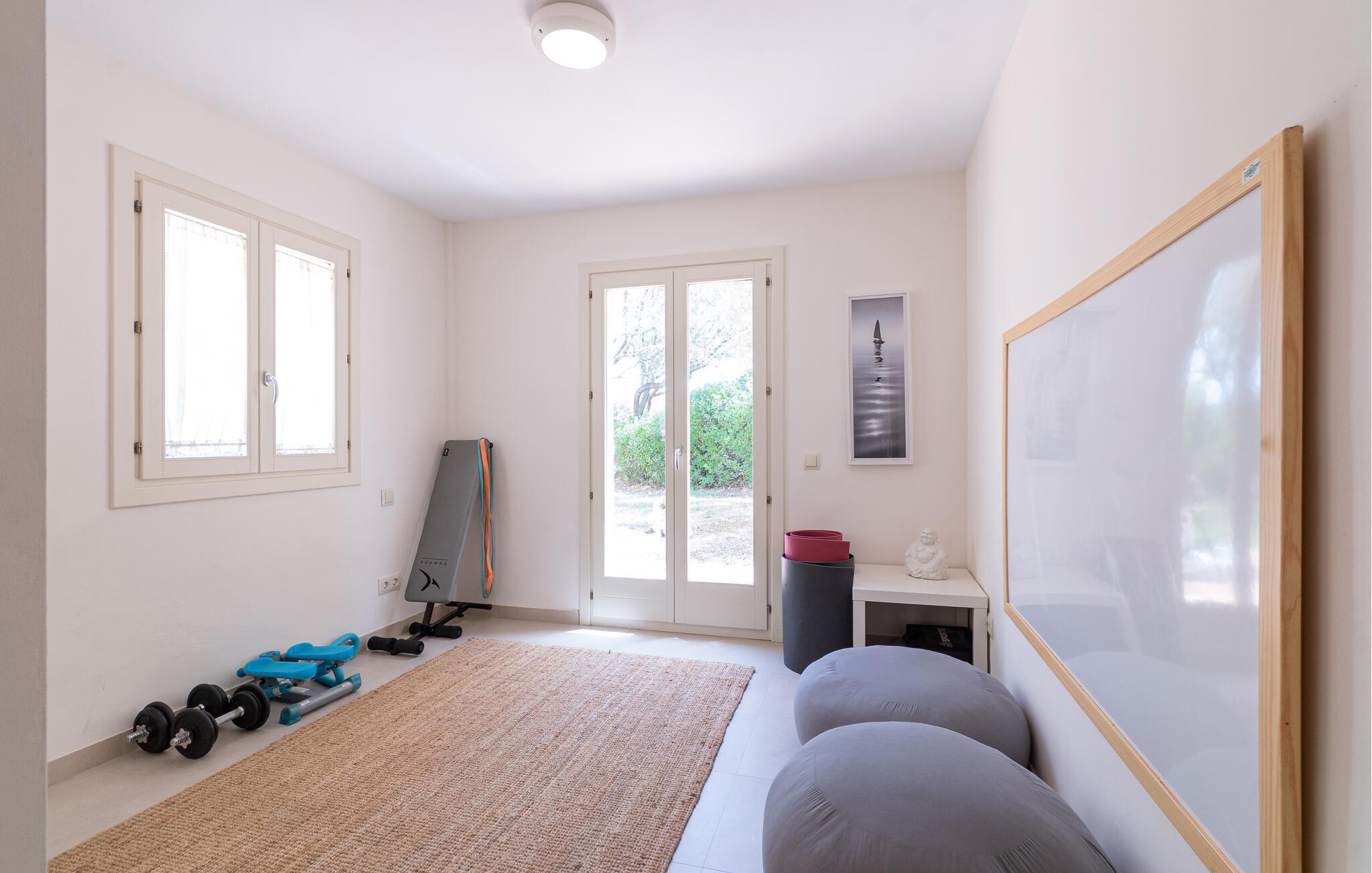 Nyd en uforglemmelig ferie med venner eller familie i dette rummelige feriehus med pool. Beliggende på en stor, idyllisk grund, der tilbyder maksimalt privatliv, byder denne komfortable mallorcanske finca jer velkommen. Denne drømmeagtige ejendom vil forkæle jer med alt, hvad der gør en ferie på denne fortryllende middelhavsø til en uforglemmelig oplevelse, og tilbyder rigelig plads til sociale sammenkomster - selv med en større gruppe, der søger fred og ro. Træd indenfor og lad jer betage af det lyse og smagfuldt indrettede interiør. I det rummelige køkken kan I tilberede kulinariske lækkerier med friske råvarer fra markedet og servere dem i en af de mange spiseområder. Efter lange måltider kan I forkæle jer selv med en afslappende siesta i jeres hyggelige soveværelse eller bruge træningsmaskinerne til en træning. Snak om svundne tider foran pejsen eller træk jer tilbage til den indbydende tv-stue for en film eller stille læsning. Det rummelige og alsidige udendørsområde er perfekt til fuldt ud at nyde middelhavsklimaet. Så snart I vågner, kan I svømme afslappende baner i den smukke, afsidesliggende pool, se solen stå op over havet, mens I nipper til en duftende kaffe på terrassen, og derefter lukke øjnene på liggestolen for at lytte til cikaderne. Server friskpresset appelsinjuice til morgenmad udenfor, og tænd op i grillen ved solnedgang for at slappe af i de lune sommernætter med vin og stearinlys. De romantiske bugter med turkisblåt vand og de lange, børnevenlige sandstrande på Mallorcas østkyst ligger kun en kort køretur fra denne oase af ro. Gå en tur gennem det farverige ugentlige marked i Artà, udforsk de romerske ruiner af Alcúdia - øens ældste by - eller forkæl jer selv med en drink med udsigt over havet i Son Serra. Prøv mallorcansk køkken i en hyggelig restaurant eller nyd en lækker paella serveret i skyggen. Glæd jer til en dejlig ferie i denne fortryllende finca.