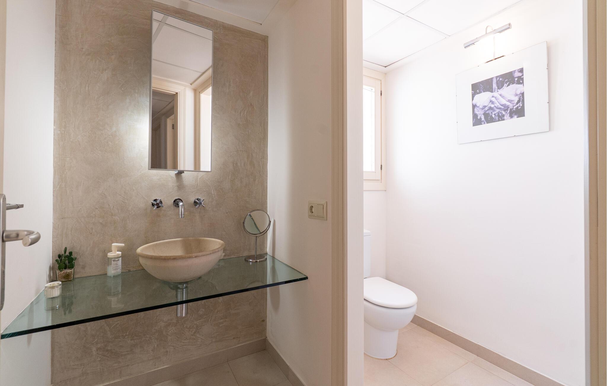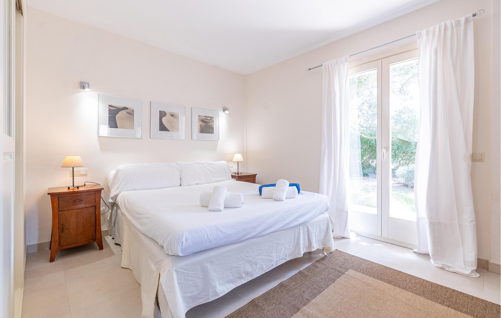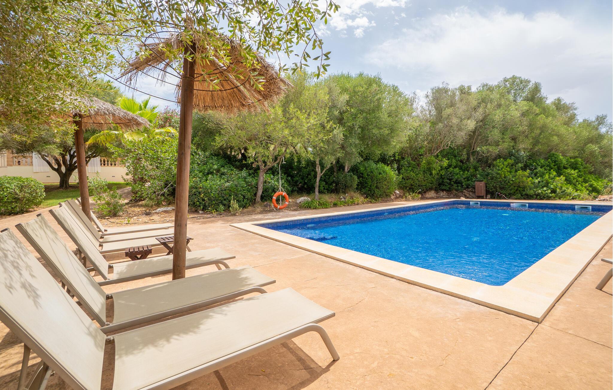 Nyd en uforglemmelig ferie med venner eller familie i dette rummelige feriehus med pool. Beliggende på en stor, idyllisk grund, der tilbyder maksimalt privatliv, byder denne komfortable mallorcanske finca jer velkommen. Denne drømmeagtige ejendom vil forkæle jer med alt, hvad der gør en ferie på denne fortryllende middelhavsø til en uforglemmelig oplevelse, og tilbyder rigelig plads til sociale sammenkomster - selv med en større gruppe, der søger fred og ro. Træd indenfor og lad jer betage af det lyse og smagfuldt indrettede interiør. I det rummelige køkken kan I tilberede kulinariske lækkerier med friske råvarer fra markedet og servere dem i en af de mange spiseområder. Efter lange måltider kan I forkæle jer selv med en afslappende siesta i jeres hyggelige soveværelse eller bruge træningsmaskinerne til en træning. Snak om svundne tider foran pejsen eller træk jer tilbage til den indbydende tv-stue for en film eller stille læsning. Det rummelige og alsidige udendørsområde er perfekt til fuldt ud at nyde middelhavsklimaet. Så snart I vågner, kan I svømme afslappende baner i den smukke, afsidesliggende pool, se solen stå op over havet, mens I nipper til en duftende kaffe på terrassen, og derefter lukke øjnene på liggestolen for at lytte til cikaderne. Server friskpresset appelsinjuice til morgenmad udenfor, og tænd op i grillen ved solnedgang for at slappe af i de lune sommernætter med vin og stearinlys. De romantiske bugter med turkisblåt vand og de lange, børnevenlige sandstrande på Mallorcas østkyst ligger kun en kort køretur fra denne oase af ro. Gå en tur gennem det farverige ugentlige marked i Artà, udforsk de romerske ruiner af Alcúdia - øens ældste by - eller forkæl jer selv med en drink med udsigt over havet i Son Serra. Prøv mallorcansk køkken i en hyggelig restaurant eller nyd en lækker paella serveret i skyggen. Glæd jer til en dejlig ferie i denne fortryllende finca.