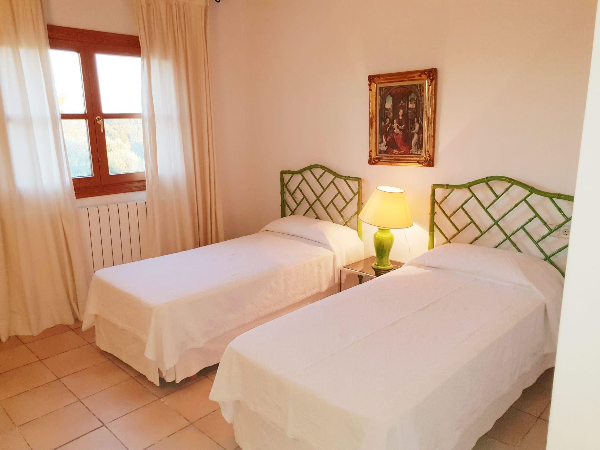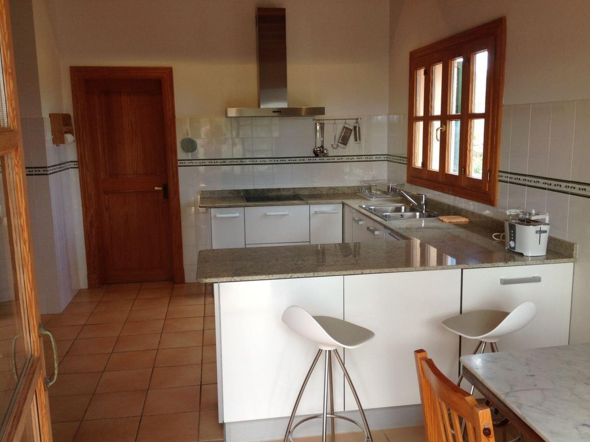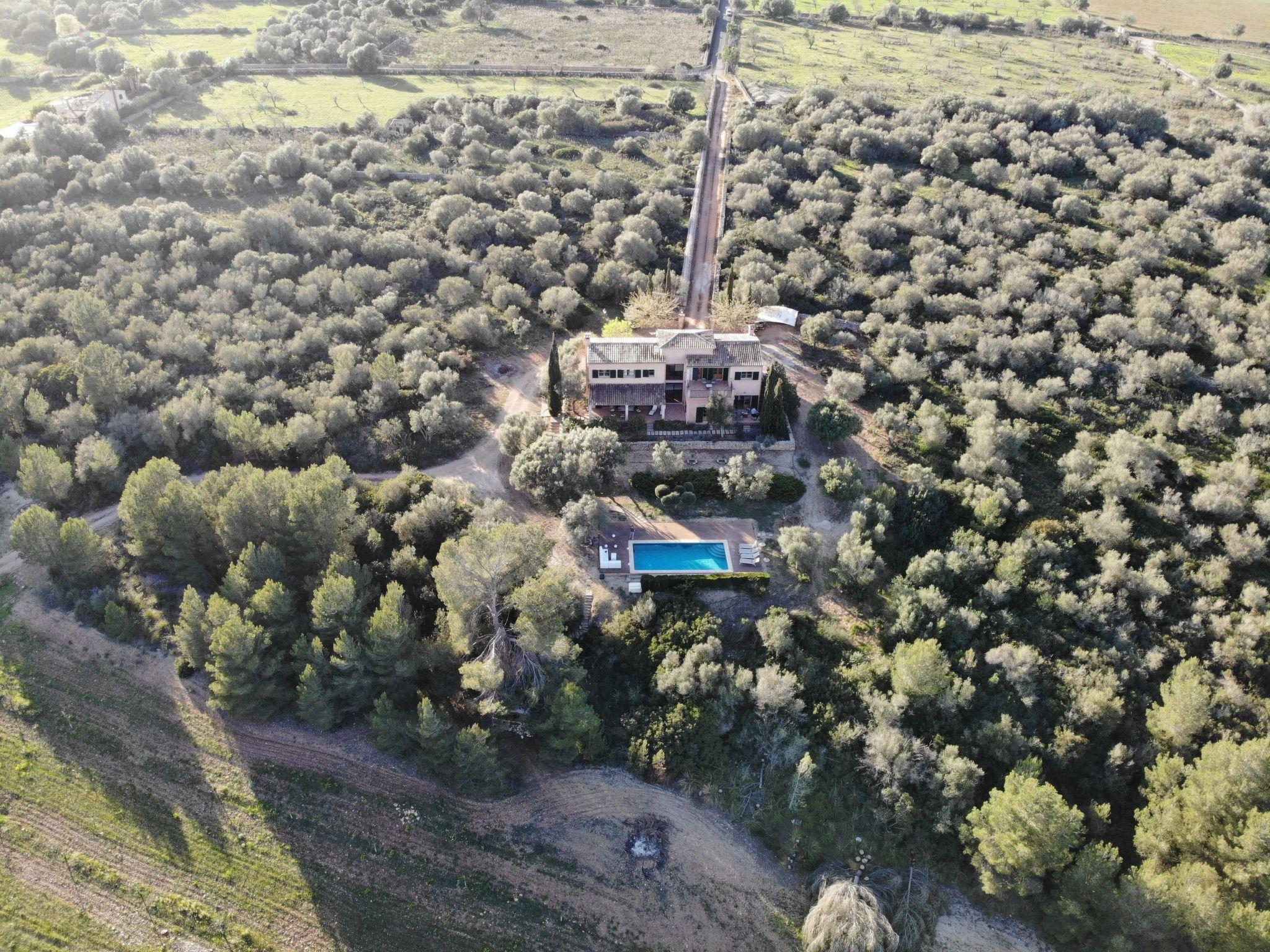 The distribution is: on the main floor is the hall, dining room, kitchen, toilet, living room, pantry and laundry room; on the upper floor, all bedrooms have their own bathroom for all and wardrobes with bedding and towells. Outside has 210,000 square meters and more land with private access to free field for walking, enogh to get lost. The finca also has two garages for 2 cars, swimming pool (9,5*4,5 m), solarium with 2 (3/3 meters) sunshades and 7 sun loungers, shower, 2 terraces with chairs, porch with table and chairs, barbecue and garden.