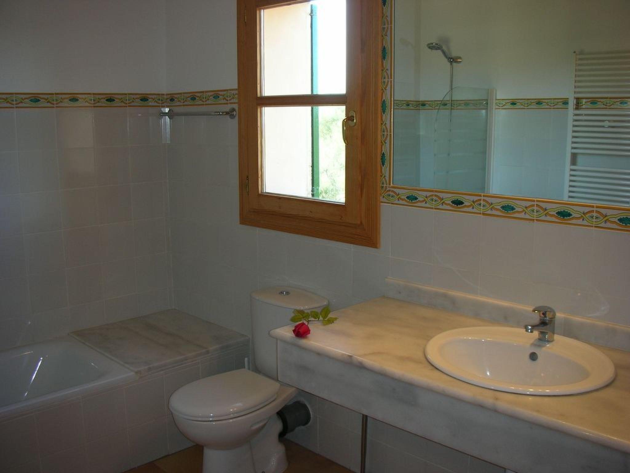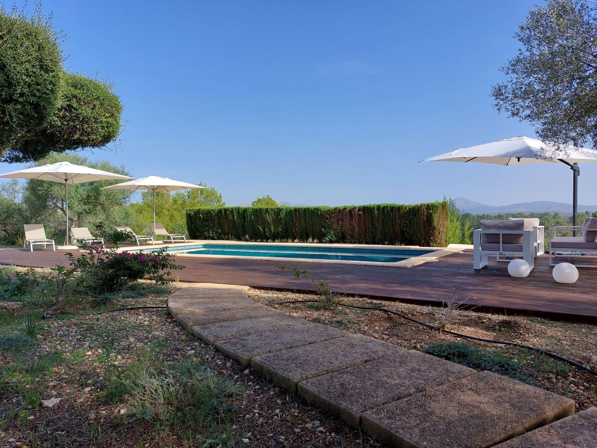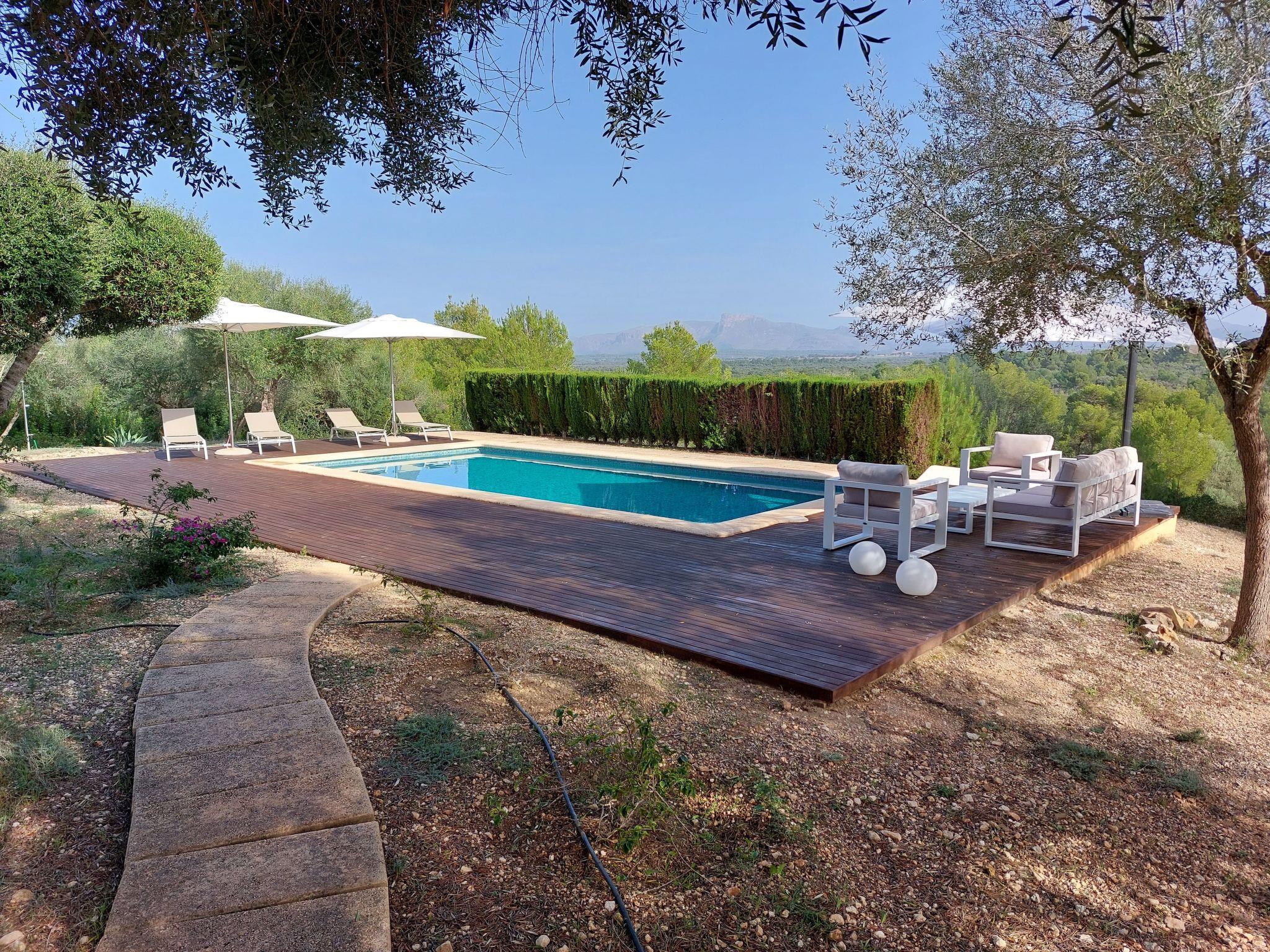 The distribution is: on the main floor is the hall, dining room, kitchen, toilet, living room, pantry and laundry room; on the upper floor, all bedrooms have their own bathroom for all and wardrobes with bedding and towells. Outside has 210,000 square meters and more land with private access to free field for walking, enogh to get lost. The finca also has two garages for 2 cars, swimming pool (9,5*4,5 m), solarium with 2 (3/3 meters) sunshades and 7 sun loungers, shower, 2 terraces with chairs, porch with table and chairs, barbecue and garden.