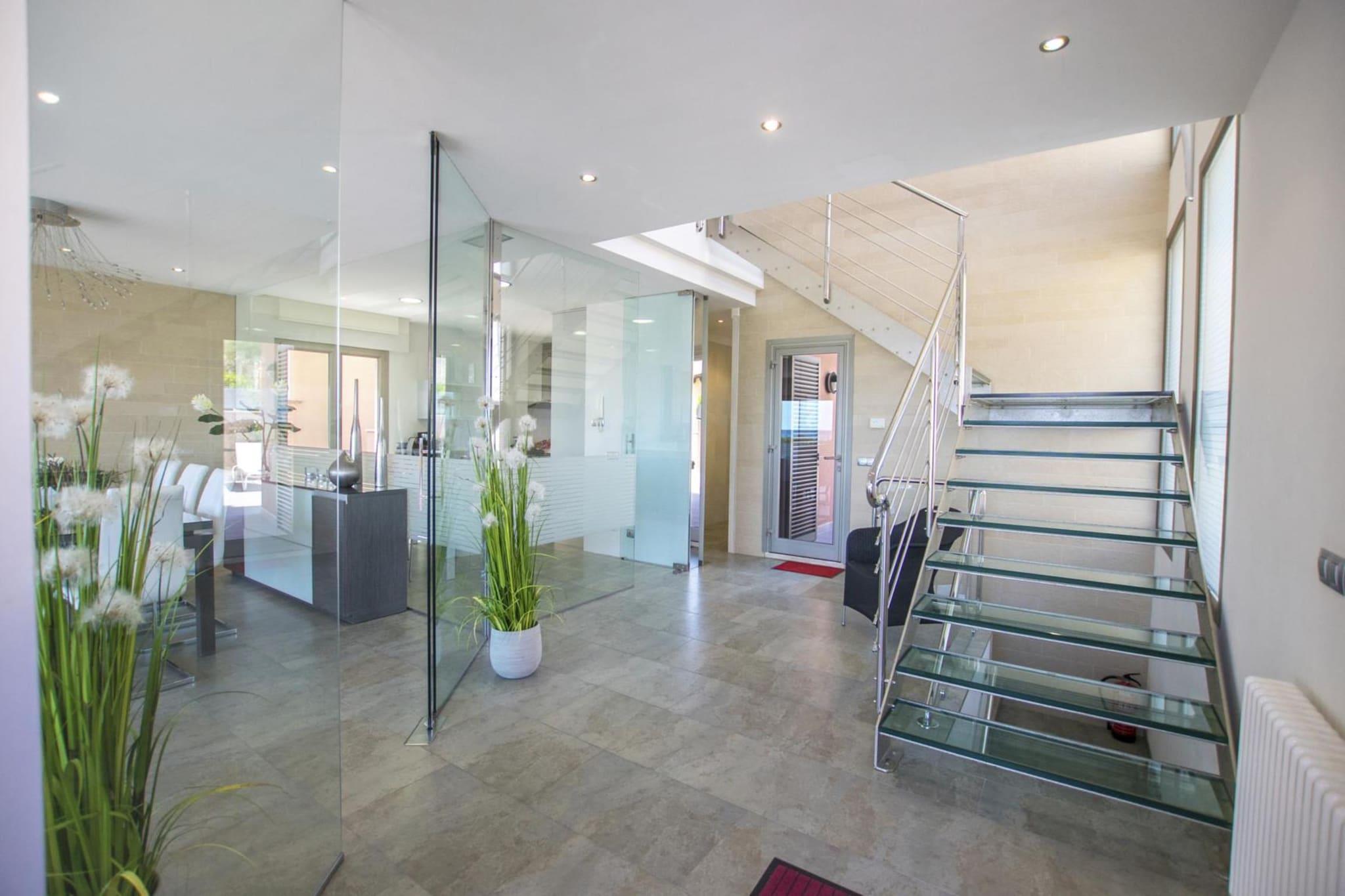 Seaside Villa Escape Nyd en fantastisk havudsigt fra denne etagevilla i Son Serra de Marina. Ejendommen har en indendørs 11x4m pool, rummelige terrasser og en balkon med siddepladser til at beundre havet. Liggestole og en grill gør udendørslivet ubesværet, mens parkering på stedet tilføjer bekvemmelighed. Villaen er designet til grupper og tilbyder 4 soveværelser, hver med eget badeværelse, og hyggelige opholdsrum med brændeovne og aircondition overalt. Rummelig moderne bolig Indvendigt balancerer villaen komfort og moderne stil. Stueetagen har et veludstyret køkken med spiseplads til fælles måltider, en opholdsstue med brændeovn og et brusebadeværelse. Soveværelserne er fordelt på første og anden sal, herunder et køjeværelse ideel til børn og store dobbeltværelser. Vaskefaciliteter, aircondition og gennemtænkte møbler gør villaen klar til at slappe af eller underholde. Lokale attraktioner og spisning Træd udenfor til stranden, kun få meter væk, eller udforsk nærliggende aktiviteter, herunder tennis, ridning, golf og vandsport. Landsbyen byder på hyggelige restauranter, caféer og supermarkeder i gåafstand. Med Palma Lufthavn kun 40 km væk, og udflugter lige fra stille strandture til eventyrlige gruppeudflugter, giver denne villa en naturskøn og komfortabel base for et mindeværdigt kystophold. Bemærk: modtagelse af mobilnetværk er begrænset, og kæledyr er ikke tilladt.