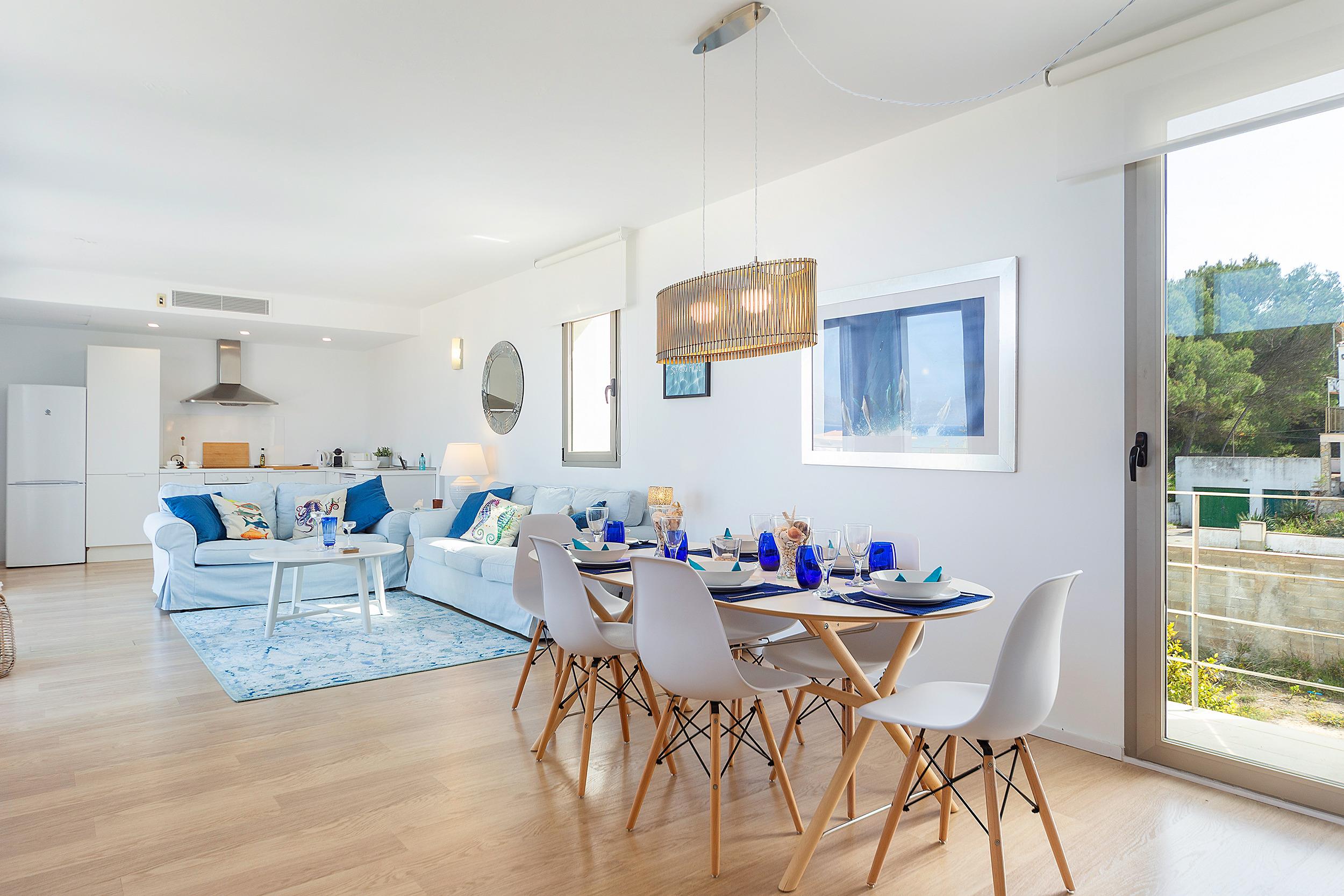 This lovely bright sea view house is located in Son Serra de Marina, with its natural sandy beach and crystal clear water, and it is only a short drive to Can Picafort and Muro’s beaches.