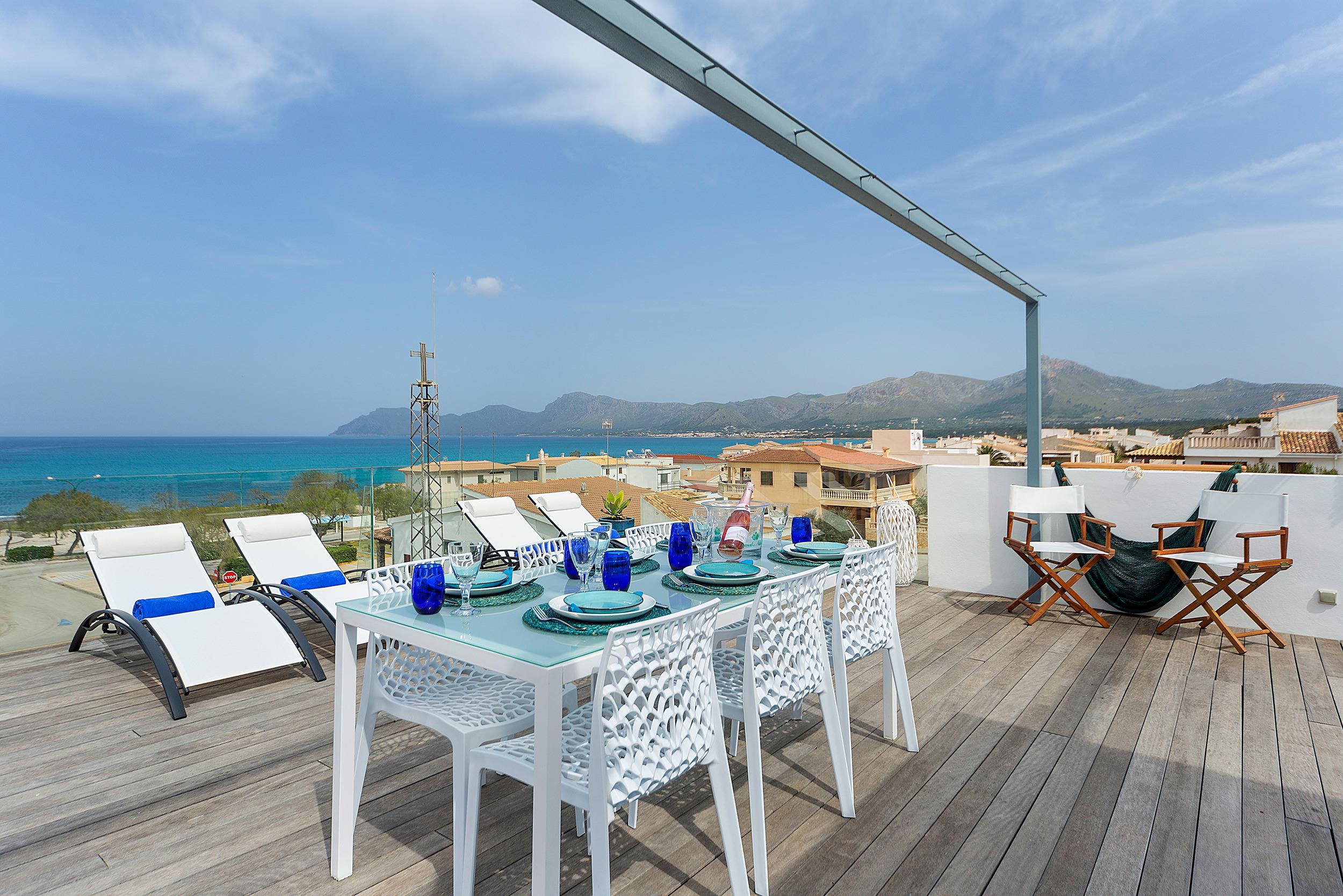 Perfect family house for up to 6 people with amazing panoramic sea and mountain views of the bay of Alcudia, from the lounge and sun terrace