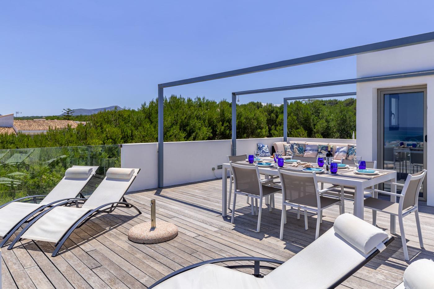 This lovely bright sea view house is located in Son Serra de Marina, which has a lovely natural sandy beach with crystal clear water. It's also only a short drive away from Muro beach and the town of Can Picafort.