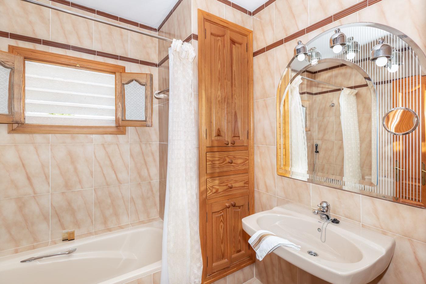 There are three bedrooms, two with double bed and one with two large single beds. There are two full bathrooms with bath and shower.