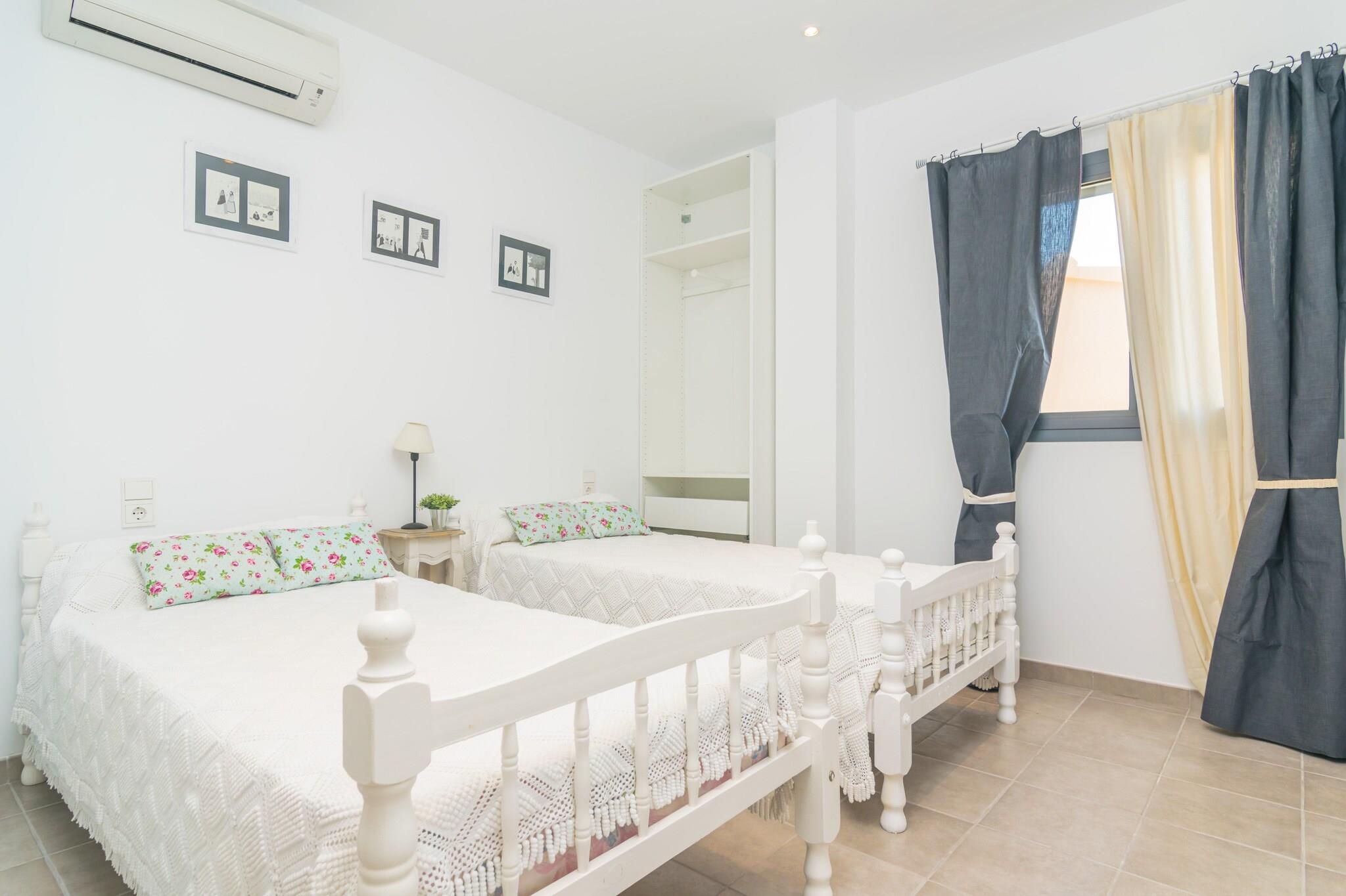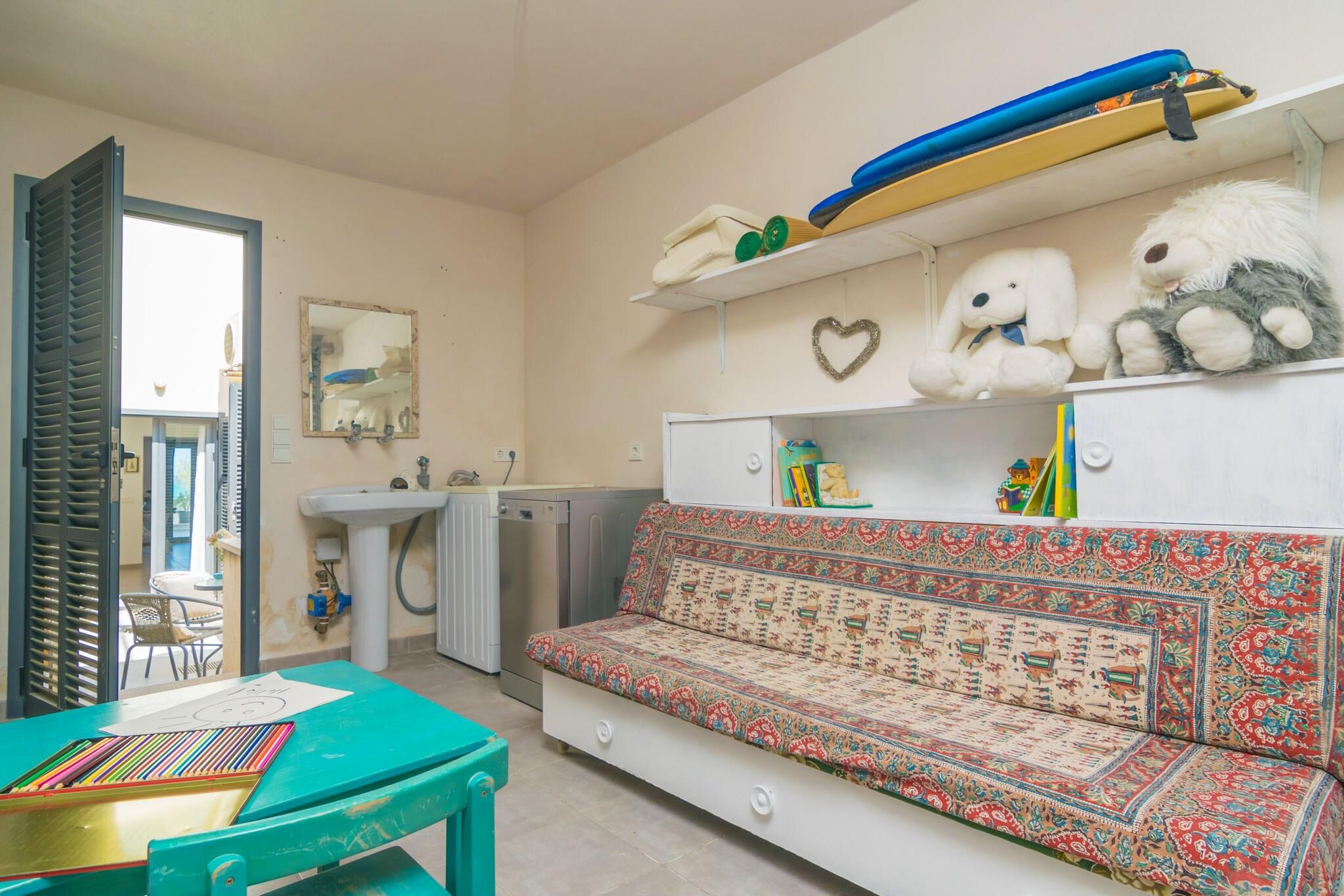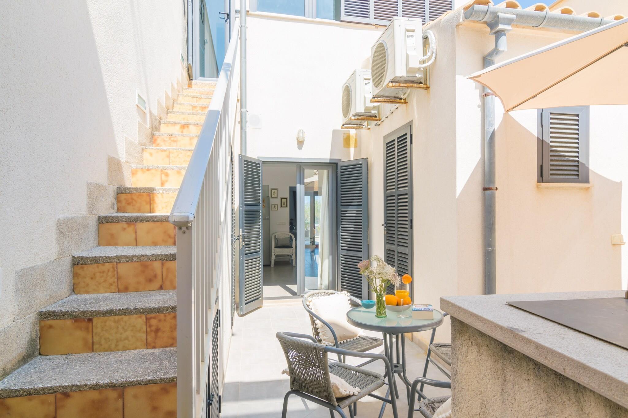 Seaside Living Made Easy Vågn op til den blide havbrise og start din dag med morgenmad med udsigt over vandet. Inden for blot 200 meter kan du dykke ned i det funklende Middelhav og derefter skylle af i den udendørs bruser, før du slapper af på den møblerede terrasse. Hjemmet har også en hyggelig indendørs terrasse - perfekt til at nippe til vin eller nyde middagen efter en dag i solen. Med begge rum kan du balancere afslapning mellem udendørs og komfortable private omgivelser. Komfort på tværs af to etager Rækkehuset er indrettet til både sammenkomster og stille tilbagetog. På hovedniveauet byder den rummelige stue på havudsigt, et brændeovn til køligere nætter og satellit-tv. Det fuldt udstyrede køkken med gaskomfur, ovn og spiseplads gør madlavning enkel og social. Ovenpå inviterer en anden lounge dig til at læse eller slappe af med et andet tv, mens to soveværelser med aircondition - det ene med en dobbeltseng, det andet med to singler - sørger for afslappende nætter. Kyst charme og spisning Byhuset ligger i Son Serra de Marina og tilbyder et roligere tempo med krystalklart vand og en nærliggende sandstrand. Til spisning finder du en restaurant ved havet kun en kort gåtur væk, mens livlige Can Picafort og Puerto de Alcúdia - begge få minutter i bil - tilbyder et bredt udvalg af restauranter, tapasbarer og aftensteder. Golfspillere vil nyde den berømte Alcanada Golfbane, og offentlige transportforbindelser gør dagsture på tværs af øen enkle.