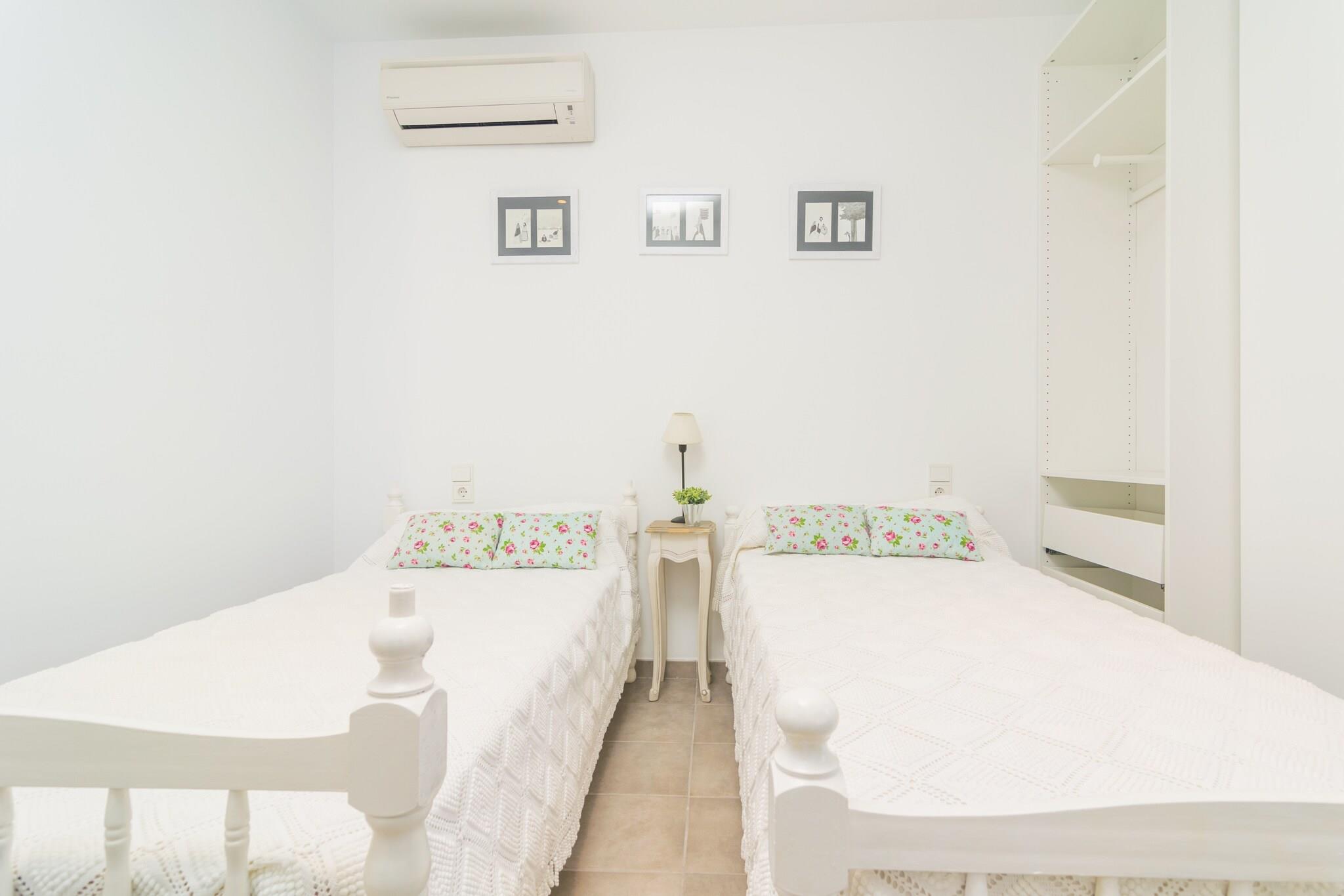 Stue, Køkken(komfur, mikrobølgeovn), soveværelse(2x enkeltseng), soveværelse(dobbeltseng), badeværelse, badeværelse, kaffemaskine, ovn, opvaskemaskine , køle-fryseskab, bruser, håndvask, håndvask, toilet, toilet, klimaanlæg, klimaanlæg, barneseng, barnestol
