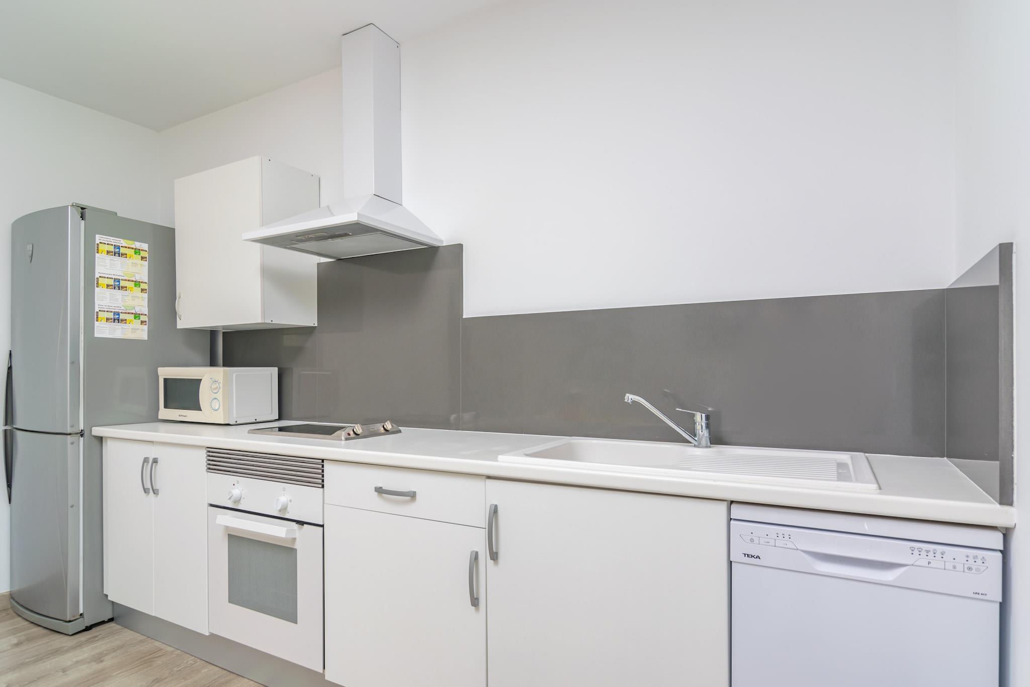 Stue, Køkken(komfur, kaffemaskine, ovn), soveværelse(dobbeltseng), soveværelse(dobbeltseng), soveværelse(køjeseng), badeværelse, badeværelse, mikrobølgeovn, opvaskemaskine , køle-fryseskab, bruser, bruser, håndvask, håndvask, toilet, barneseng, barnestol