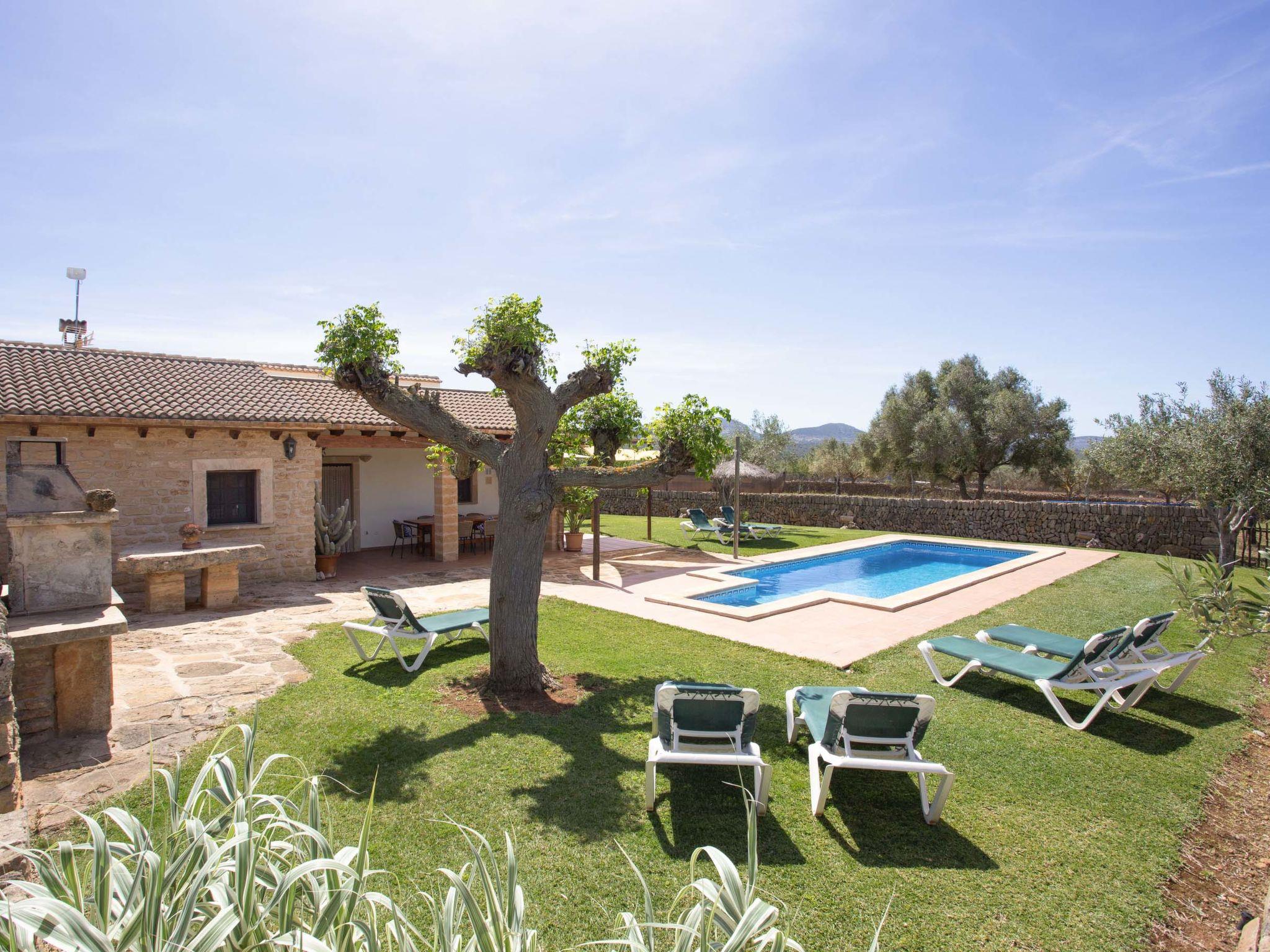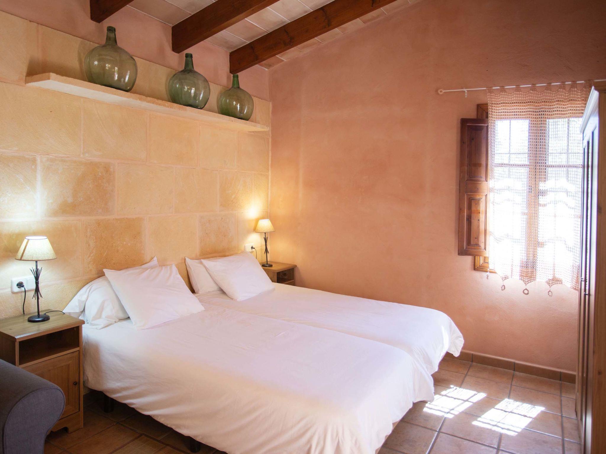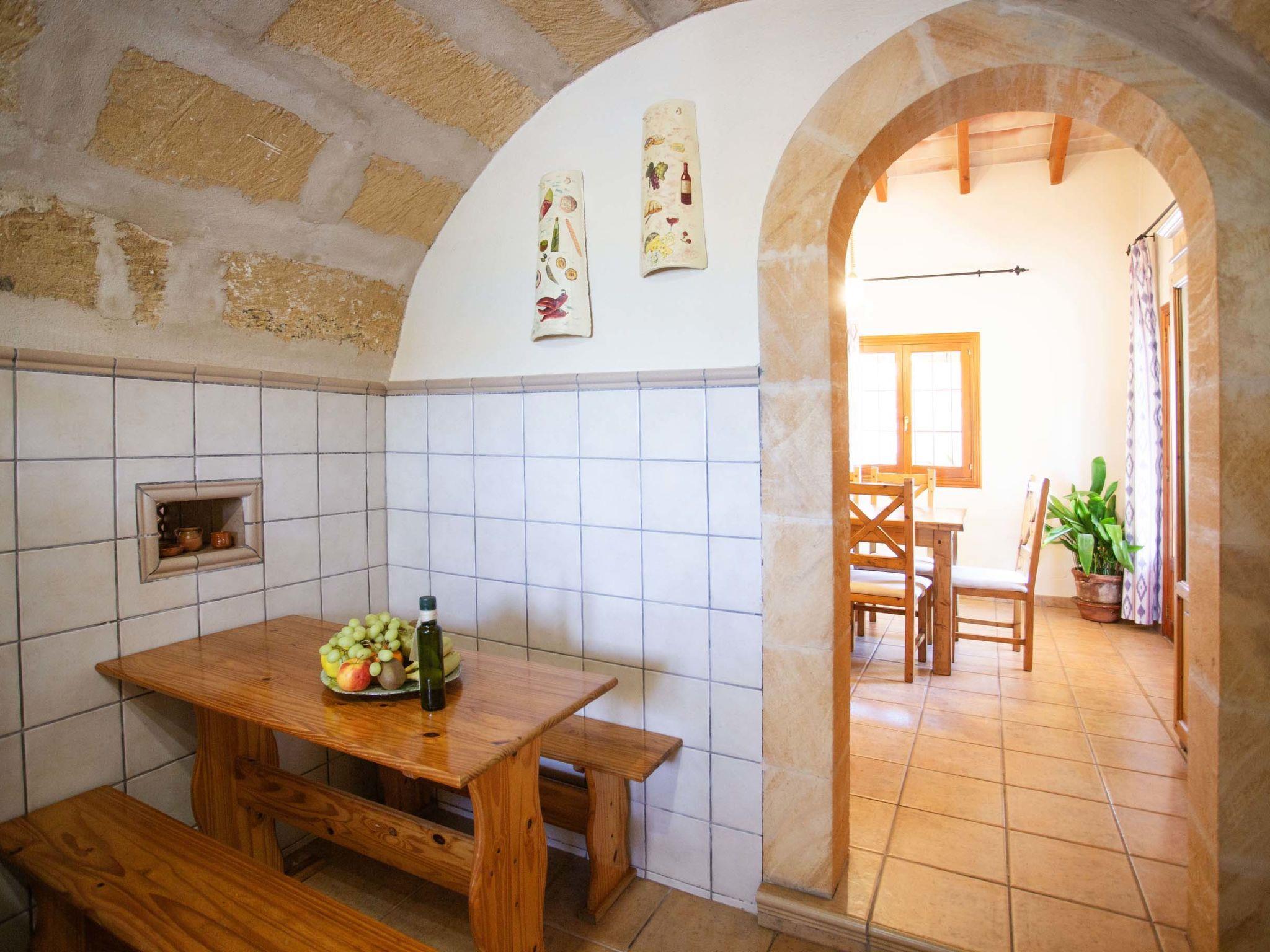 "Ca na Ines", 5-room house 185 m2. Object suitable for 8 adults. Spacious, practical and comfortable furnishings: living/dining room. 1 double bedroom with 2 beds (90 cm, length 190 cm), air conditioning and forced-air heating. 25 m2, Studio with 2 beds (90 cm, length 190 cm), shower/WC, air conditioning and forced-air heating. 1 double bedroom with 1 french bed (1 x 135 cm, length 190 cm), air conditioning and forced-air heating. 1 double bedroom with 1 french bed (1 x 150 cm, length 190 cm), air conditioning and forced-air heating. Large kitchen (4 hot plates, oven, dishwasher, toaster, kettle, microwave, electric coffee machine). Bath/WC, shower/WC. Air-conditioning, forced-air heating. Heating not available in all rooms. Natural stone floors. Garden. Terrace furniture, barbecue, deck chairs (8), covered balcony. Very beautiful view of the countryside. Facilities: washing machine, iron, children's high chair, baby cot for up to 2 year olds, hair dryer. Internet (WiFi, free). Parking at the house. Suitable for families. ETV/619 // Reg. Nr.: ESFCTU000007011000204438000000000000000000000ETV/6196