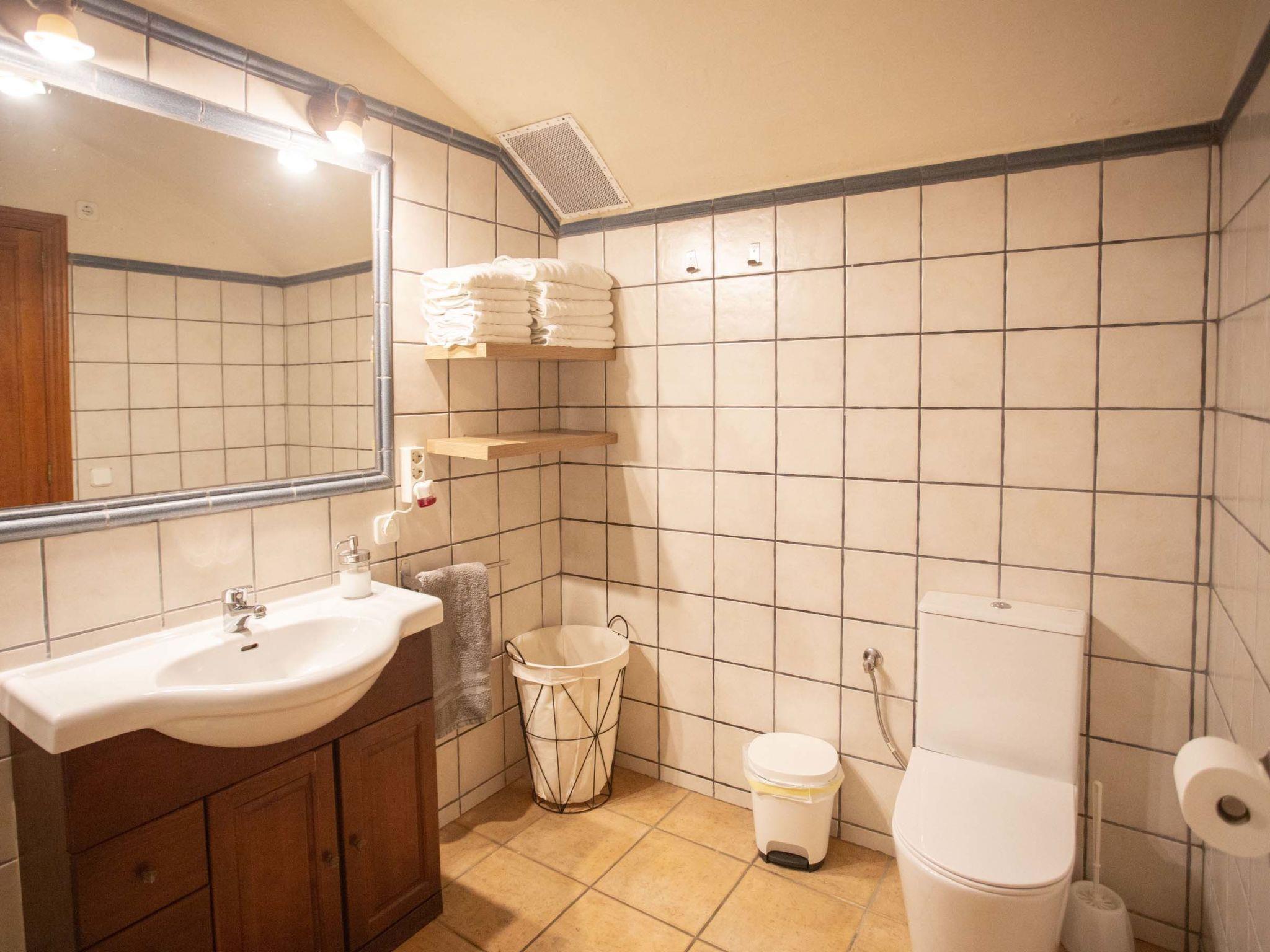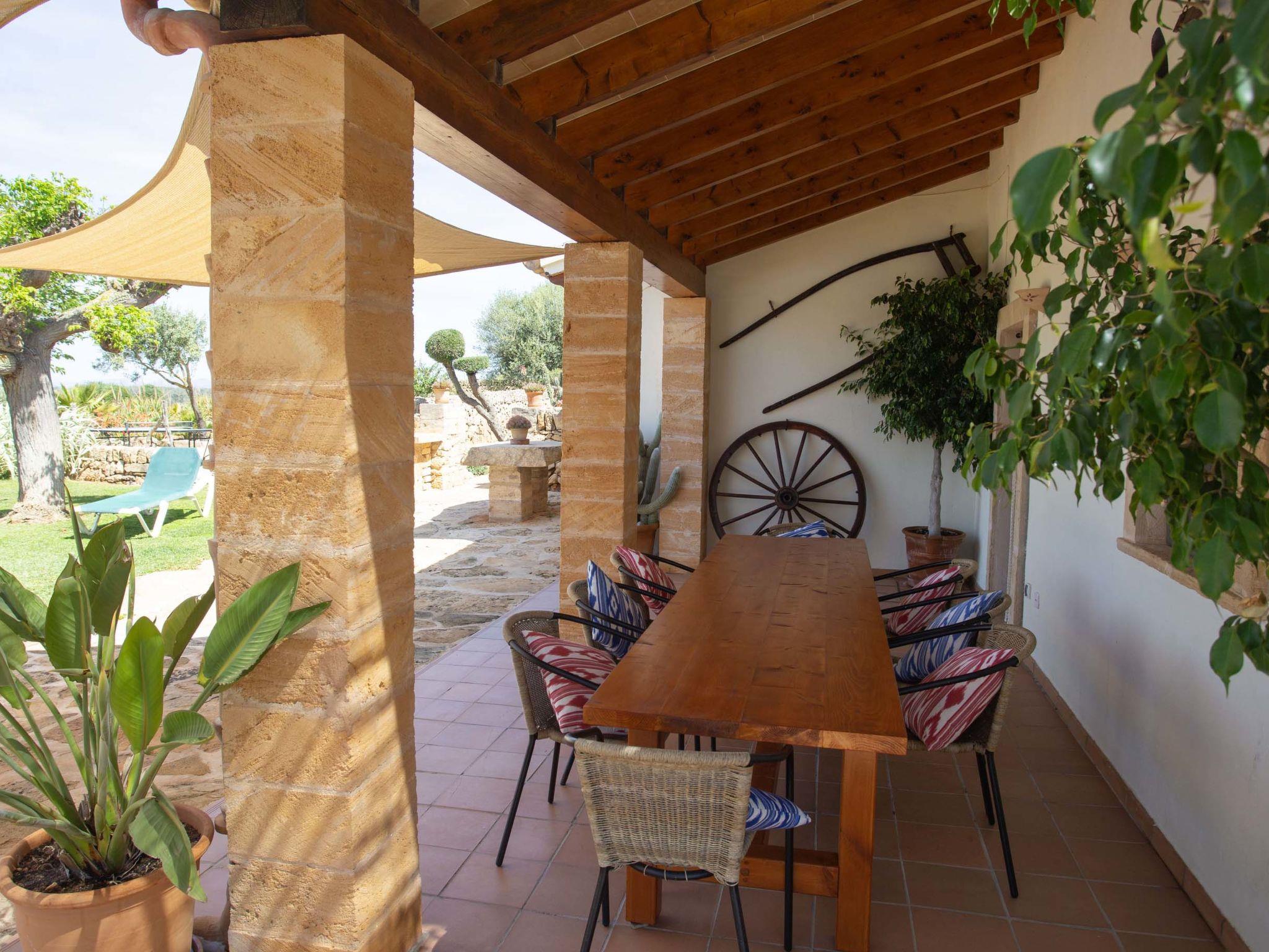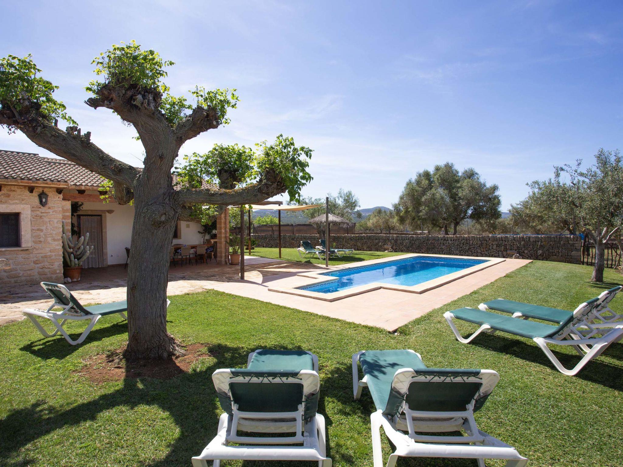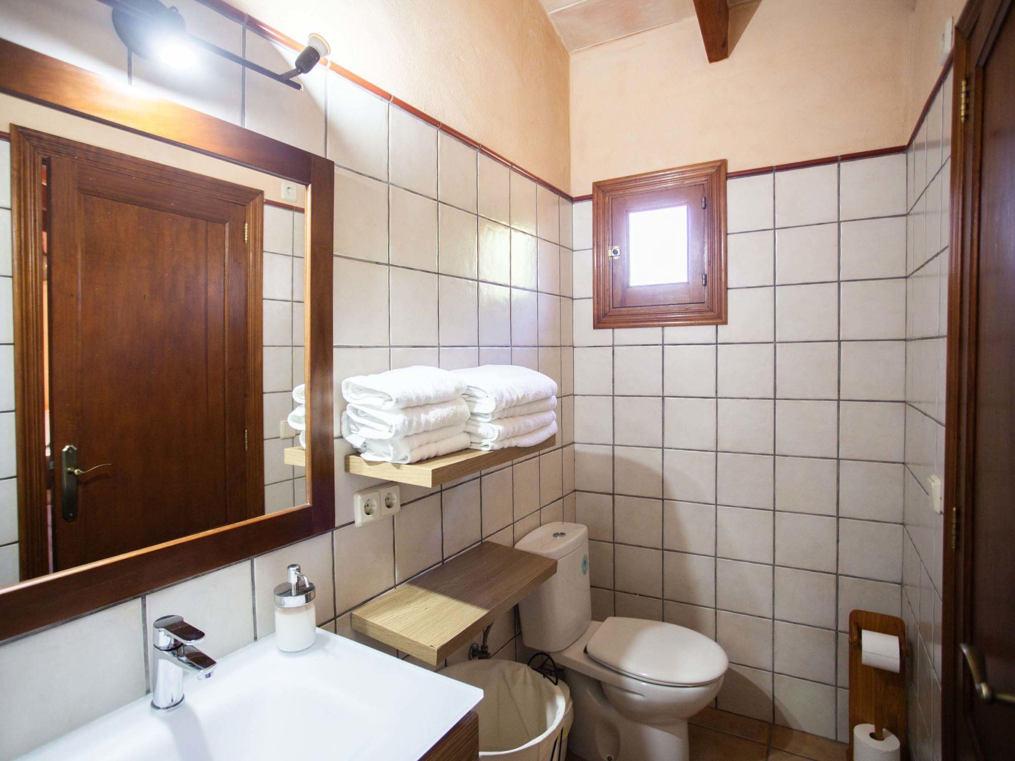 "Ca na Ines", 5-room house 185 m2. Object suitable for 8 adults. Spacious, practical and comfortable furnishings: living/dining room. 1 double bedroom with 2 beds (90 cm, length 190 cm), air conditioning and forced-air heating. 25 m2, Studio with 2 beds (90 cm, length 190 cm), shower/WC, air conditioning and forced-air heating. 1 double bedroom with 1 french bed (1 x 135 cm, length 190 cm), air conditioning and forced-air heating. 1 double bedroom with 1 french bed (1 x 150 cm, length 190 cm), air conditioning and forced-air heating. Large kitchen (4 hot plates, oven, dishwasher, toaster, kettle, microwave, electric coffee machine). Bath/WC, shower/WC. Air-conditioning, forced-air heating. Heating not available in all rooms. Natural stone floors. Garden. Terrace furniture, barbecue, deck chairs (8), covered balcony. Very beautiful view of the countryside. Facilities: washing machine, iron, children's high chair, baby cot for up to 2 year olds, hair dryer. Internet (WiFi, free). Parking at the house. Suitable for families. ETV/619 // Reg. Nr.: ESFCTU000007011000204438000000000000000000000ETV/6196