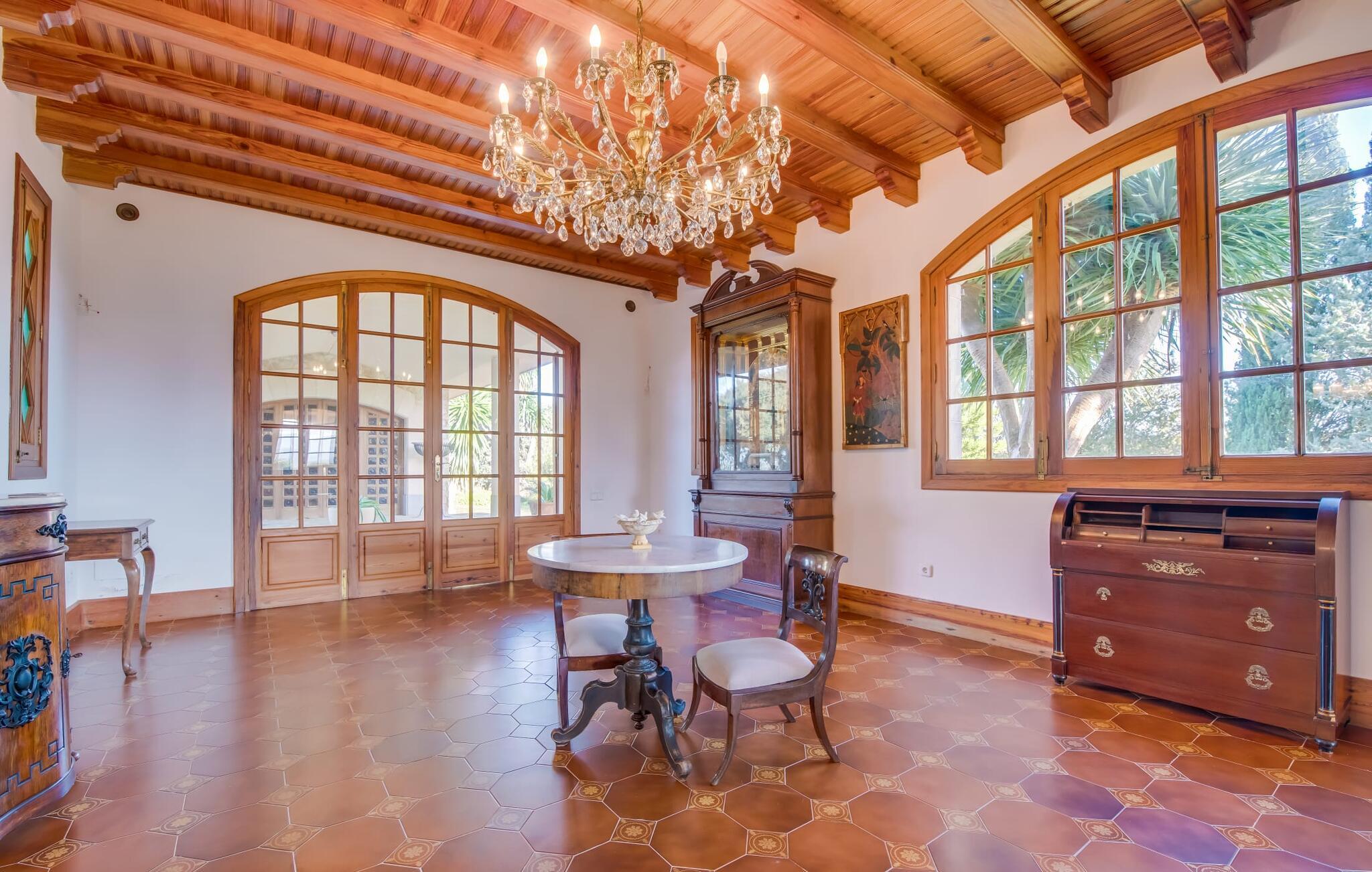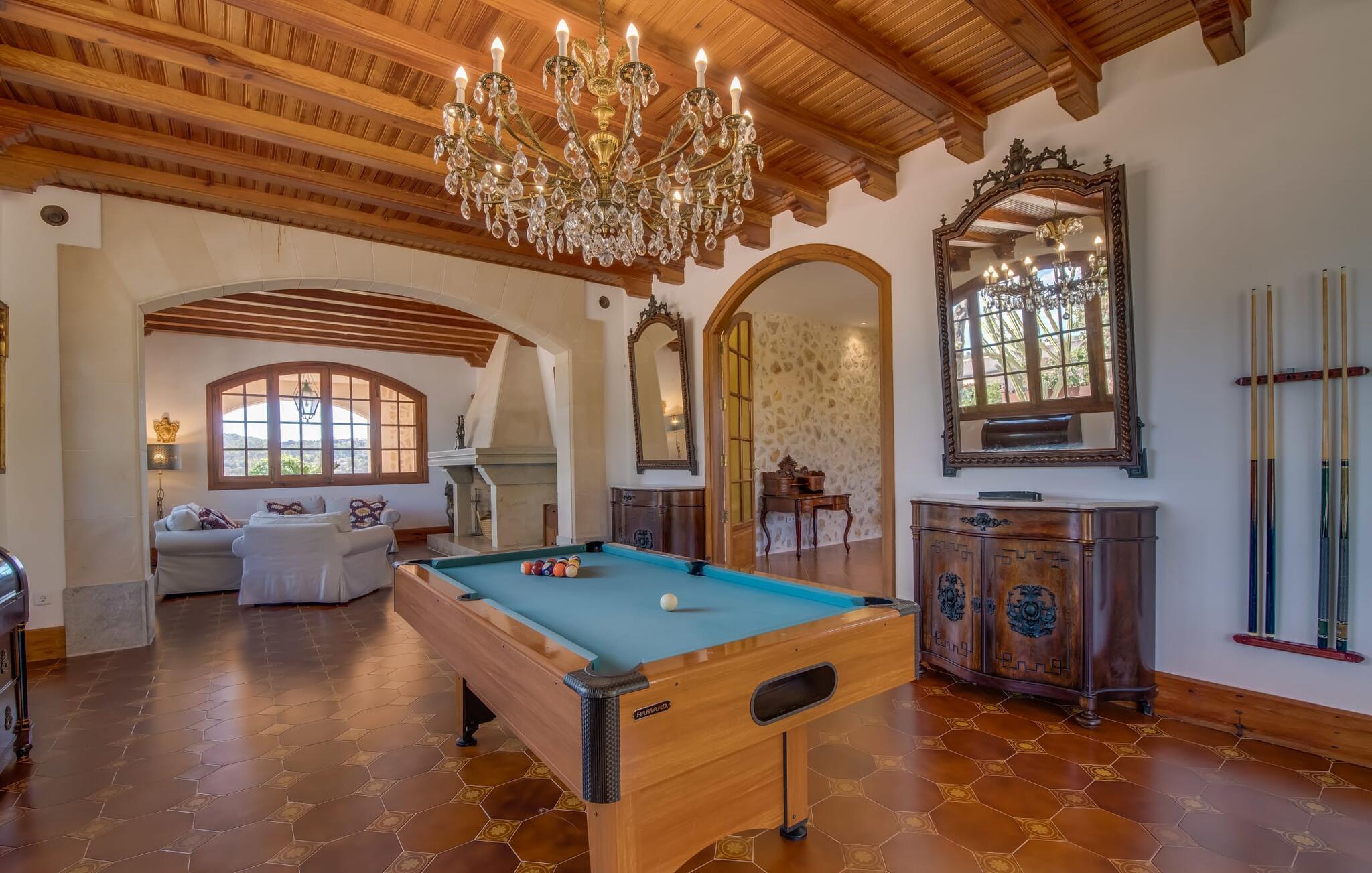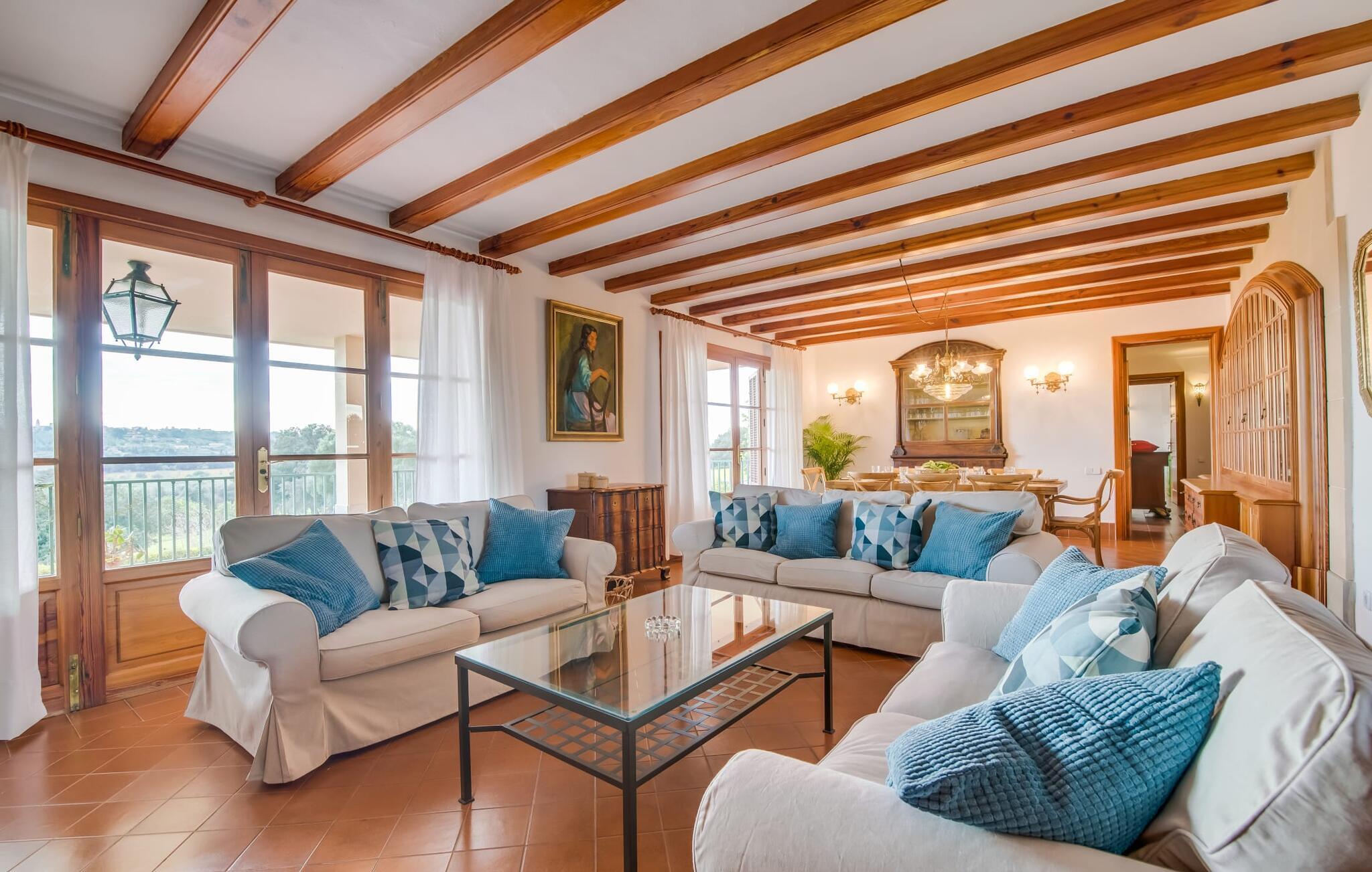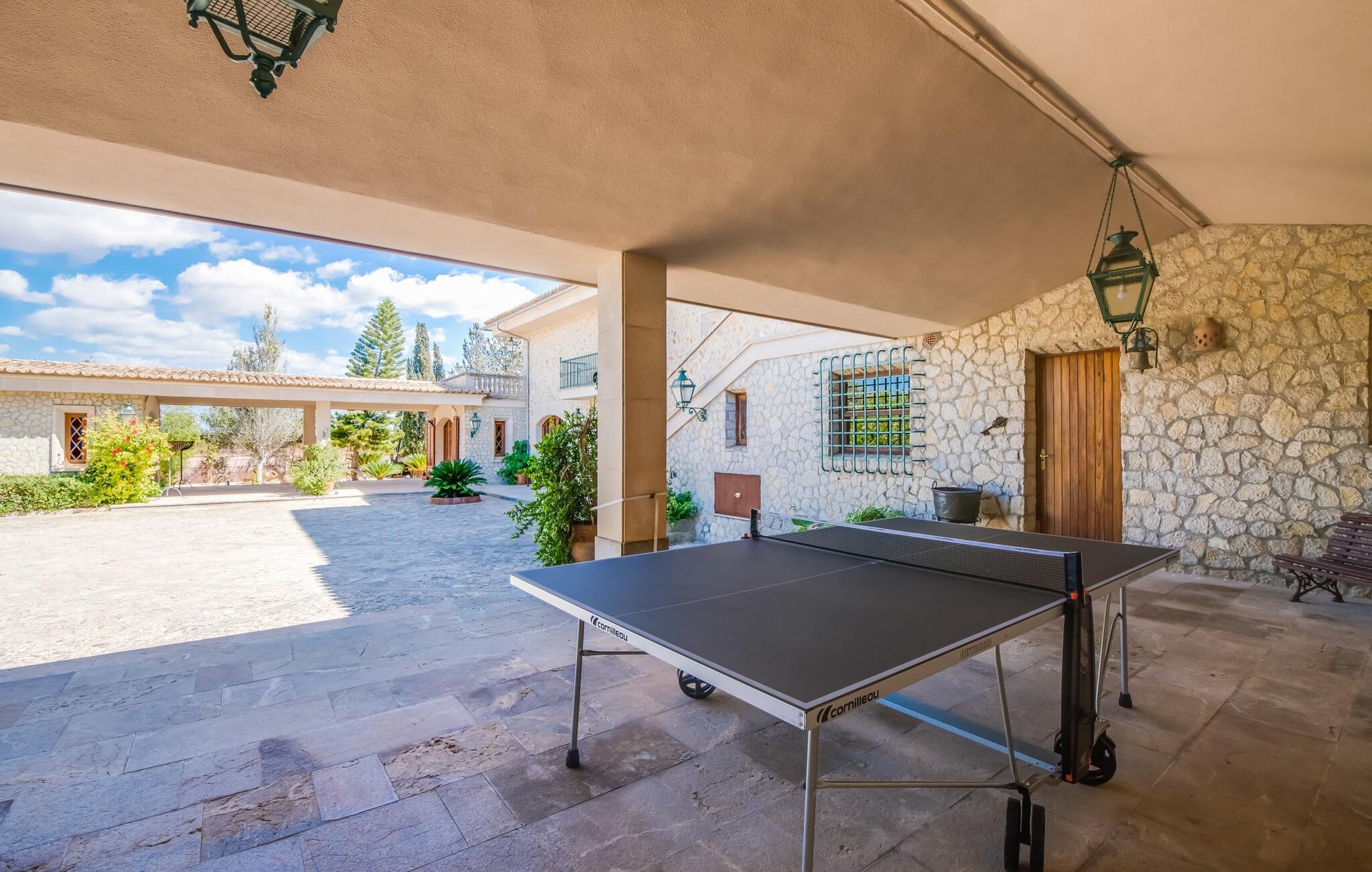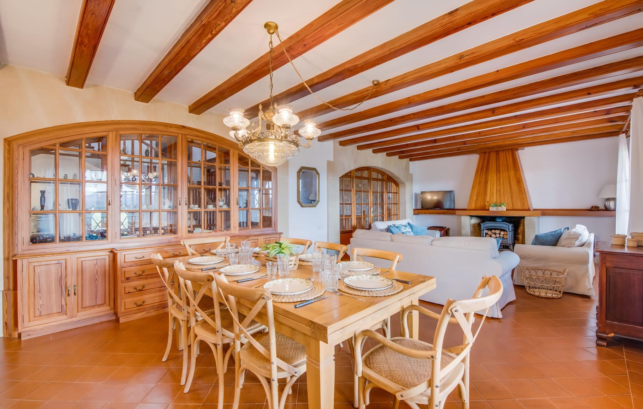 “Son Tomasset”, en imponerende landbovilla i flere etager med Tramuntana-bjergene i baggrunden, bor I i en velbeskyttet ejendom på 36 hektar jord med store græsplæner, appelsintræer, en pool og et udendørs badeværelse. jeres sommerhus har også adskillige terrasser, der tilbyder en fantastisk udsigt på alle niveauer. Den rustikke ejendom ligger 1,5 km fra landsbyen Costitx og har rigelig parkering til flere køretøjer. Den spektakulært udstyrede terrasse fører til en smuk have med pool omgivet af komfortable liggestole - her kan I nyde øjeblikke af ren afslapning! I den anden ende af terrassen finder I en veranda med bordtennisbord og udsigt over landskabet og Serra de Tramuntana-bjerget. I stueetagen i den flotte, originale og stilfuldt indrettede ejendom er der stor entre og stor lys stue, der udstråler indbydende hygge. Spillelokalet ligger lige ved siden af. Der er masser af sjov og leg med fodboldbord og poolbord, så børn og unge vil føle sig hjemme i denne ferievilla. Det fuldt udstyrede, farverige køkken med en stor spisestue og et fantastisk opholdsområde ved den åbne pejs byder på plads nok til alle gæster, og der er kun få meter fra spisebordet til terrassen. På dette niveau er der også et badeværelse og to dobbeltværelser med eget badeværelse. På anden sal er der endnu en stue med et 40 tommer tv. Herfra kan I nå yderligere fire soveværelser med dobbeltsenge og to badeværelser. Fra denne etage kan I også få adgang til den øverste terrasse med en vidunderlig udsigt over landsbyen. Et andet, meget rummeligt køkken fuldender komforten i dette hus. På grund af den helt landlige enklave, omgivet af endeløse og dyrebare naturlige græsgange, der er typiske for det indre Mallorca, er Villa "Son Tomasset" den perfekte destination for dem, der ønsker at opleve landets mangfoldighed og lære mere at kende end blot strandene og de mest besøgte områder på Mallorca. På grund af sin beliggenhed i hjertet af øen er der gode forbindelser til hovedvejene, og kystregionen kan nås på kun 30 minutter i bil. Gå ikke glip af de nærliggende ugentlige markeder - lørdage i Costix og onsdage i Sineu! Alle der har slået deres telte op i midten er åben i alle retninger... De nærmeste supermarkeder er i Sencelles, Sineu og Inca og kan nås i bil på kun 5-10 minutter. I Sencelles finder I gode restauranter som “Sa Cuina de n'Aina”, “Can Pep”, i Sineu “El Molico” anbefales bl.a. I nærheden af fincaen ligger den idylliske landsby Jornets, hvor I kan tage på en dejlig tur til fods eller på cykel. "Son Tomasset" ligger tæt på forskellige cykelstier for afslappede og sporty cyklister. Den imponerende villa "Son Tomasset" er beliggende i hjertet af øen, mellem kommunerne Sineu og Sencelles. Helt renoveret i 2018, villaen er perfekt placeret til at udforske hele øen. Byens centrum og to supermarkeder (i Costix) er kun få minutter væk, og inden for 5 km finder I et bredere udvalg af butikker og restauranter i middelalderbyen Sineu og læder- og vinbyen Inca. Beliggende i helt landlige omgivelser og væk fra andre ejendomme og veje, er dette landlige hus på Mallorca det bedste valg for dem, der leder efter en idyllisk beliggenhed.