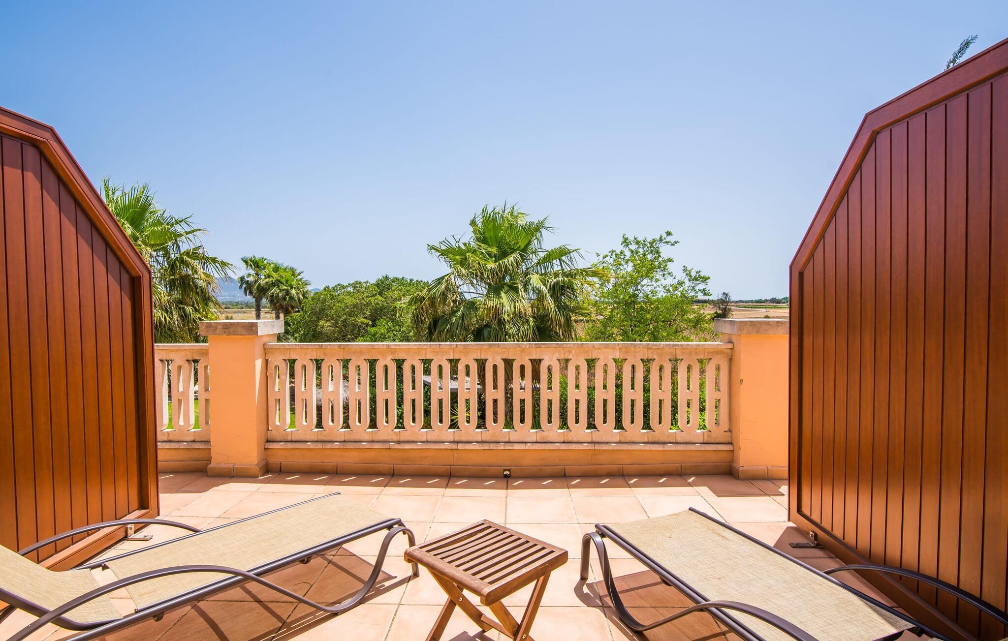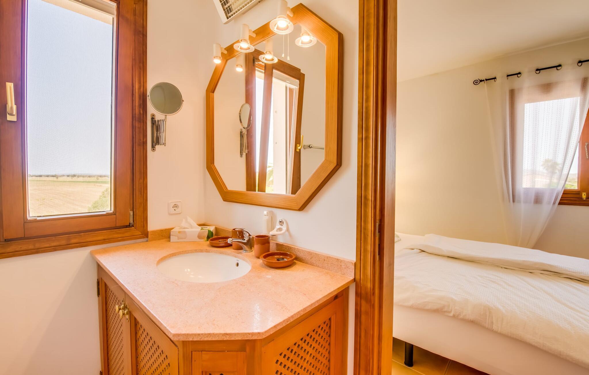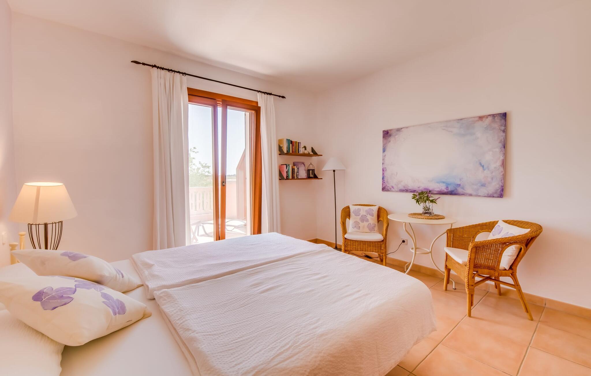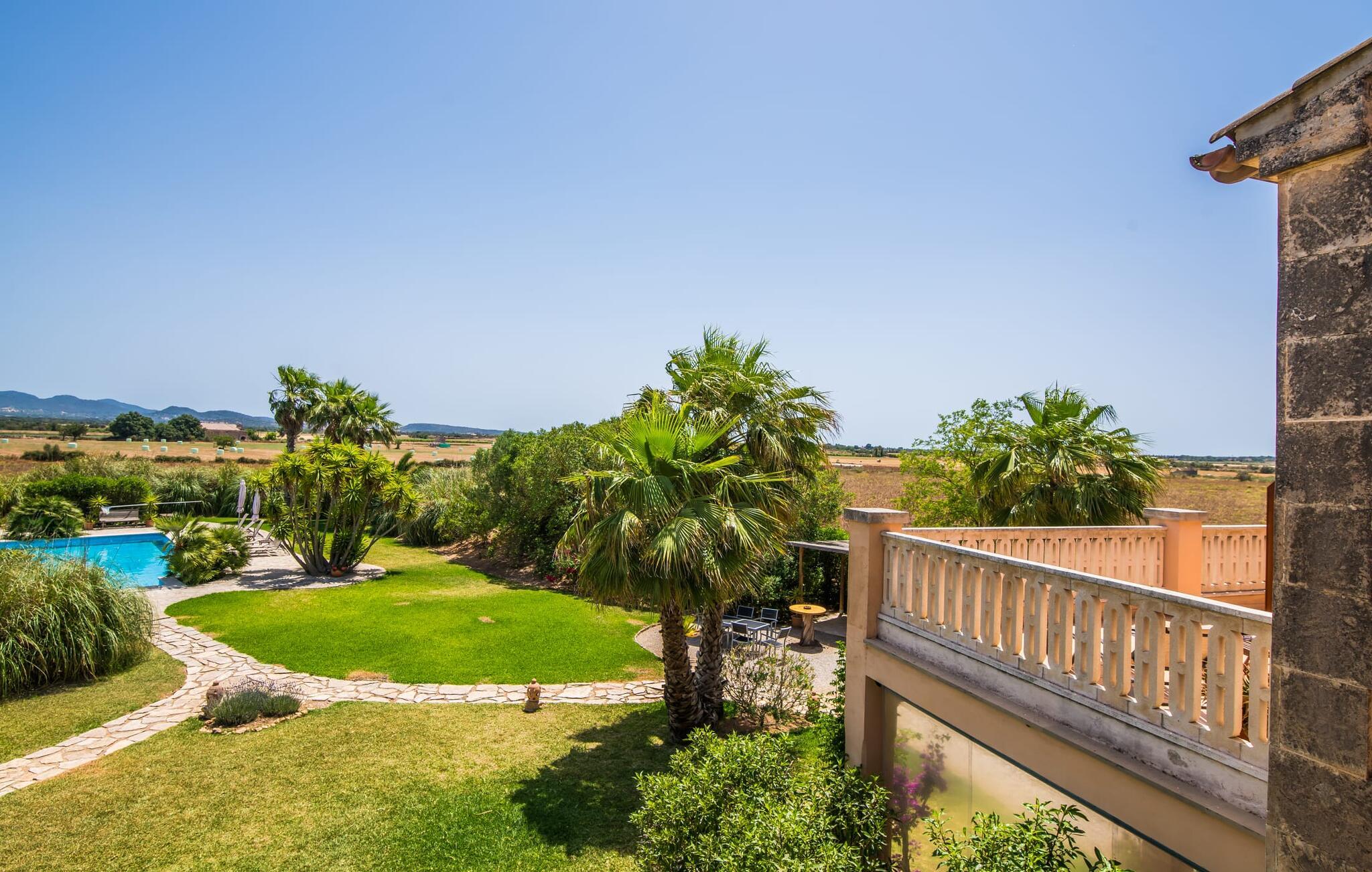 Masser af plads til alle jeres kære, en betagende beliggenhed og imponerende faciliteter - det er, hvad den rummelige og smukke villa "Son Vaquer" byder på. Og det er ikke alt. Alene haven er en lille drøm. Velholdte græsplæner og smukt arrangerede palmer og blade omkranser den glitrende blå pool, der med sin længde på 12 m er ideel til at svømme et par længder. I kan slikke solen i en til to timer på den stenbelagte terrasse, ideelt set på en af ??de komfortable liggestole, med solbriller på næsen og en god bog i hånden. Hvad kunne være bedre? Når I er helt afslappet, kan I tage en afslappet spadseretur til et af de luftige spiseområder, og hvis I er heldig, vil nogen allerede have tændt gasgrillen og tilberedt et lækkert måltid. Bagefter kan I feste i en hyggelig atmosfære ved det smukke spisebord og samtidig nyde den fantastiske udsigt over naturen. Hvis der er et problem på stedet, kan den venlige ejendomsadministrator tage sig af det med det samme, fordi hun bor i et lukket område af fincaen og udhuset. Villaens indre er lige så smuk som ydersiden. Designet er domineret af en vidunderlig frisk farvesammensætning, der går igennem alle rum og giver indretningen klare linjer. Varmt træ er kombineret med blå og hvide toner, en middelhavsstemning og enkel skandinavisk chic. Tror du, at disse stilarter ikke kan kombineres? Tænk igen! De skaber en skøn blanding og udstråler også den ultimative behagelig atmosfære. I det store køkken finder I alt hvad I behøver for at tilberede nogle velsmagende lækkerier. Og i det åbne opholds- og spiseområde finder I alt hvad I behøver for at slappe af, herunder en stor sofa, hvor I kan fordybe jer i en god bog, eller et fladskærms-tv til en hyggelig filmaften. Efter en lang dag med ferieaktiviteter, kan I komme til at falde langsomt i søvn i aftentimerne. Intet problem! For en afslappende søvn er der seks komfortable soveværelser, som er lige så smukke som resten af ??villaen. Bare vælg en, og I kan sove behageligt og drømme til næste morgen. Udhvilet? Gå derefter til det private badeværelse. Det bedste ved det: I kan bruge lige så meget tid, som I har brug for, fordi der er i alt seks badeværelser til jeres rådighed. Så I virkelig kan nyde jeres morgenbruser. Men det er ikke kun selve villaen, der har meget at byde på. Området er også oplagt til spændende ferieture. Uanset om I vil slentre gennem den livlige by Felanitx (som også har et fantastisk ugentligt marked) eller tage en tur til den lidt større by Manacor – begge dele er bestemt et besøg værd! I et par stille timer kan I slentre gennem det omkringliggende landskab; Hvem ved, hvad I vil opdage der? Og selvfølgelig: havet! Kysten ligger kun 14 km væk i luftlinje. Her kan I vælge, hvilken af ??de fortryllende strande, I gerne vil bruge dagen på. Om Cala Antena, Cala Murada eller Cala Tropicana - de er alle smukke! Den betagende og rummelige villa "Son Vaquer" har en fantastisk beliggenhed på det sydlige Mallorca. Omgivet af marker og enge kan I nyde godt af en fantastisk udsigt over naturen. I kan gøre jeres indkøb og andre daglige ærinder i den livlige by Felanitx, kun 6,8 km væk. Og havet med sine smukke sandstrande ligger kun 14 km væk i luftlinje.