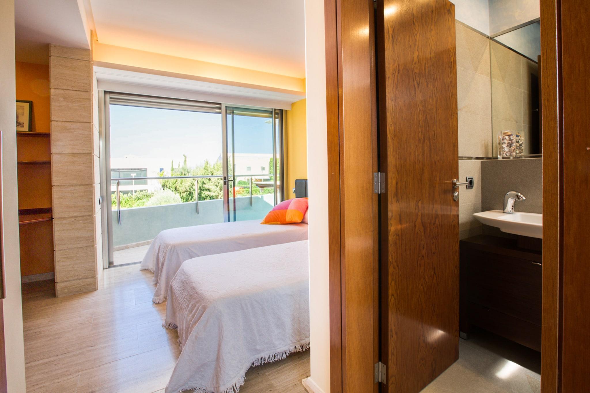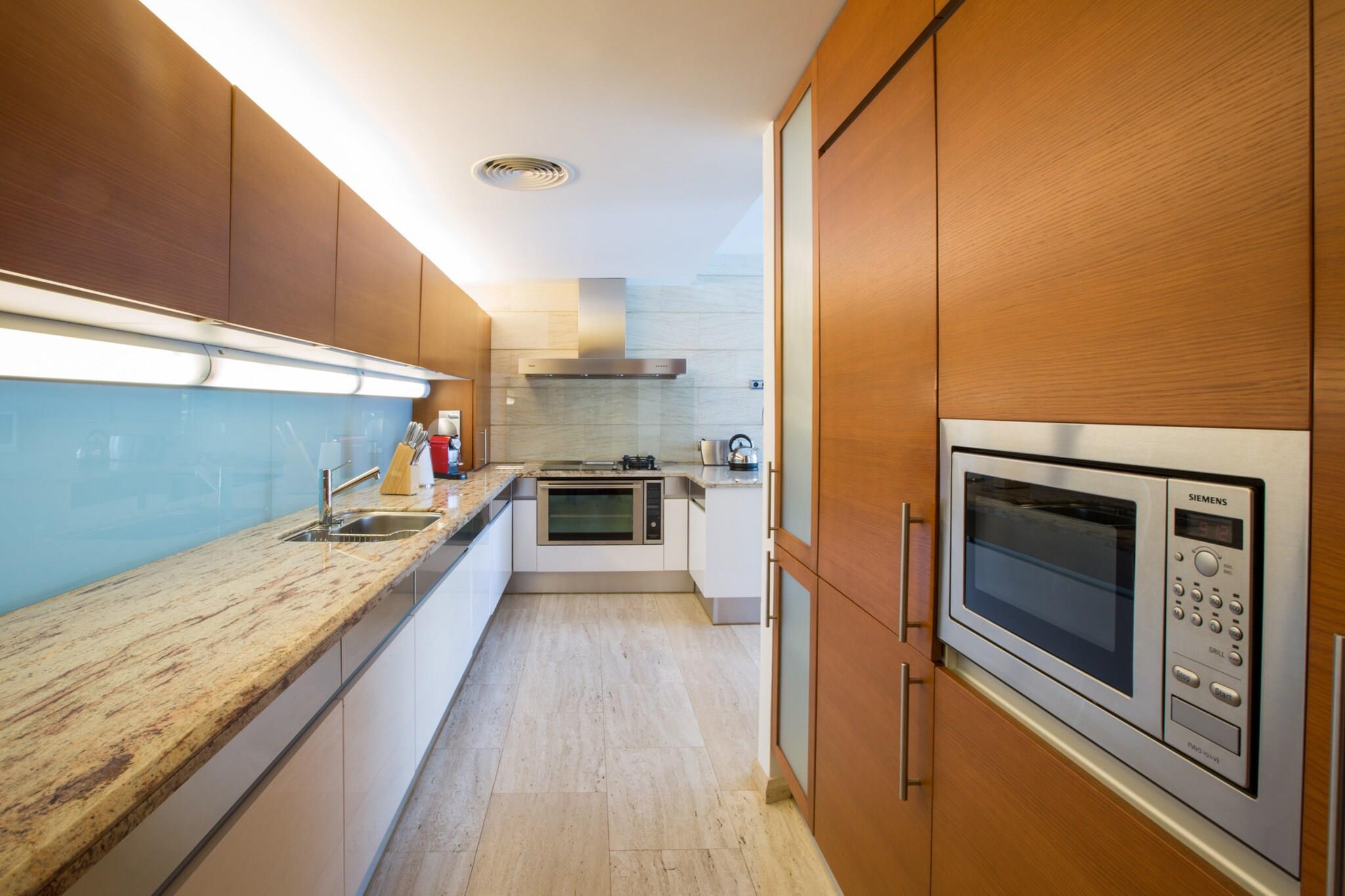 Deze woning heeft 1 zoutzwembad van 12,5 x 3,5 m met een diepte variërend van 0,70 m tot 1,85 m. Rondom het zwembad is er 1 douche, 1 mobiele barbecue, zodat u uw beste gerechten kunt bereiden terwijl u buiten geniet van het gezelschap, en 8 ligstoelen zodat u kunt ontspannen en even kunt ontsnappen aan de drukte van uw dagelijkse routine. In totaal beschikt dit prachtige huis over 1 verhard oppervlak van 40 m2 en nog een grasveld van 90 m2. De veranda van 72 m2 van het pand is een luxe omdat deze zich uitstrekt over de gehele gevel van de begane grond, uitkijkt op het zwembad en directe toegang heeft tot de woonkamer, aparte eetkamer, keuken en hoofdslaapkamer. Deze veranda is opgedeeld in 3 verschillende ruimtes, waarvan 1 waar u kunt genieten van snacks en voorzien bent van comfortabel meubilair, een andere waar u met uw dierbaren kunt lunchen en dineren en een derde waar u heerlijk in de koelte kunt zitten. Tegelijkertijd heeft het 2 terrassen, waarvan 1 van 15 m2, gelegen op de eerste verdieping en toegankelijk via 2 van de kamers, en de andere van 50 m2, gelegen op de top van het gebouw en vanwaar u kunt genieten van het prachtige uitzicht op de zee en de stad. Het interieur van het chalet is net zo spectaculair als de buitenkant. Zodra u het pand betreedt, vindt u aan uw rechterhand de trap die naar P1 en P-1 leidt. Vlak voor de toegangsdeur bevindt zich de woonkamer met grote ramen waardoor u kunt genieten van het uitzicht op de tuin en het zwembad. In deze kamer kunt u ontspannen door satelliettelevisie te kijken (u kunt alleen genieten van satelliettelevisie in de woonkamer), een dvd-film of lekker lezen. Links van de woonkamer bevindt zich de onafhankelijke en gemeubileerde eetkamer, die ook uitzicht naar buiten biedt en de ideale plek is om lunches en diners te delen met familie en vrienden. Links van de eetkamer vindt u de prachtige woonkeuken met televisie. Het biedt ook directe toegang tot de veranda en heeft alles wat u nodig heeft om uw beste gerechten te bereiden, waaronder zowel een gasfornuis als een keramische kookplaat. De wasruimte is onafhankelijk en beschikt over 1 wasmachine, 1 droger en 1 strijkplank. Als je naar P1 gaat, zul je zien dat er een fantastische en zeer complete bibliotheek is waar je alle boeken kunt lezen die tot je beschikking staan. In deze woning zijn er in totaal 5 slaapkamers, waarvan 1 op de -1 verdieping met 1 tweepersoonsbed, 1 op de begane grond met 1 tweepersoonsbed en de overige 3 op de 1e verdieping, 2 met 1 tweepersoonsbed en 1 met 2 eenpersoonsbedden. Alle kamers hebben kasten behalve die op de begane grond, die een kamer biedt met een complete kleedkamer. Je hebt de beschikking over in totaal 6 badkamers, waarvan 2 op verdieping -1 (1 met douche en bad en de andere met douche), 2 op de begane grond (1 met douche en bad en suite en 1 toilet) en de laatste 2 op P1, beide hebben een eigen badkamer en hebben 1 douche. Deze woning biedt uitzonderlijke uitrusting, zoals vloerverwarming, centrale verwarming, geleide airconditioning door het hele huis behalve P-1 en heeft 2 wiegjes voor de kleintjes in het huis als ze nodig zijn. Naast alles heb je in P-1 de beschikking over een kleine fitnessruimte, een speelkamer met 1 tafelvoetbal en buiten staat er 1 basketbalmand en een prachtige pingpongtafel om met het gezin van buitenactiviteiten te genieten. Deze fantastische villa ligt op 50 meter van het rotsachtige kustgebied van Son Verí vanwaar het een fantastisch uitzicht heeft op de baai van Palma. Deze omgeving biedt u veel rust en kalmte. Als u de voorkeur geeft aan een ongerept strand met fijn wit zand, ligt het strand van Es Trenc op ongeveer 40 km afstand; de reis is de moeite waard. Als u op zoek bent naar de drukte van een toeristisch gebied, ligt El Arenal op iets meer dan 3 km afstand. Daar kunt u zowel overdag als 's nachts genieten van alle soorten vrijetijdsbesteding, aangezien het een groot aantal bars, restaurants, livemuziek en nachtclubs biedt. Als u watersporten wilt beoefenen, zijn er activiteiten zoals windsurfen, kitesurfen of jetski's. Tegelijkertijd ligt deze accommodatie op minder dan 20 km van de stad Palma, waar u toegang heeft tot alle soorten winkels om te winkelen, restaurants en culturele bezoeken. Een van de meest aanbevolen bezoeken is de kathedraal van Palma en het oude centrum van de stad. Deze kathedraal is indrukwekkend en is de enige in gotische stijl die aan de kust ligt en het is ook degene met het grootste roosvenster van dezelfde stijl. Opmerking: deze huuraccommodatie accepteert geen klanten jonger dan 30 jaar, behalve in gevallen waarin het om een ??gezinsverblijf gaat. We hebben kopieën van het identiteitsbewijs van elke persoon nodig om de reservering te kunnen accepteren. Voor eventuele extra kosten kunt u contact opnemen met de adverteerder. Wij accepteren geen huisdieren. Het vieren van evenementen is niet toegestaan. Afstanden Strand: 0.600 km - Cala Moskeeën Luchthaven: 1,7 km - Son Sant Joan Golfbaan: 7,5 km - Golf Maioris Stad: 0,01 km - Son Veri Nou Treinstation: 17,9 km - Palma Bushalte: 0.300 km - Passeig Arbreda,29. Zoon Verà Nou Veerboot: 20,8 km - Palma Ziekenhuis: 0.300 km - Kliniek Balear-Passeig Arbreda,29. Zoon Verà Nou Toeristenvergunning: VT/2058