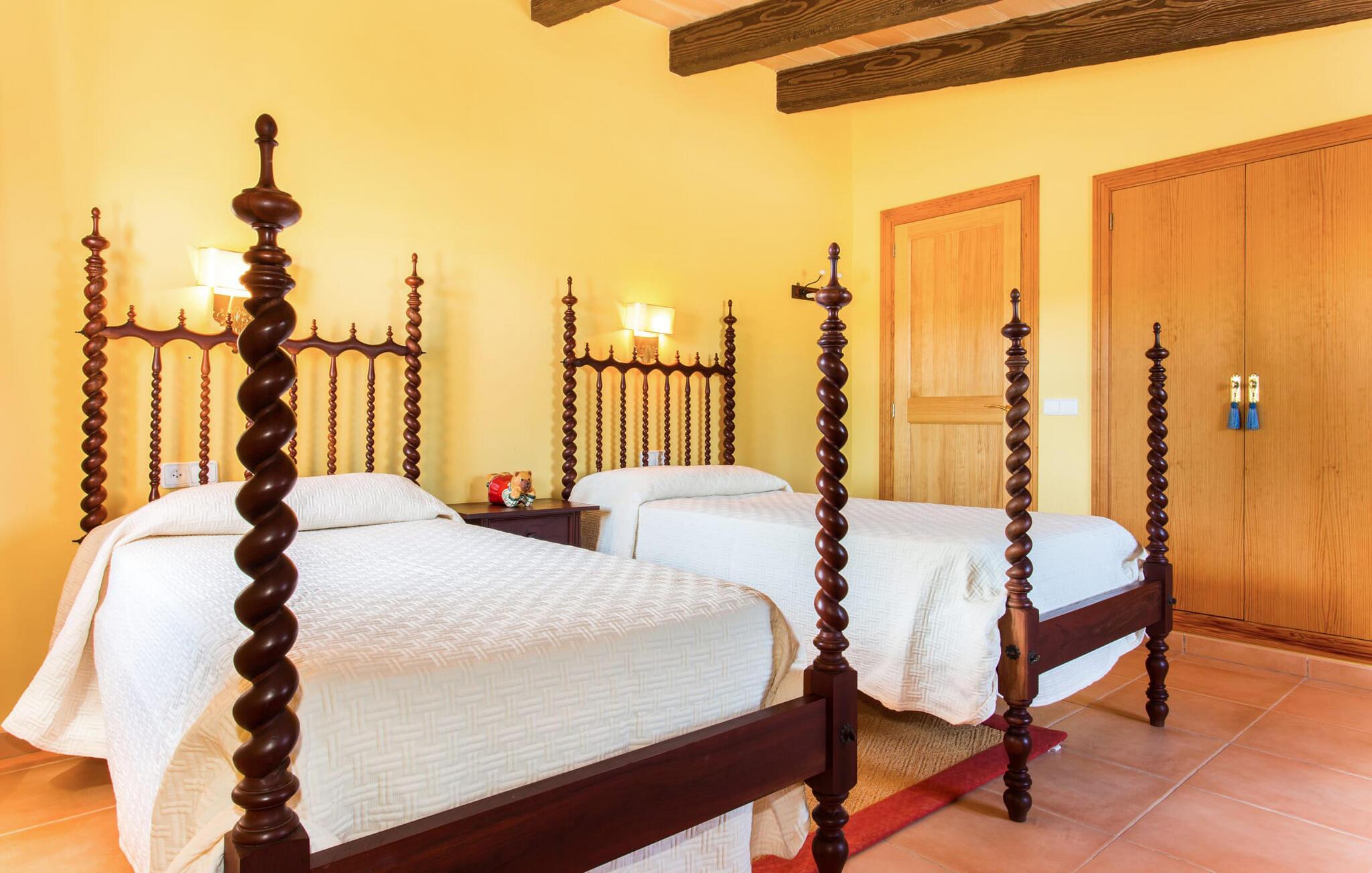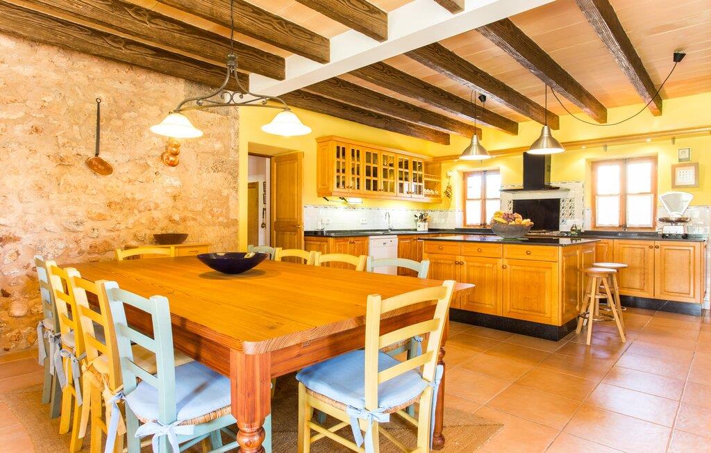 Har I altid drømt om en afslappende ferie i rolige omgivelser, en landlig idyl og nem adgang til de typiske østrande? Så er villaen "Son Viquet" lige noget for jer! I kan forvente en yderst hyggelig, kærligt møbleret atmosfære og en behagelig forbindelse til bekvemt forbundne områder. Den private ejendom er beliggende i en tyndt befolket villaregion og er let tilgængelig via asfalteret vej. En stor og velholdt have byder på en stor velkomst og inviterer til at gå på opdagelse i omgivelserne. Mange palmer og andre middelhavsplanter dekorerer rummene og skaber en fortryllende atmosfære, hvor I vil nyde at tilbringe tid. En hængekøje tilføjer til den indbydende atmosfære. Der er endda et fodboldmål for unge og gamle spillere. Det 10 m store bassin, som nemt kan nås via en halvcirkelformet trappe, giver den nødvendige forfriskning på varme sommerdage: Svøm om morgenen, svøm et par længder og nyd forfriskningen, der breder sig i hele jeres krop! Glem ikke at læse en god bog og nyde timers udendørs aktivitet eller under det smukke træloft med en drink inden for rækkevidde! En stor overdækket terrasse er placeret foran huset og har et spisebord med yderligere siddepladser: dette er det rigtige sted til morgenmad, hvor I kan sidde sammen og planlægge resten af dagen med udsigt til haven og den blå himmel . Men det er også hyggeligt at sidde her om aftenen, og hvis I tænder for grillen i tide, kan I fejre en kulinarisk BBQ sidst på dagen. En rustik, hyggelig atmosfære venter jer inde i villaen: traditionelle synlige bjælker, terracotta flisegulve og naturstenselementer på væggene skaber en individuel og meget hyggelig atmosfære. Brugen af diskrete, lyse farver understreger den indbydende effekt, det samme gør de nøje udvalgte antikke møbler og den klassiske udsmykning. I stueetagen er der et rummeligt køkken med en ø og et stort spisebord, der indbyder til at lave mad og spise sammen. Det lyst indrettede værelse er fuldt udstyret med ovn, komfur, køle/fryseskab kombination, mikroovn, opvaskemaskine, elkedel og filterkaffemaskine og giver derfor et godt grundlag for selvstændig selvforsyning. Find jeres personlige yndlingssted i den hyggelige stue med et separat læsehjørne under trappen og nyd afslapningsstunderne – pejsen er ikke i brug, men skaber stadig en hjemlig atmosfære. På dette niveau er der også et badeværelse med badekar, mens der på øverste etage er tre separate soveværelser, alle med gule vægge og yderligere to rummelige badeværelser, et af dem en-suite. Til en afslappende nat er der to 1,80 x 2,00 m senge og to 0,90 m x 2,00 m senge til rådighed. Et strygejern og to hårtørrere er tilgængelige på stedet, og I behøver ikke at tage dem med jer - det sparer plads i jeres kuffert! Campos selv er en ret fredelig by, men den er meget livlig på markedsdage (torsdage og lørdage). Udover regionale landbrugsprodukter som frugt og grønt tilbydes der også andre ting som souvenirs. Havneområdet i den tidligere fiskerby Colonia de Sant Jordi (21 km) er meget indbydende, måske vil I tage et kig? Hvis I elsker en badeferie, er denne villa det rigtige sted for dig: de indbydende strande på sydøstkysten, herunder den familievenlige Es Trenc strand, er nemme at nå med en lejebil. Den rummelige villa "Son Viquet" er beliggende i landlige omgivelser på en malerisk ejendom, kun 10 minutter i bil øst for Campos. I Campos finder I barer, restauranter og butikker til jeres daglige behov. Køreturen til Mallorcas sydlige strande er ikke langt fra dette feriehus. Mallorcas livlige hovedstad Palma kan nås på omkring 40 minutter i bil.