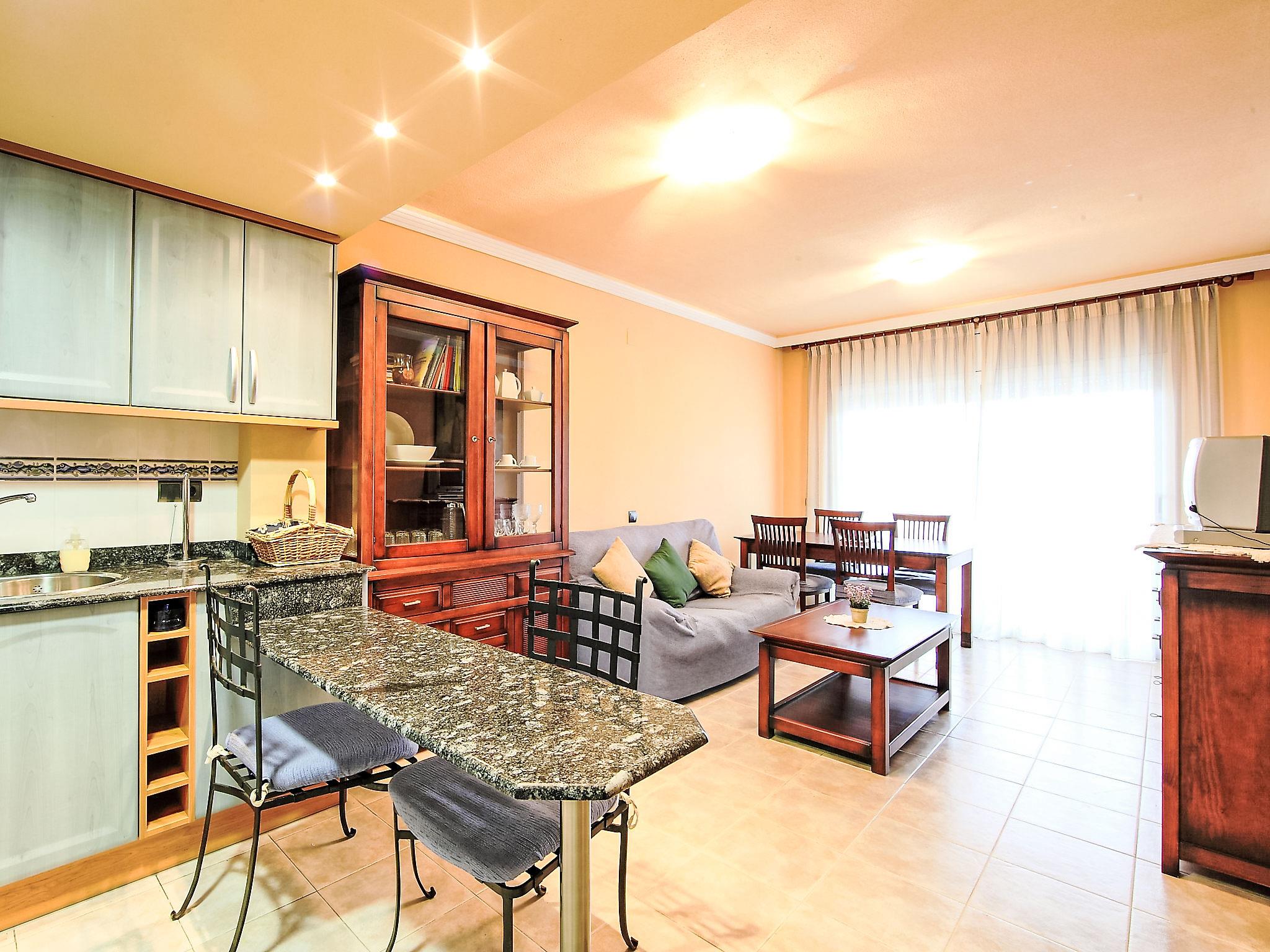 Golden Beach: Beautiful, cosy apartment block "Golden Beach", surrounded by trees and meadows. Above Sant Carlos de la Rapita, in the resort 900 m from the centre of Sant Carlos de la Rapita, 300 m from the edge of the forest, 350 m from the sea. For shared use: large, well-kept garden 5'000 m2 with lawn and plants, swimming pool kidney-shaped (20 x 10 m, depth 40 - 160 cm, seasonal availability: 15.Jun. - 30.Sep.) with internal staircase. Outdoor shower, boccia. In the house: lift, air conditioning, washing machine. Communal covered parking space n 10. Shop 350 m, grocery, supermarket 200 m, shopping centre 400 m, restaurant 100 m, bakery 400 m, café, pedestrian zone 20 m, bicycle rental 500 m, 15 minute walk to the centre, bus stop "Las Delicias" 100 m, railway station "L'Aldea" 25 km, sandy beach "Playa de las Delicias" 280 m, thermal baths "Montbroig del Camp" 70 km. Sports harbour 500 m, marina 500 m, golf course (18 hole) 30 km, surf school, sailing school, riding stable 2 km, sports centre 300 m, walking paths from the house 100 m, children's playground, fishing possibilities 500 m. Nearby attractions: Parque Natural del Delta 16 km, Port Aventura Salou 85 km, Peñiscola 40 km, Vinaroz 20 km. Hiking paths: La Foradada 12 km. Residential complex made up of 2 apartment buildings with all access adapted for disabled use and with access to the beach also adapted via a raised pathway. Ramp inside the swimming pool for disabled guests. Paddle court. Paradise place for enjoying a lovely 2 km walkway with path bridges, restaurants, ice-cream places on the way to Sant Carles de la Rapita harbour.
