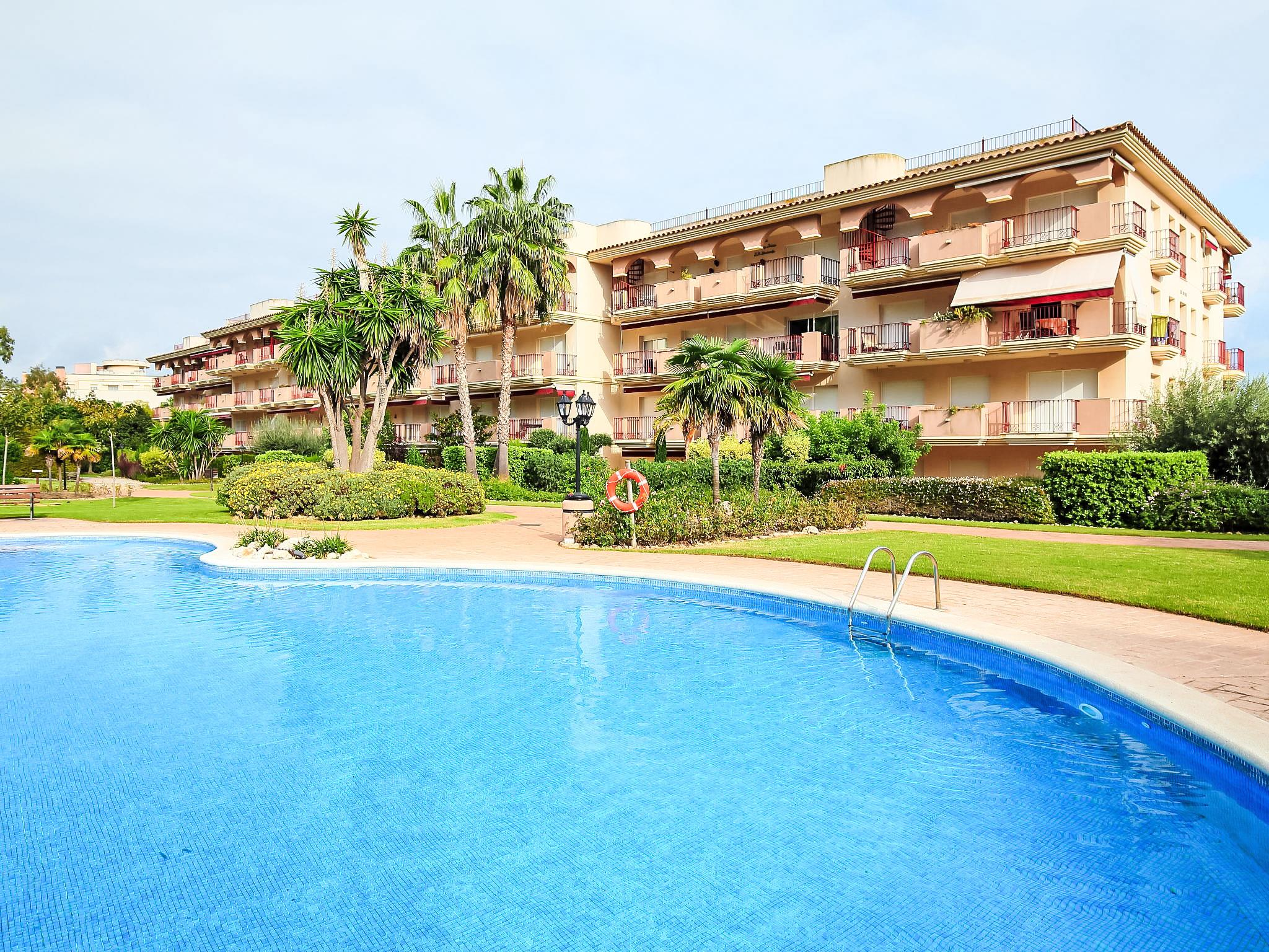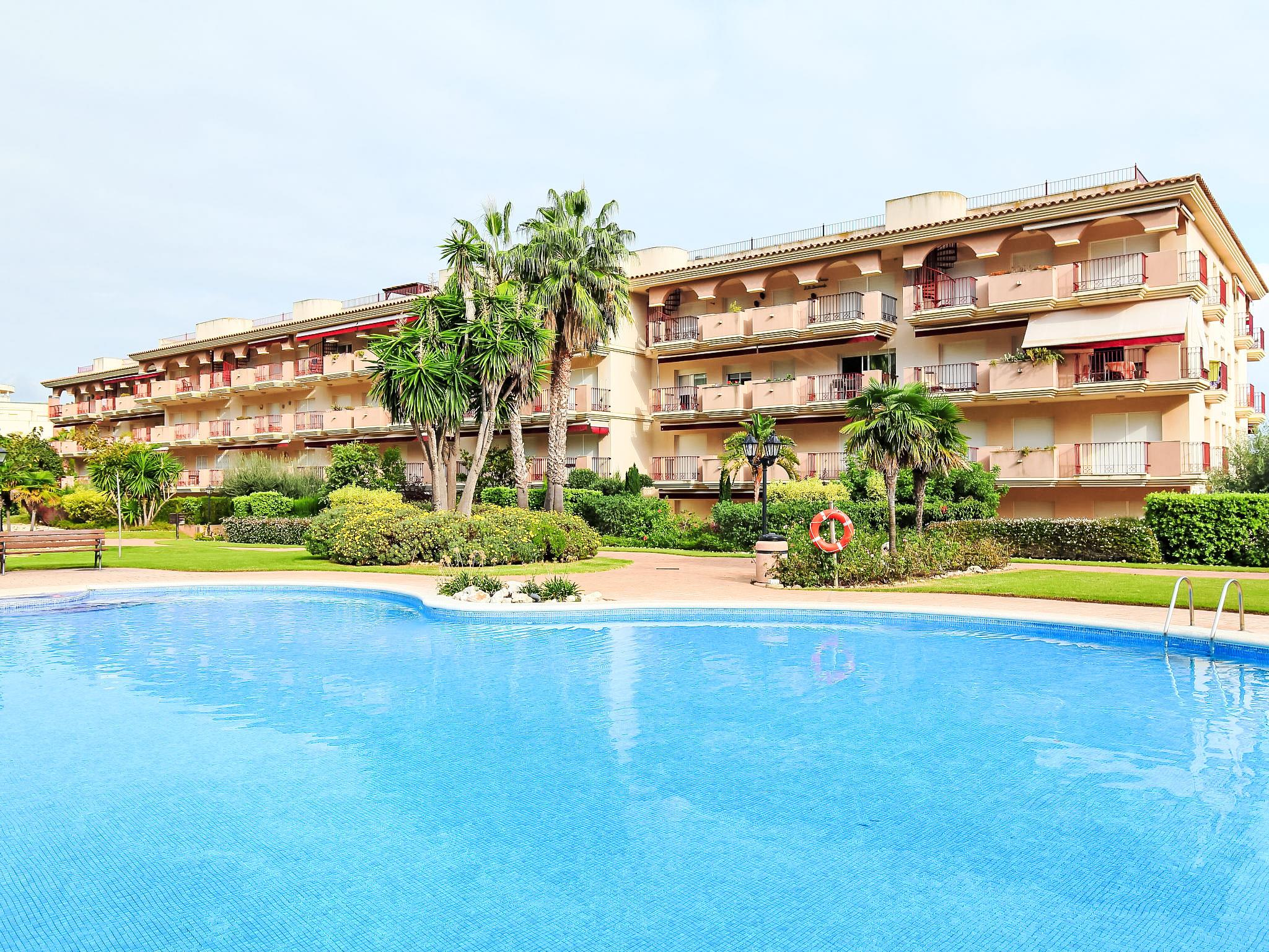 Golden Beach: Beautiful, cosy apartment block "Golden Beach", surrounded by trees and meadows. Above Sant Carlos de la Rapita, in the resort 900 m from the centre of Sant Carlos de la Rapita, 300 m from the edge of the forest, 350 m from the sea. For shared use: large, well-kept garden 5'000 m2 with lawn and plants, swimming pool kidney-shaped (20 x 10 m, depth 40 - 160 cm, seasonal availability: 15.Jun. - 30.Sep.) with internal staircase. Outdoor shower, boccia. In the house: lift, air conditioning, washing machine. Communal covered parking space n 10. Shop 350 m, grocery, supermarket 200 m, shopping centre 400 m, restaurant 100 m, bakery 400 m, café, pedestrian zone 20 m, bicycle rental 500 m, 15 minute walk to the centre, bus stop "Las Delicias" 100 m, railway station "L'Aldea" 25 km, sandy beach "Playa de las Delicias" 280 m, thermal baths "Montbroig del Camp" 70 km. Sports harbour 500 m, marina 500 m, golf course (18 hole) 30 km, surf school, sailing school, riding stable 2 km, sports centre 300 m, walking paths from the house 100 m, children's playground, fishing possibilities 500 m. Nearby attractions: Parque Natural del Delta 16 km, Port Aventura Salou 85 km, Peñiscola 40 km, Vinaroz 20 km. Hiking paths: La Foradada 12 km. Residential complex made up of 2 apartment buildings with all access adapted for disabled use and with access to the beach also adapted via a raised pathway. Ramp inside the swimming pool for disabled guests. Paddle court. Paradise place for enjoying a lovely 2 km walkway with path bridges, restaurants, ice-cream places on the way to Sant Carles de la Rapita harbour.