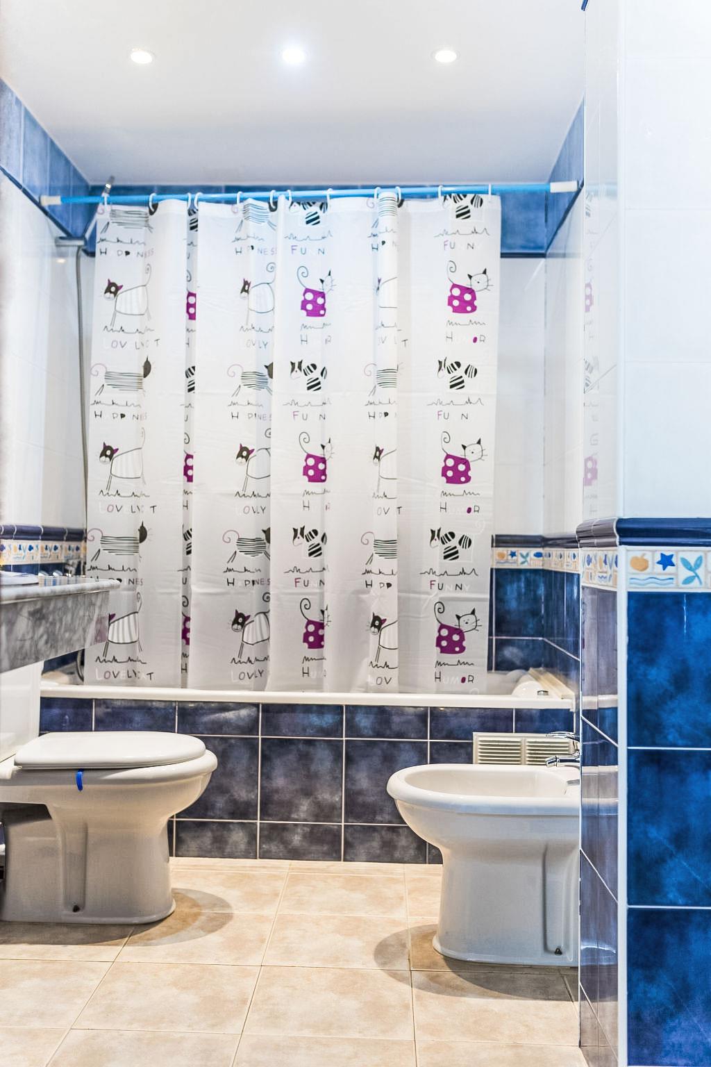 "Playa Delicias", 3-room apartment 58 m2 on 1st floor. Spacious and bright, fully, beautiful and cosy furnishings: living/dining room with digital TV, air conditioning and forced-air heating. Exit to the balcony. 1 room with 1 double bed (1 x 150 cm, length 190 cm), bath/bidet/WC, air conditioning and forced-air heating. Exit to the balcony. 1 room with 2 beds (90 cm, length 190 cm), air conditioning and forced-air heating. Open kitchen (oven, dishwasher, 4 ceramic glass hob hotplates, microwave, freezer, electric coffee machine). Exit to the balcony. Shower/WC. Natural stone floors. Balcony 12 m2. Balcony furniture. Side view of the sea and the mountains. Facilities: washing machine, iron. Internet (WiFi, free). Parking space n 12. HUTTE002153 // Reg. Nr.: ESFCTU0000430100005320620000000000000000HUTTE-0021530