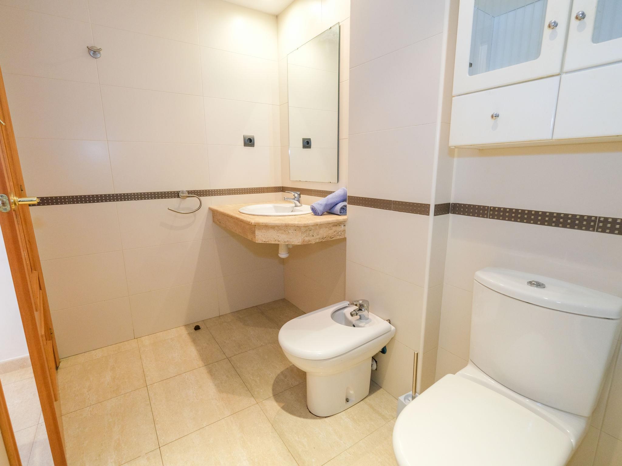 Golden Beach: Modern apartment block "Golden Beach". On the outskirts, 800 m from the centre of Sant Carles de la Rapita, 300 m from the sea, from the beach. For shared use: with lawn, beautiful garden to relax, swimming pool (seasonal availability: 01.Apr. - 30.Oct.). Children's pool, outdoor shower, table tennis, patio, children's playground, pool maintenance by the owner/gardener. In the house: lift. Communal covered parking space n 16. Shop 400 m, grocery, supermarket 400 m, shopping centre, restaurant 200 m, bar 300 m, bakery 400 m, café 200 m, internet café 300 m, pedestrian zone 10 m, bicycle rental 1 km, 15 minute walk to the centre, bus stop "Las Delicies" 300 m, railway station "L'Aldea" 20 km, sandy beach "Playa de les Delicies", diving center 500 m, outdoor swimming pool 1 km, indoor swimming pool 500 m, thermal baths "Montbrio del Camp" 60 km. Sports harbour 500 m, marina, golf course (18 hole) 30 km, surf school, sailing school, tennis, riding stable 12 km, sports centre 800 m, children's playground 500 m, fishing possibilities. Nearby attractions: Parque Natural del Delta de l'Ebre 20 km, Port Aventura Salou 80 km, Castillo de Peñiscola 40 km, Vinaroz 25 km. Hiking paths: La Foradada Sant Carles de la Rapita 3 km.