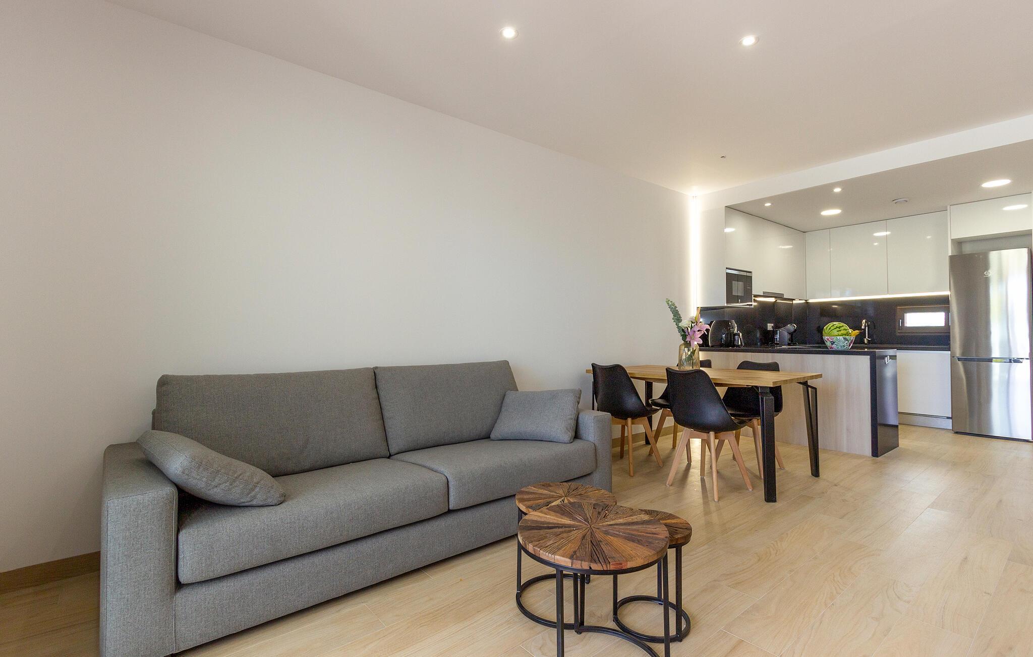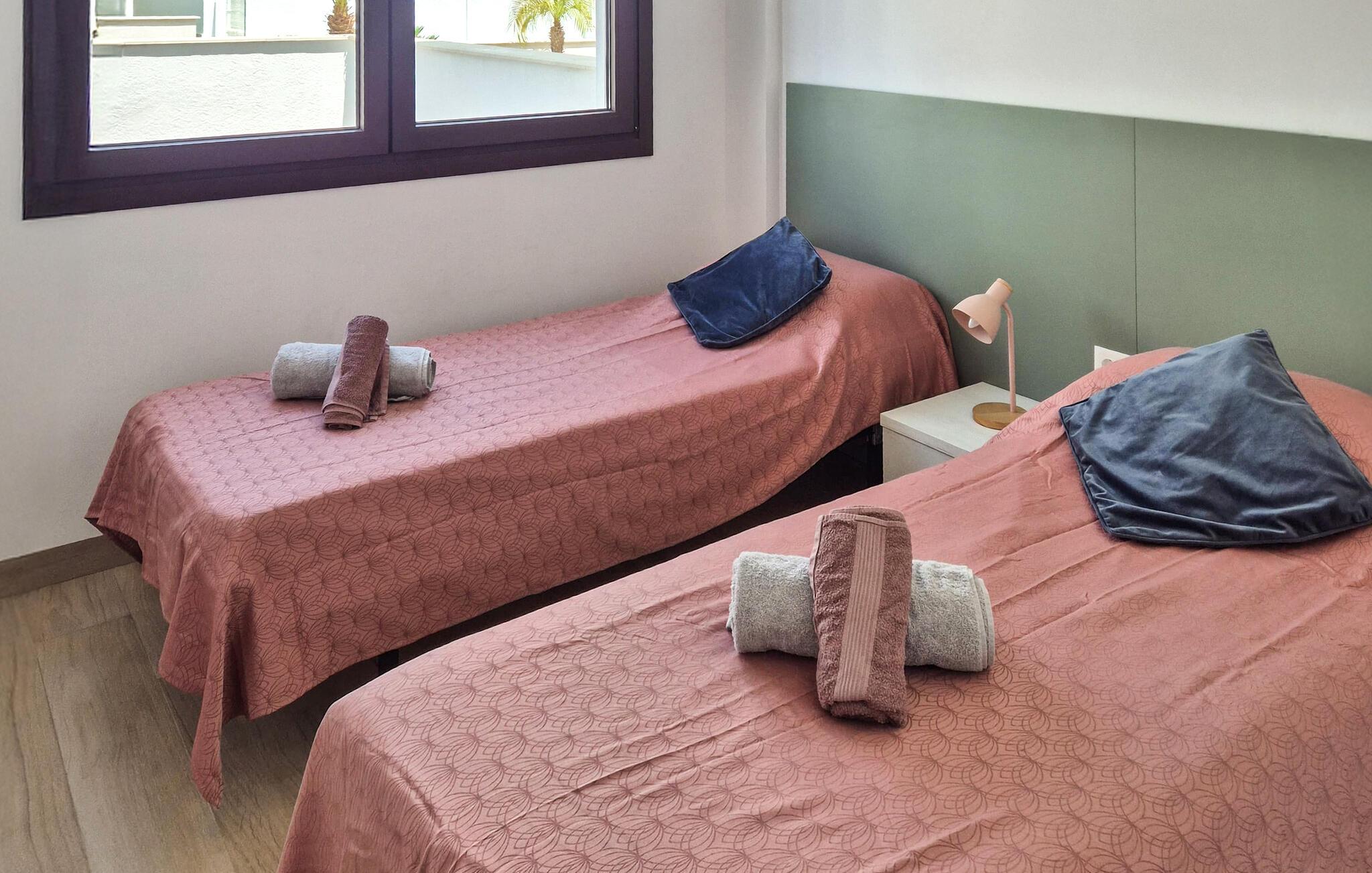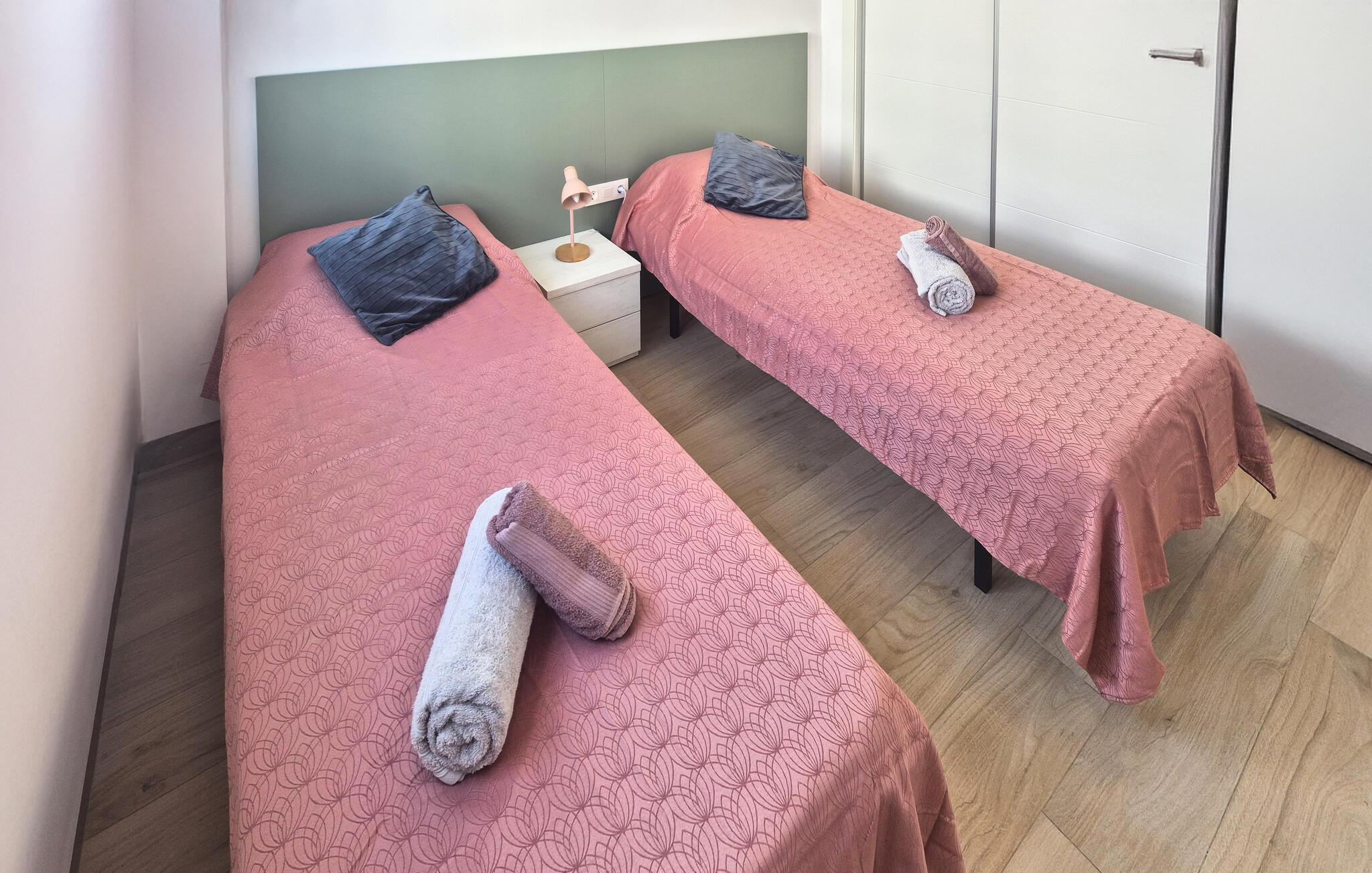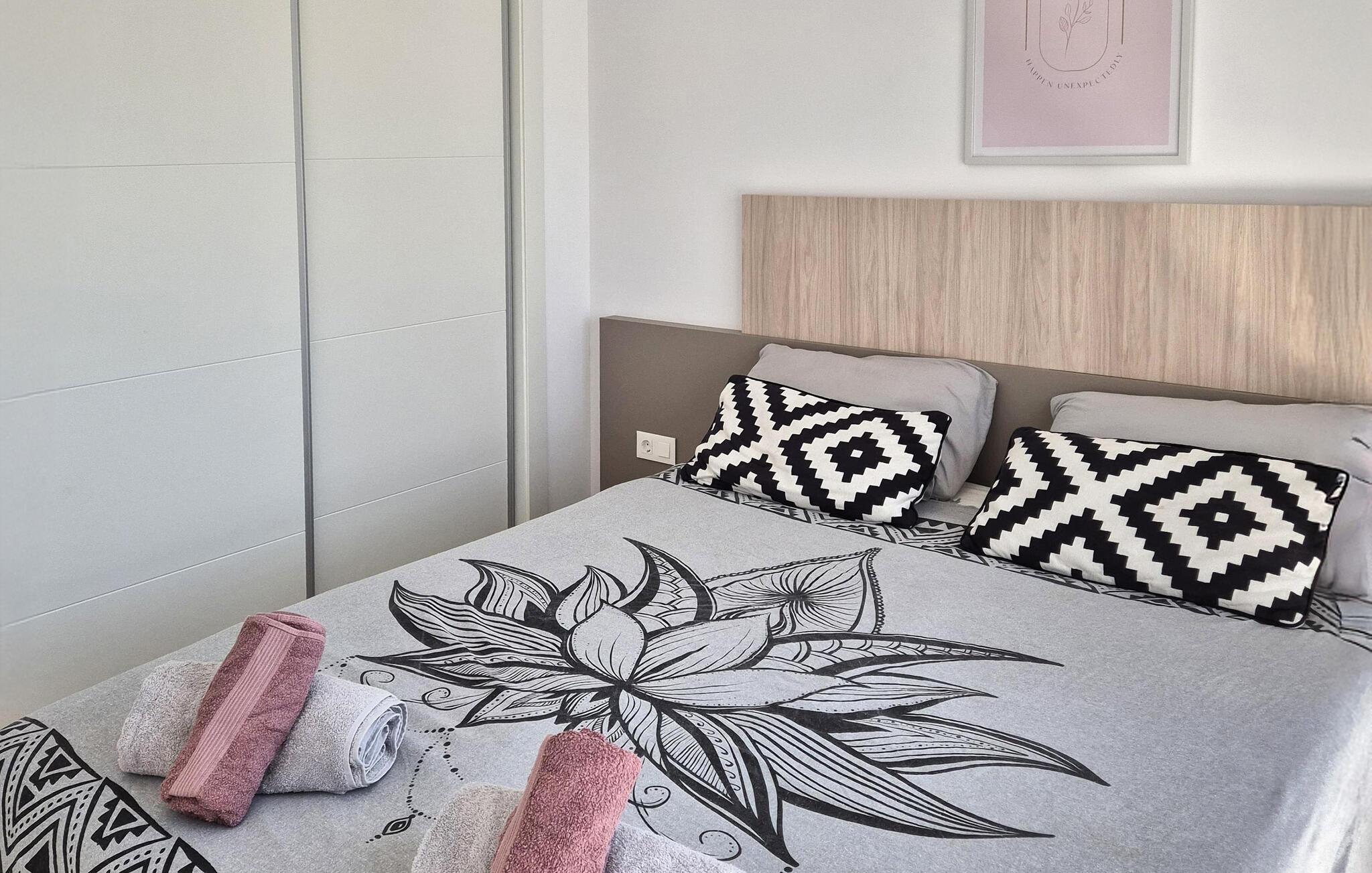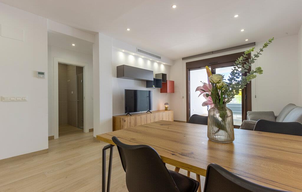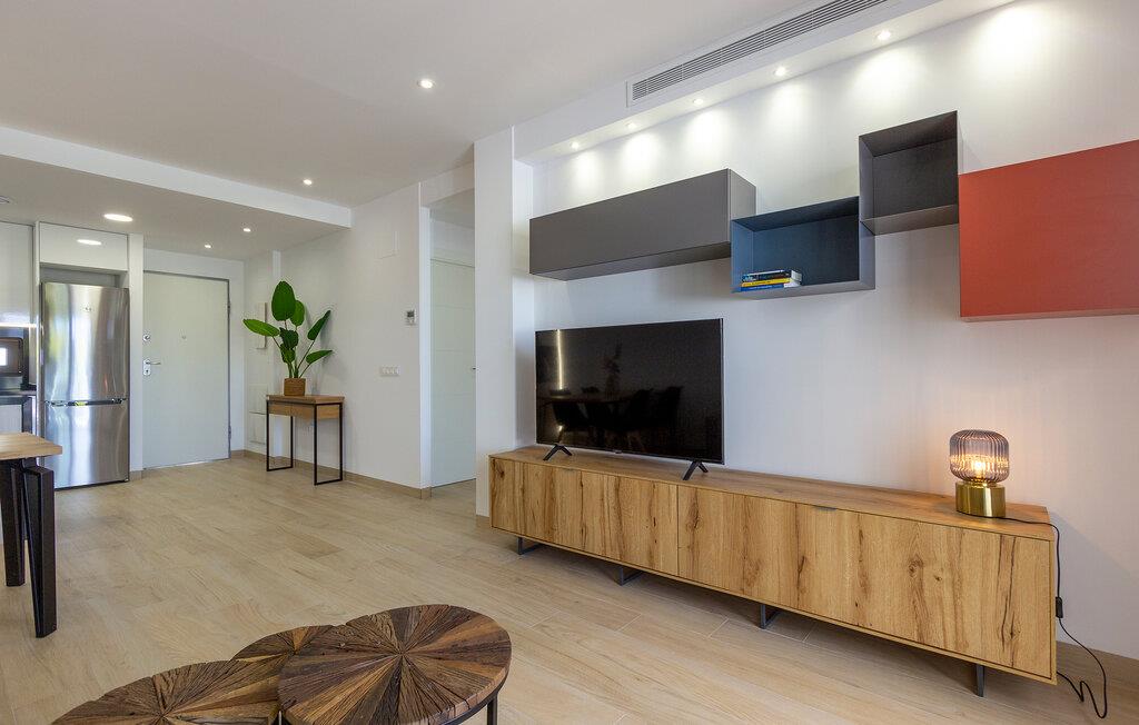 Nyd en dejlig ferie nær stranden i denne ferielejlighed med pooladgang. Den indbydende lejlighed byder jer velkommen i en smuk beliggenhed ikke langt fra havet. Det er det ideelle sted for en afslappende pause, hvor I kan slappe af på stranden og poolen samt udforske det omkringliggende område. Brug de moderne og smagfuldt indrettede værelser som grundlag for en uforglemmelig tid sammen om aftenen, inviterer den komfortable sofa til at slappe af sammen. Nyd skønne timer udendørs på terrassen, et ideelt sted at tilbringe de varme sommeraftener. I kan svømme i ro og mag i den fælles pool. Tag til stranden, hvor vidunderlige dage fulde af badesjov og afslapning venter. Den charmerende landsby Finestrat imponerer med sine snoede gader og typisk middelhavsarkitektur. I kan slentre gennem de smalle gader, prøve det traditionelle spanske køkken i de lokale restauranter og nyde den afslappede atmosfære. I de umiddelbare omgivelser inviterer regionens bjerge og bakker til vandreture. Særligt anbefalet er klatringen til Puig Campana, et imponerende bjerg, der byder på en spektakulær udsigt over kysten og baglandet.