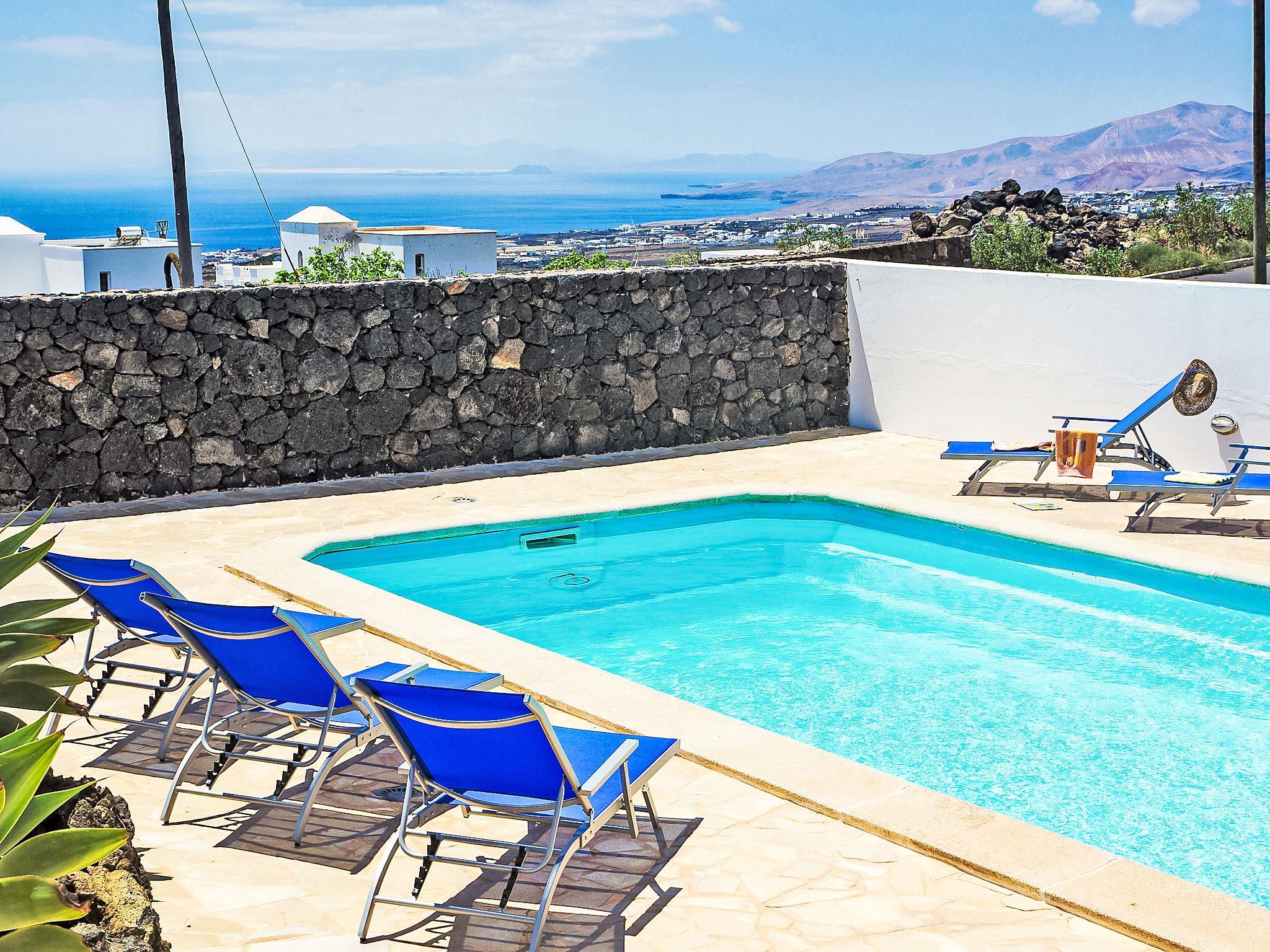 House "Pelzer", built in 2005. In the resort Tias (15minutos), on the outskirts Arrecife capital, in a quiet position, 8 km from the sea, 8 km from the beach. Private: property 1'078 m2, wildlife garden, beautiful garden to relax, swimming pool angular (10 x 4 m, depth 105 - 206 cm, seasonal availability: 01.Jan. - 31.Dec.). Outdoor shower, terrace, parking on the premises. Shop 4 km, grocery, restaurant 500 m, bus stop "Tegoyo Vuelta" 1.1 km, sandy beach 8 km. Golf course (18 hole) 7 km, tennis 8 km. Nearby attractions: Parque temático 9 km. Please note: car recommended.