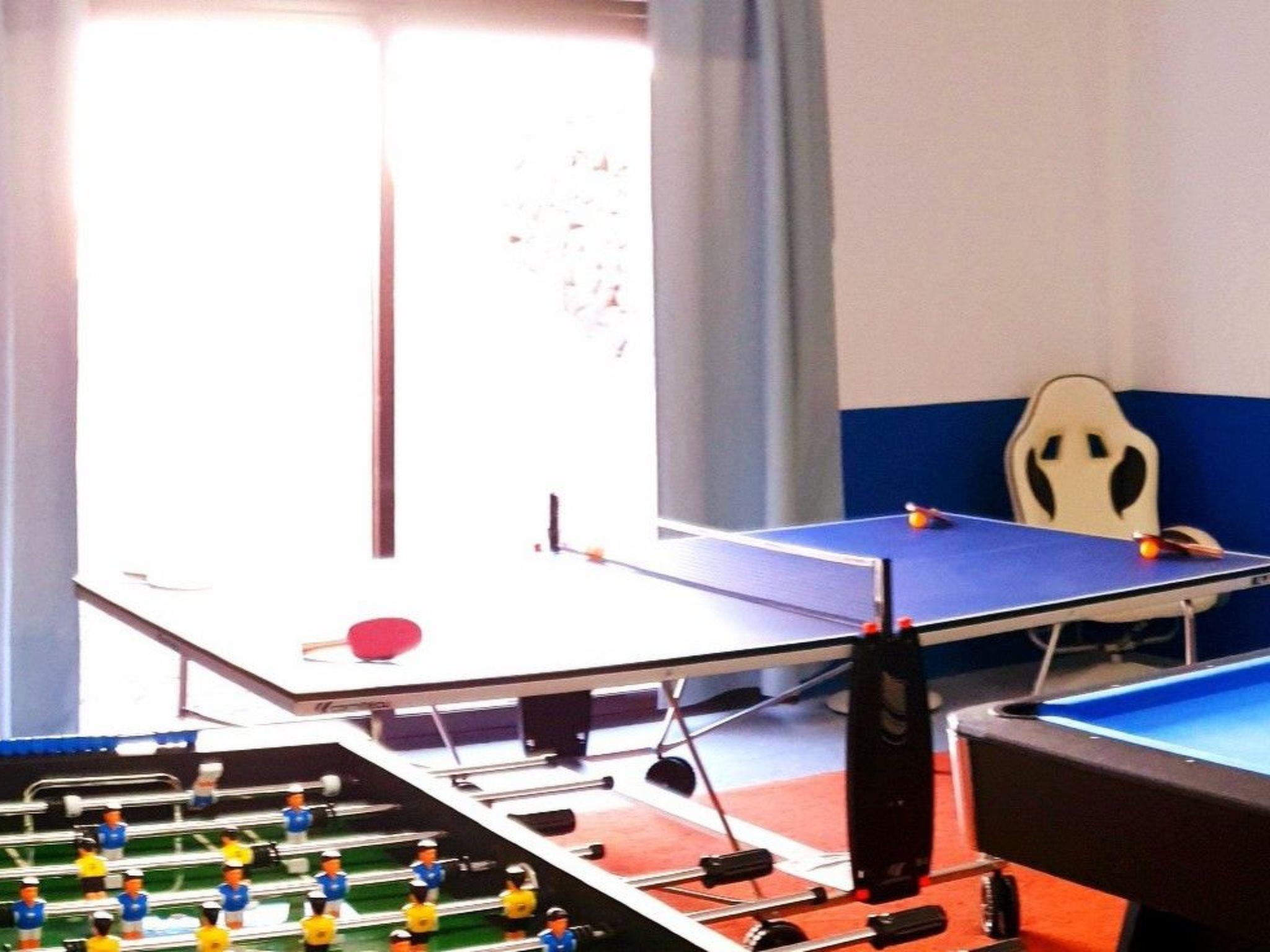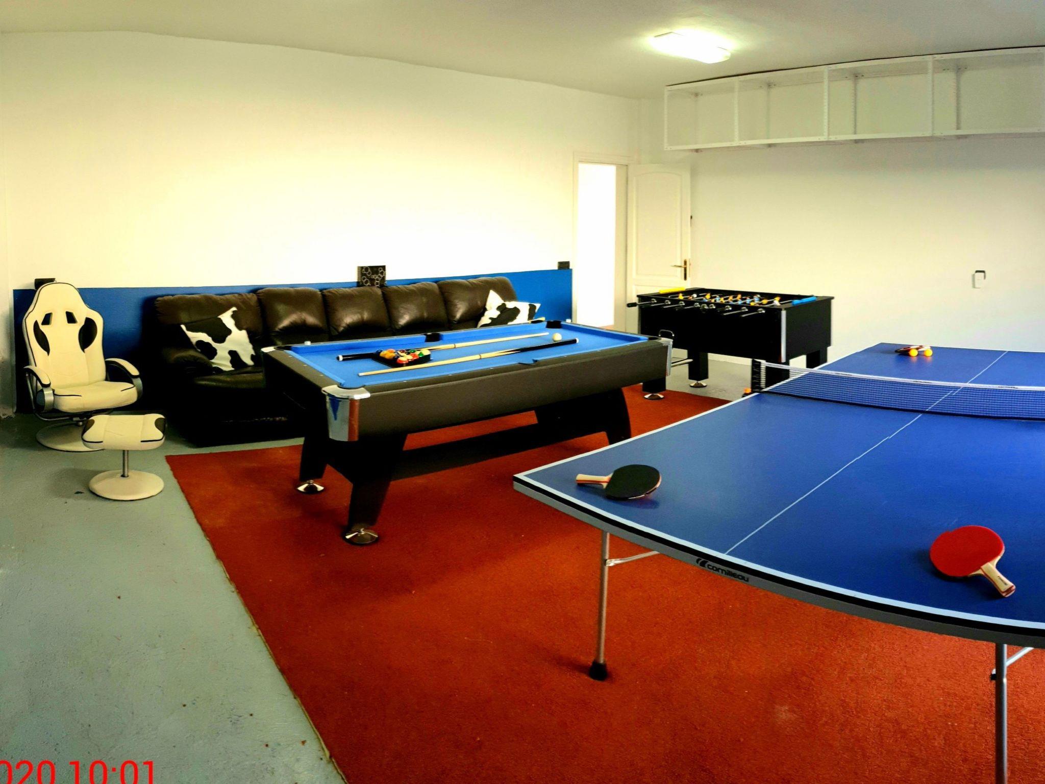 The interior of this detached holiday home is designed to offer comfort. Five bedrooms that can be darkened ensure a restful night's sleep, while three bathrooms with various amenities such as a shower, bathtub and a bath with shower attachment leave nothing to be desired. Entertainment is provided by a Smart TV, a games console, billiards, table football and a table tennis table. Additional comfort is provided by partial air conditioning and various fans, so that you feel comfortable even on warmer days.