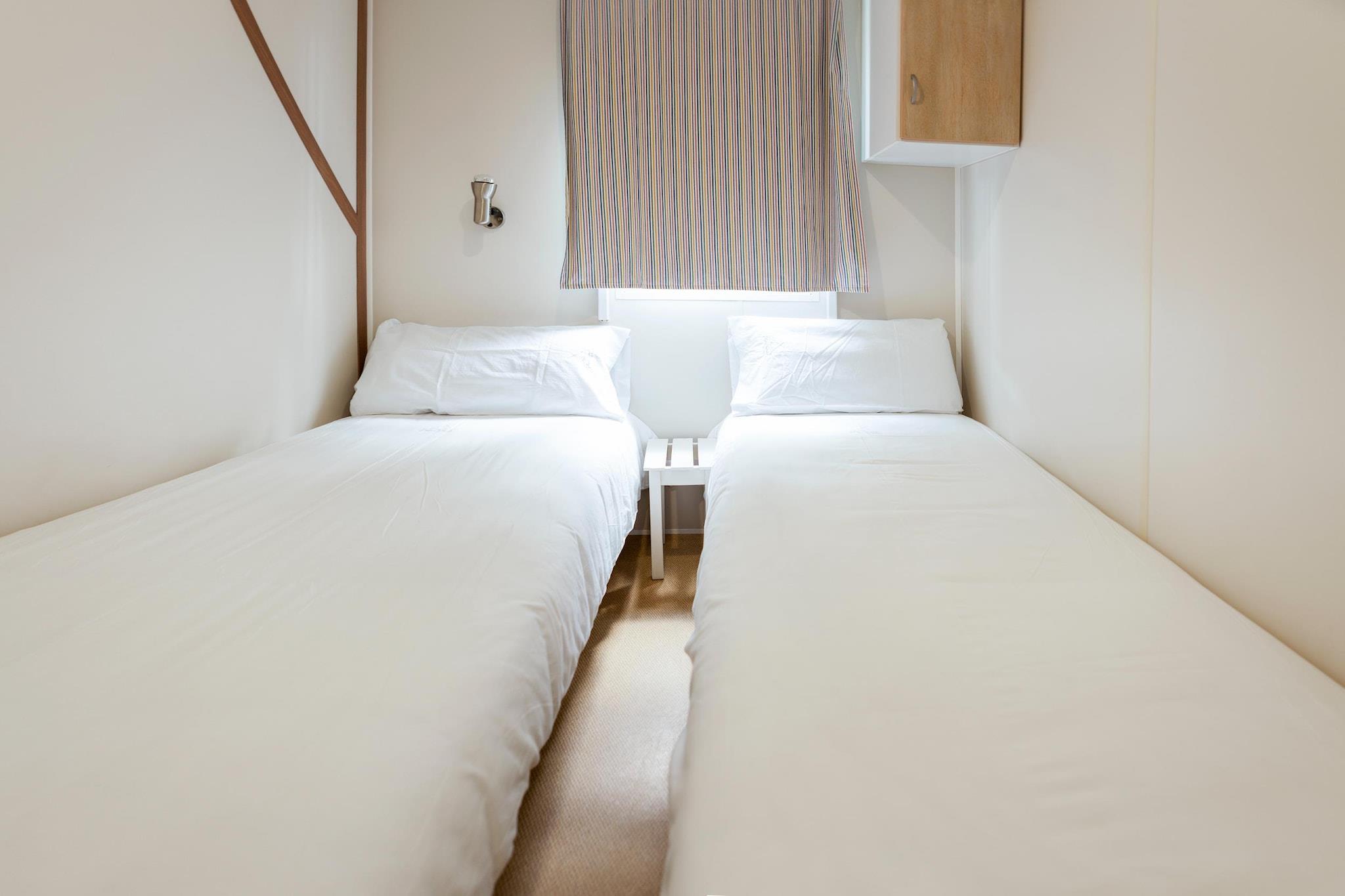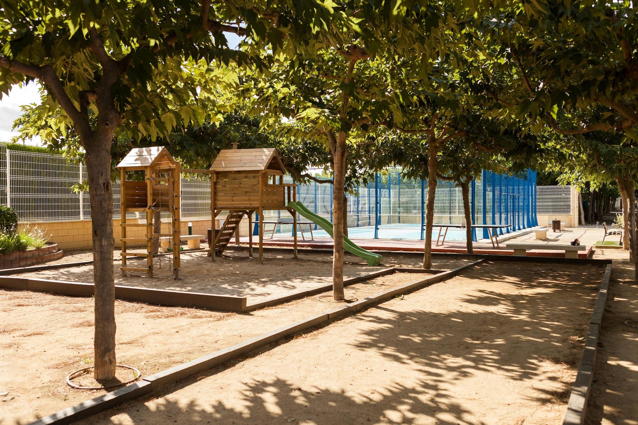 Træd ind i denne charmerende bungalow på 26 m², omhyggeligt designet til op til 5 gæster (4 voksne + 1 barn). Med to indbydende soveværelser, et hyggeligt opholdsområde med en sovesofa, et veludstyret køkken og et moderne badeværelse, tilbyder det alt hvad du behøver for et afslappende ophold. Begynd dine morgener på den private 8 m² store terrasse med en kop kaffe, eller slap af om aftenen med et glas vin, mens solen går ned. Beliggende kun få skridt fra poolen og restauranten på stedet, er disse fredelige omgivelser ideel til familier og små grupper, der leder efter en blanding af bekvemmelighed og ro. Perfekt placeret i Costa Dorada-regionen, er du kun få minutter væk fra Tarragonas berømte romerske amfiteater, katedralen og den fantastiske middelhavskystlinje. Tag en kort køretur til PortAventura World for spænding, eller udforsk den nærliggende ferieby Salou med dens palmeomkransede promenade, butikker og familievenlige strande. Uanset om du er på sightseeing eller solbader, er der noget for enhver smag. Nyd lækre måltider uden at forlade ejendommen på campingpladsens restaurant, eller begiv dig ud til nærliggende spisesteder ved havet, der serverer frisk fisk og skaldyr, tapas og lokale vine. Med nem parkering, internetadgang og alle de væsentlige ting dækket - er denne bungalow din perfekte base for en afslappet, men eventyrfyldt spansk ferie.