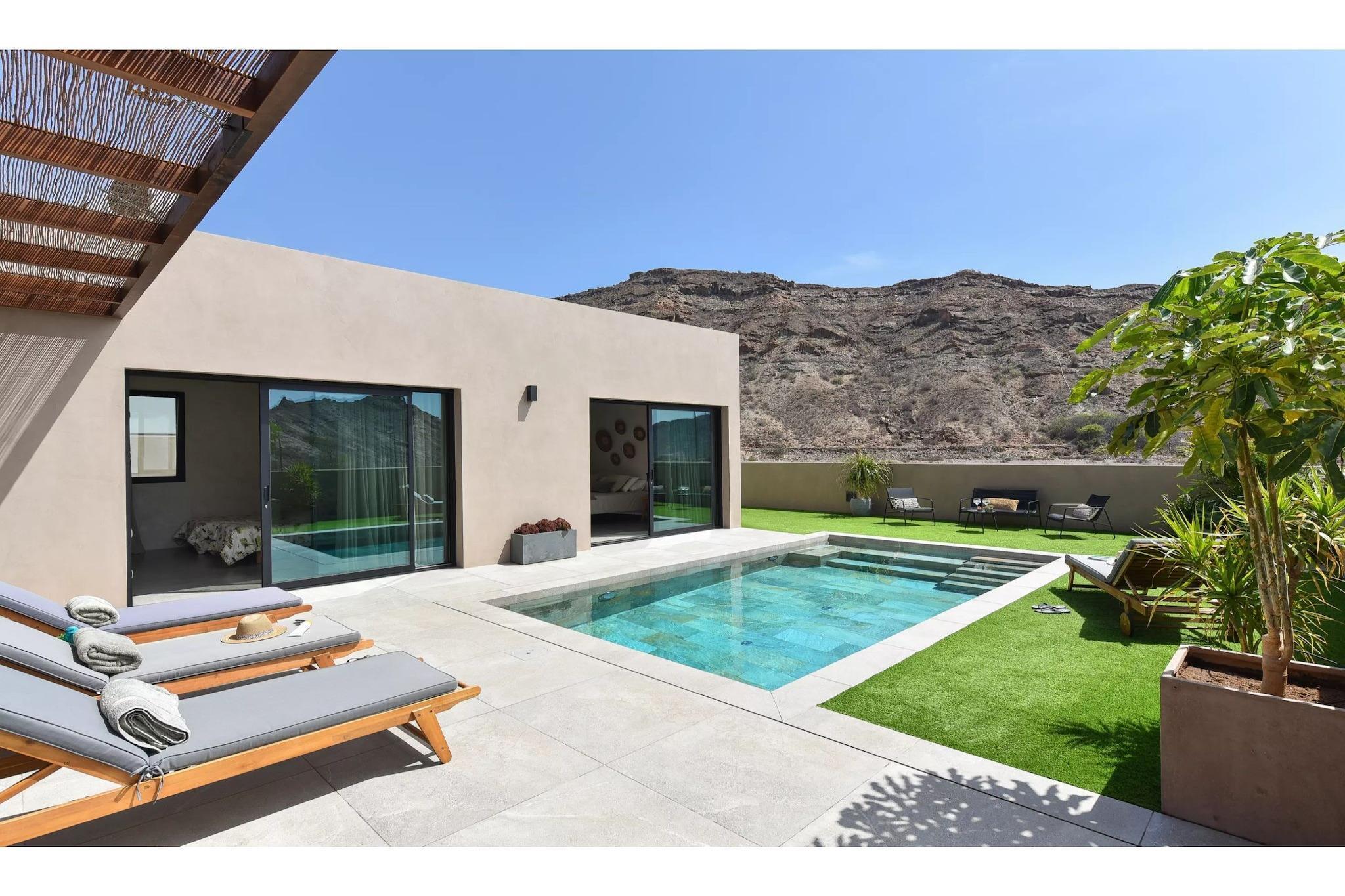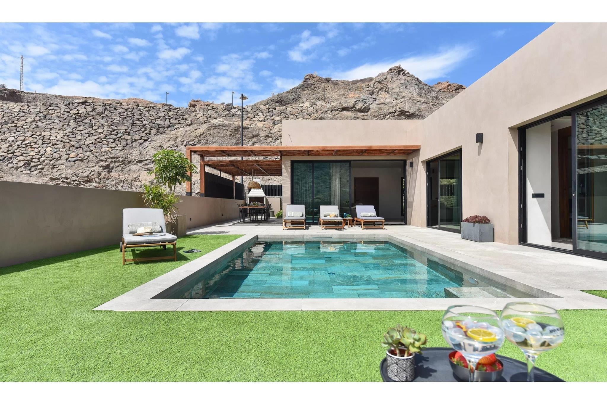 En smuk villa for op til 6 personer, en privat swimmingpool og beliggende i el Barranco del Cura i den sydlige del af Gran Canaria, få meter fra stranden i Tauro. Denne utrolige villa med kvalitetsmaterialer vil ikke efterlade dig ligeglad, fuldt udstyret med alt hvad du behøver for at tilbringe en drømmeferie og i et område med absolut ro. I stueetagen finder du et soveværelse med dobbeltseng med to enkeltsenge og et komplet badeværelse, samt master soveværelset med en dobbeltseng, privat påklædningsværelse og et komplet en-suite badeværelse. Den rummelige åbne stue er udstyret med et Smart TV, internet, en stor og komfortabel sofa og udgang til terrassen gennem en stor skydedør, som løber ud i køkkenet med morgenmadsbar og er udstyret til mindste detalje: ovn, mikroovn, køleskab, kaffemaskine, køkkengrej og elkedel, derudover er der bryggers med vaskemaskine-tørretumbler, Alle værelser i stueplan har adgang gennem glasskydedøre til den skønne terrasse og udendørs spiseplads med argentinsk kulgrill, solarium med liggestole og den smukke private swimmingpool (kan opvarmes mod et ekstra gebyr). Går vi videre til kælderen, finder vi et master soveværelse med en king size dobbeltseng, et påklædningsværelse og et komplet en-suite badeværelse. Det har også en privat terrasse og et spillelokale med bordtennis. Villaen har en privilegeret beliggenhed, kun 14 minutters gang fra Tauro strand og 12 minutter fra den stærkt anbefalede "Guantánamo" restaurant. Tauro tilbyder roligt strandområde, shoppingområder, supermarkeder og en promenade, der forbinder Amadores-stranden med Puerto Rico og Playa del Cura. En smuk solnedgangstur langs kysten!