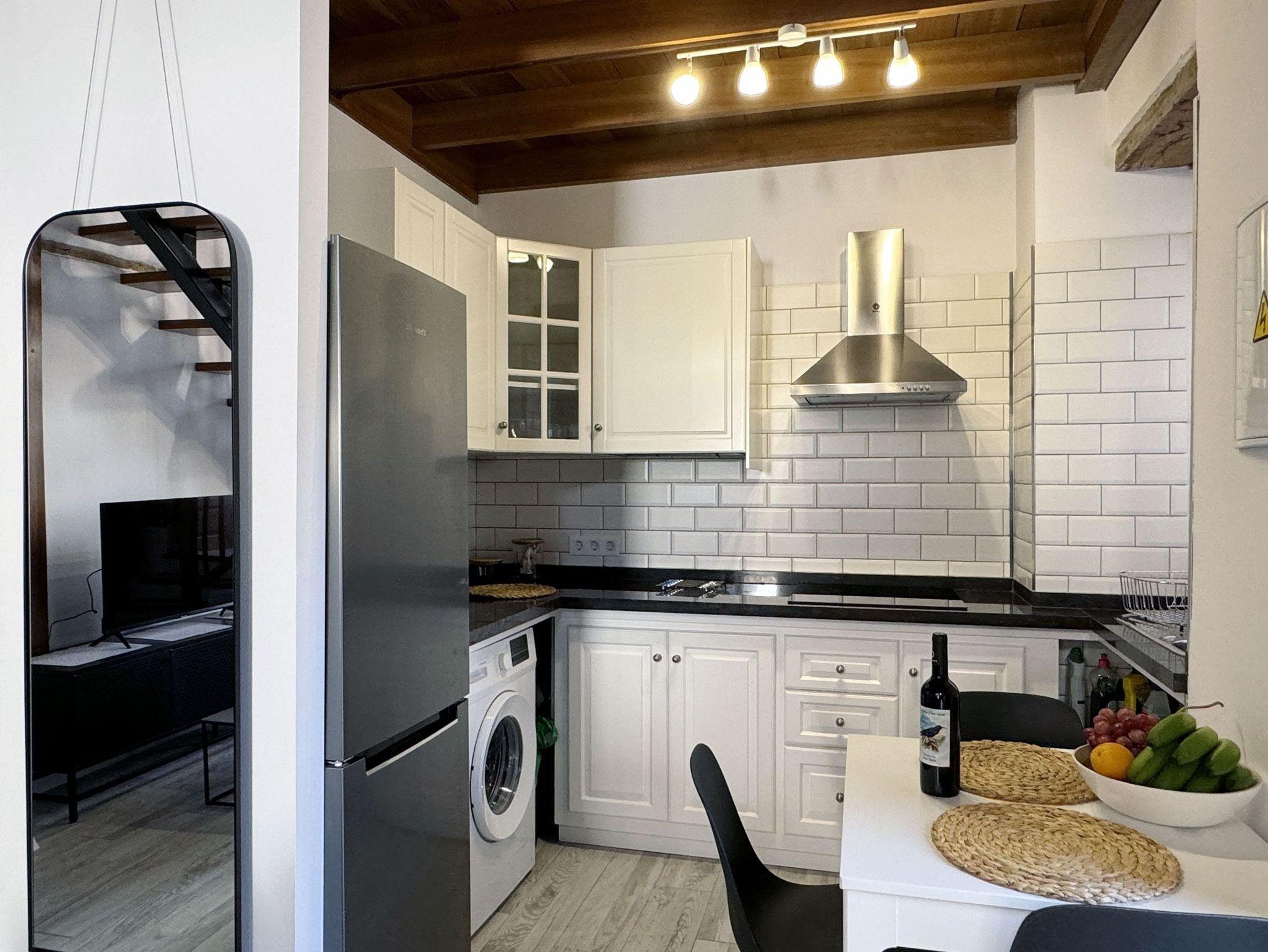 Die Casa Lola bietet Ihnen außerdem einen gemütlichen Wohnbereich, einen stilvollen Arbeitsplatz und eine voll ausgestattete Küche mit Ceranfeld, Spüle und Kühl-Gefrierkombination perfekt für Ihren längeren Aufenthalt.
