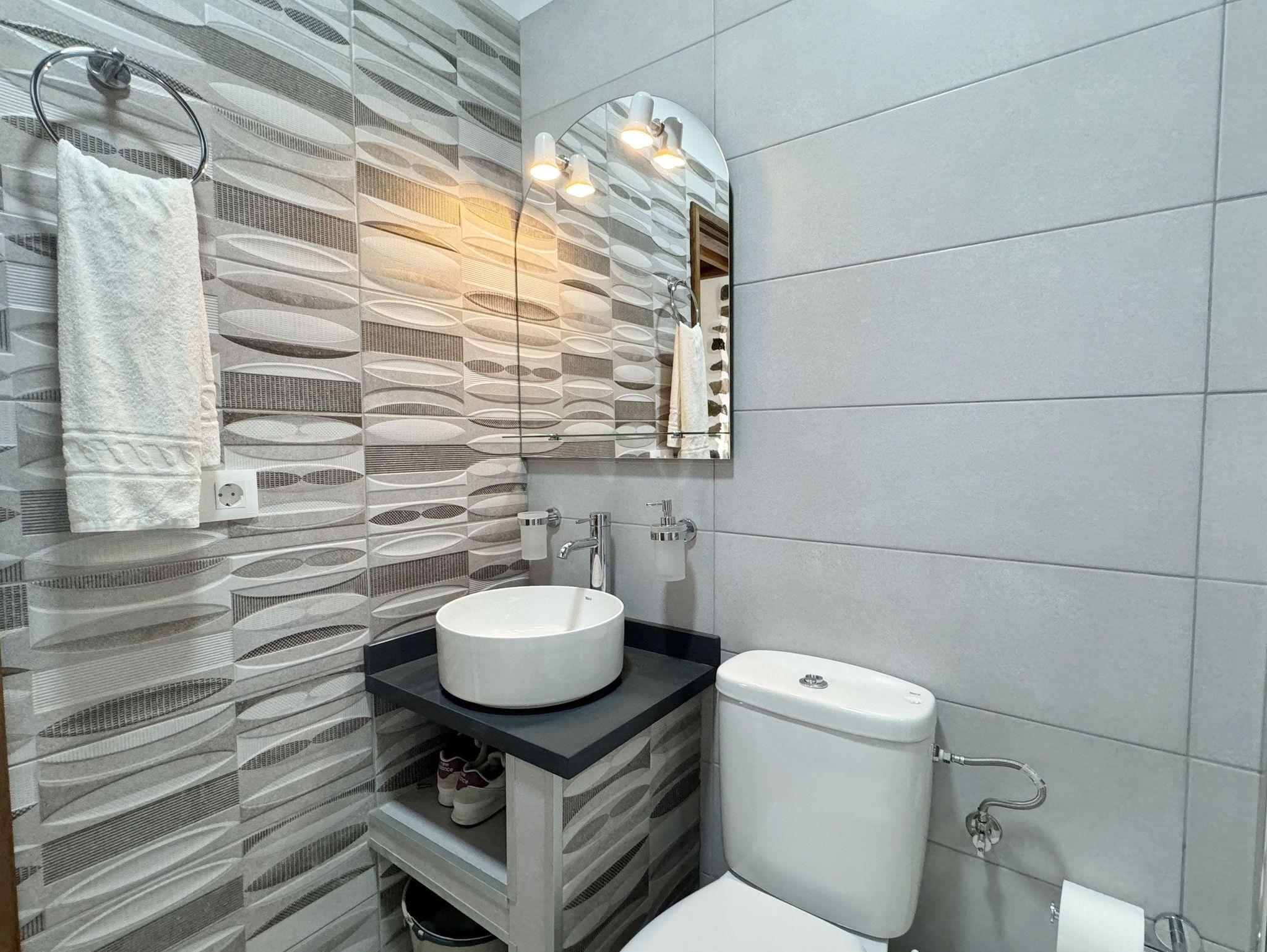 Das moderne Bad verfügt über eine begehbare Dusche. Die moderne Klimaanlage sorgt für angenehme Temperaturen, sodass Sie das ganze Jahr über ein komfortables Zuhause auf Zeit haben.