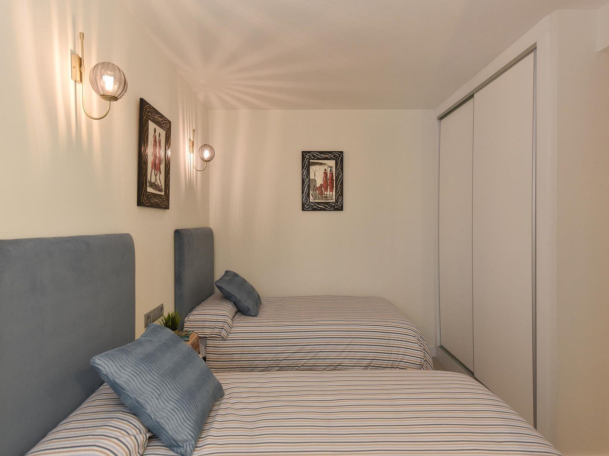 "El Balcón Azul de Taliarte", 4-room apartment. Object suitable for 6 adults. Bright, very comfortable and cosy furnishings: living room with TV and flat screen. Exit to the terrace. 1 room with 1 double bed. 1 room with 2 beds. 1 room with 1 double bed. Kitchen (oven, dishwasher, 4 ceramic glass hob hotplates, toaster, kettle, microwave, freezer, electric coffee machine). 2 baths/bidet/WC. Natural stone floors. Comfortable furnishings in the country house style. Porch. Terrace furniture, deck chairs (6). Facilities: washing machine, dryer, iron, children's high chair, baby cot for up to 2 year olds, hair dryer. Internet (WiFi). Please note: suitable for families. Non-smokers only. 2024-T12206
