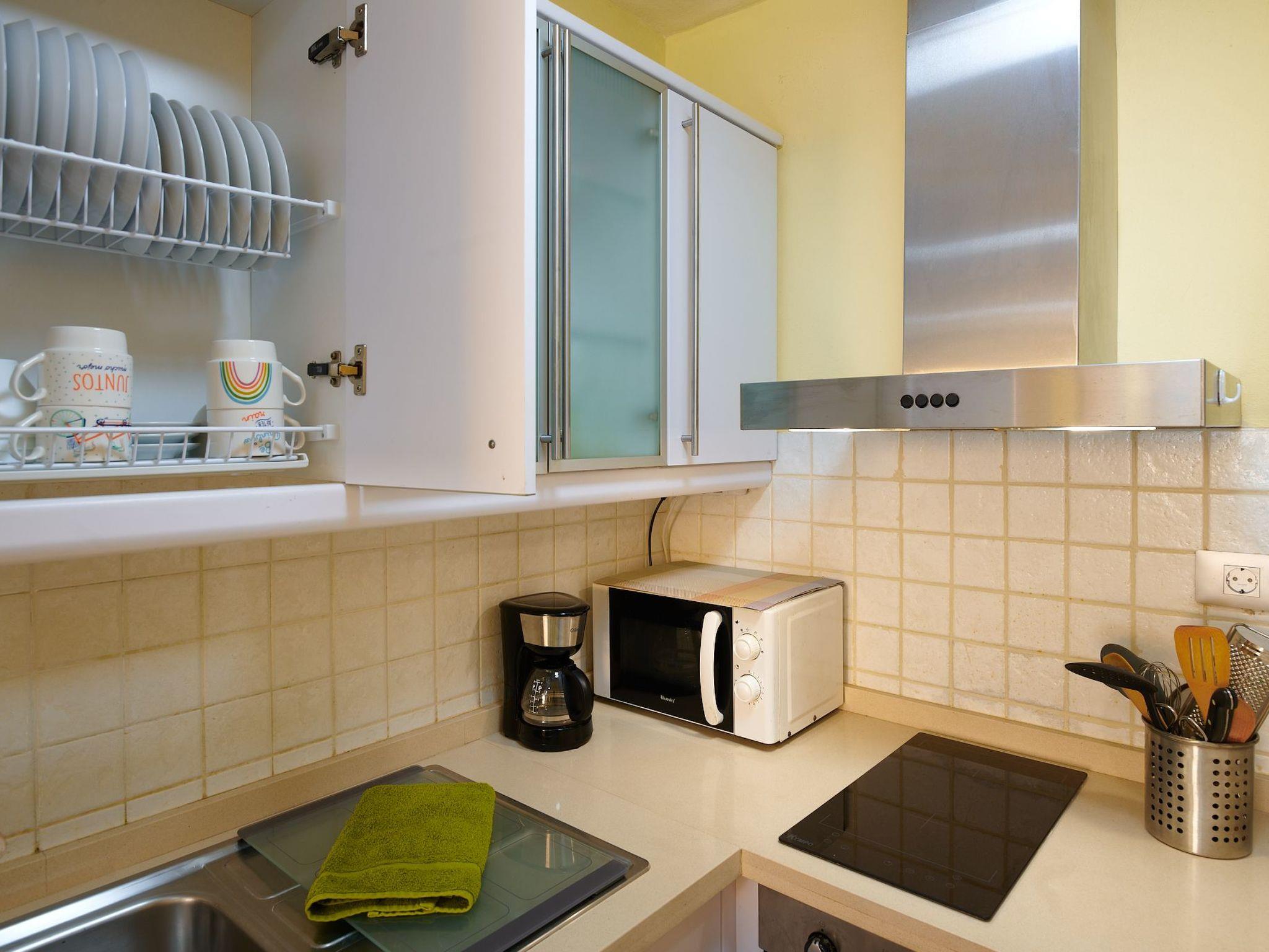 Fully equipped (microwave, washing machine, fridge, vitroceramic hob, 30 lt water boiler, toaster, kettel, coffee machine, hairdryer, iron, etc...).