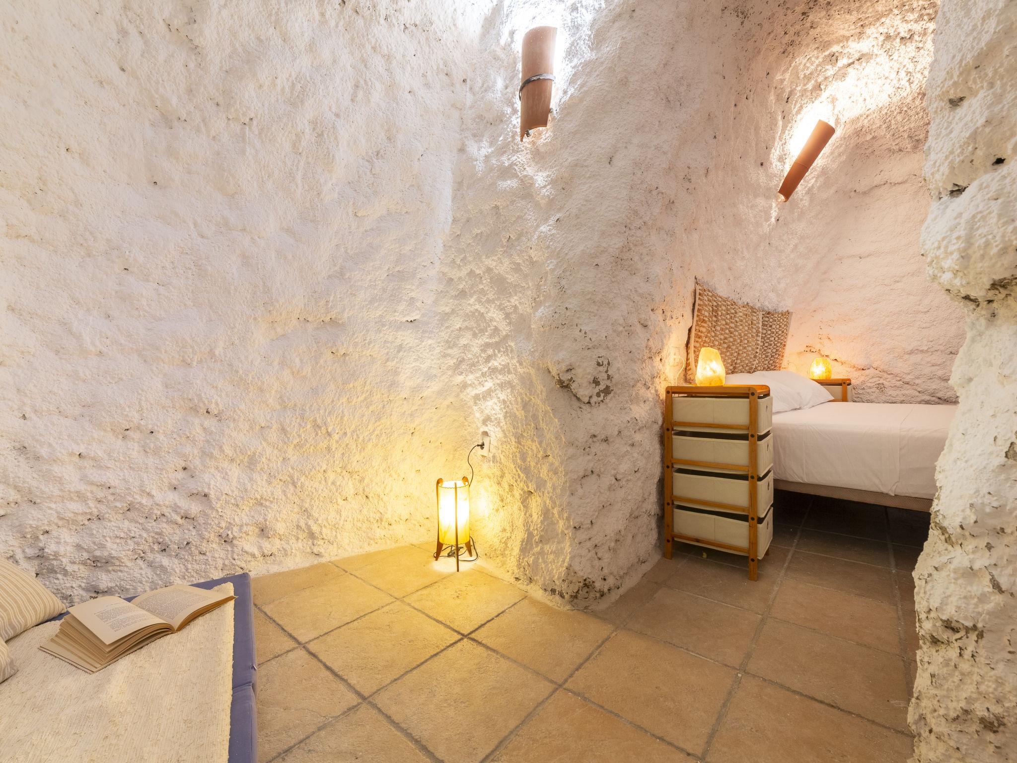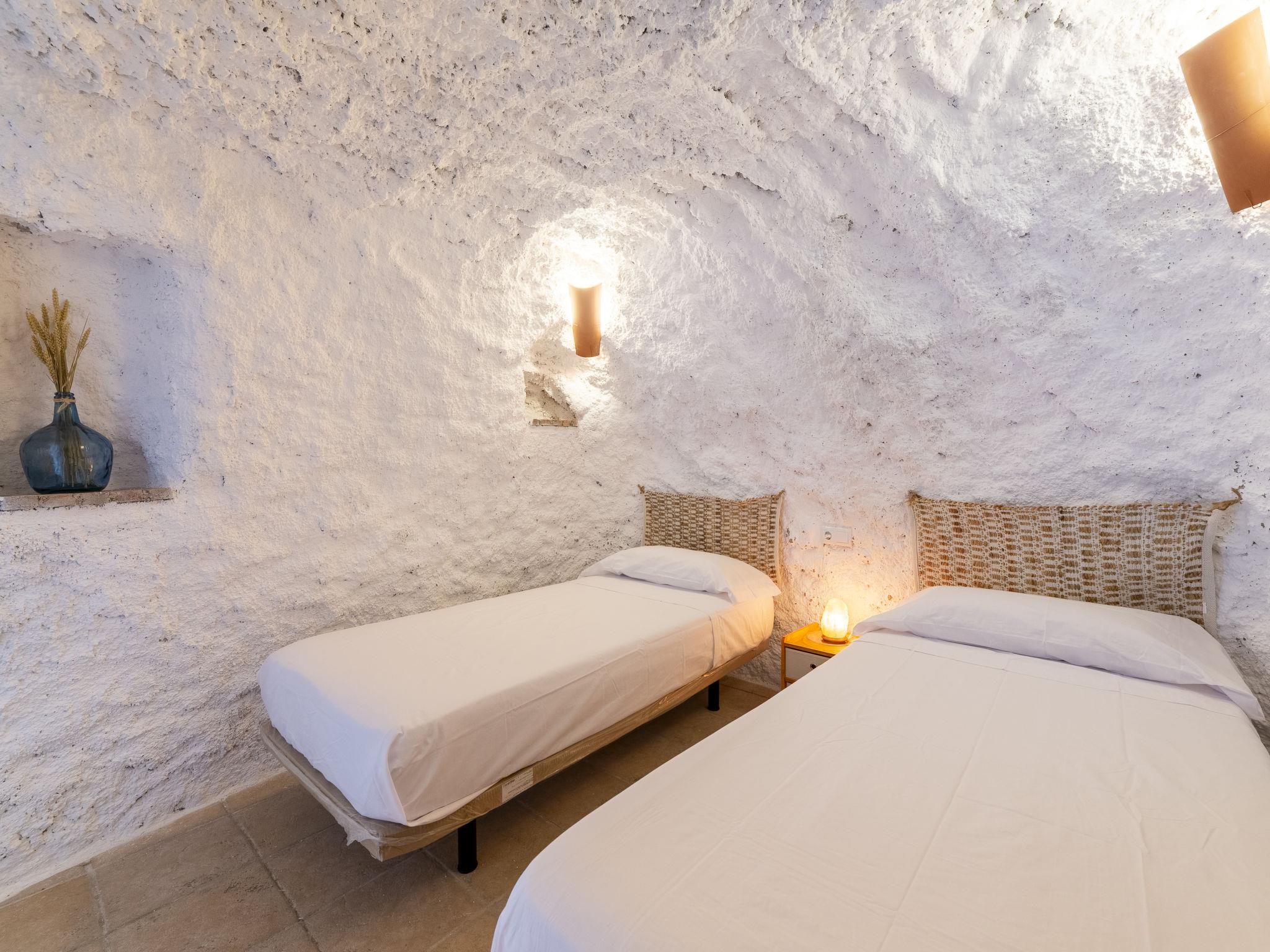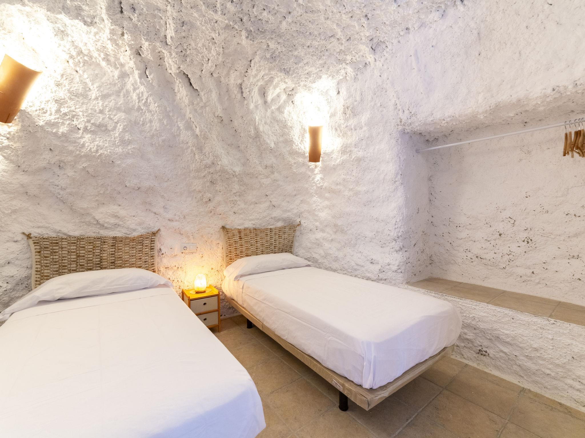 "Cueva María Zambrano", 3-room house 70 m2. Living/dining room with dining table, digital TV, flat screen and heating stove. 1 room with 2 beds (90 cm, length 190 cm). 1 room with 1 french bed (150 cm, length 190 cm). Kitchen (4 ceramic glass hob hotplates, toaster, microwave, freezer, electric coffee machine). Shower/bidet/WC. Wood heating. Terrace. Terrace furniture. Facilities: washing machine, iron, children's high chair, baby cot for up to 2 year olds, hair dryer. Internet (WiFi, free). Please note: non-smokers only. VTAR/AL/01186 // Reg. Nr.: ESFCTU000004003000388815000000000000000VTAR/AL/011868