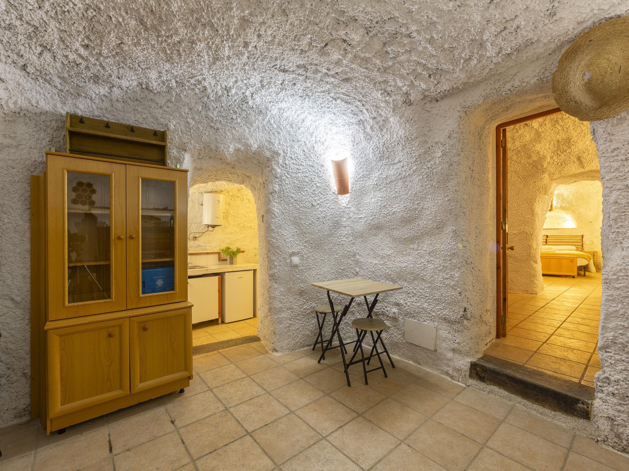 "Cueva Mariana Pineda", 3-room house 70 m2. Living/dining room with dining table, digital TV, flat screen and heating stove. 1 room with 2 beds (90 cm, length 190 cm). 1 room with 1 french bed (150 cm, length 190 cm). Kitchen (4 ceramic glass hob hotplates, toaster, microwave, freezer, electric coffee machine). Shower/bidet/WC. Wood heating. Terrace. Terrace furniture. Facilities: washing machine, iron, children's high chair, baby cot for up to 2 year olds, hair dryer. Internet (WiFi, free). Please note: non-smokers only. VTAR/AL/01159 // Reg. Nr.: ESFCTU000004003000388815000000000000000VTAR/AL/011592