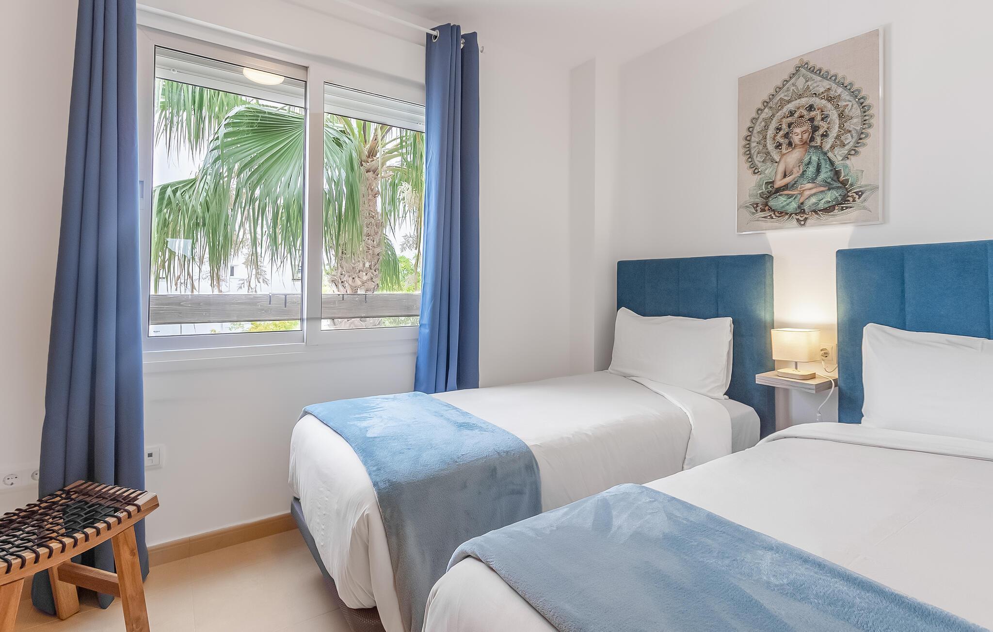Træd ud på terrassen, hvorfra I har udsigt over det smukke anlæg. Kun få skridt derfra venter den rummelige, fælles pool på jer. Tag en forfriskende svømmetur under palmerne.