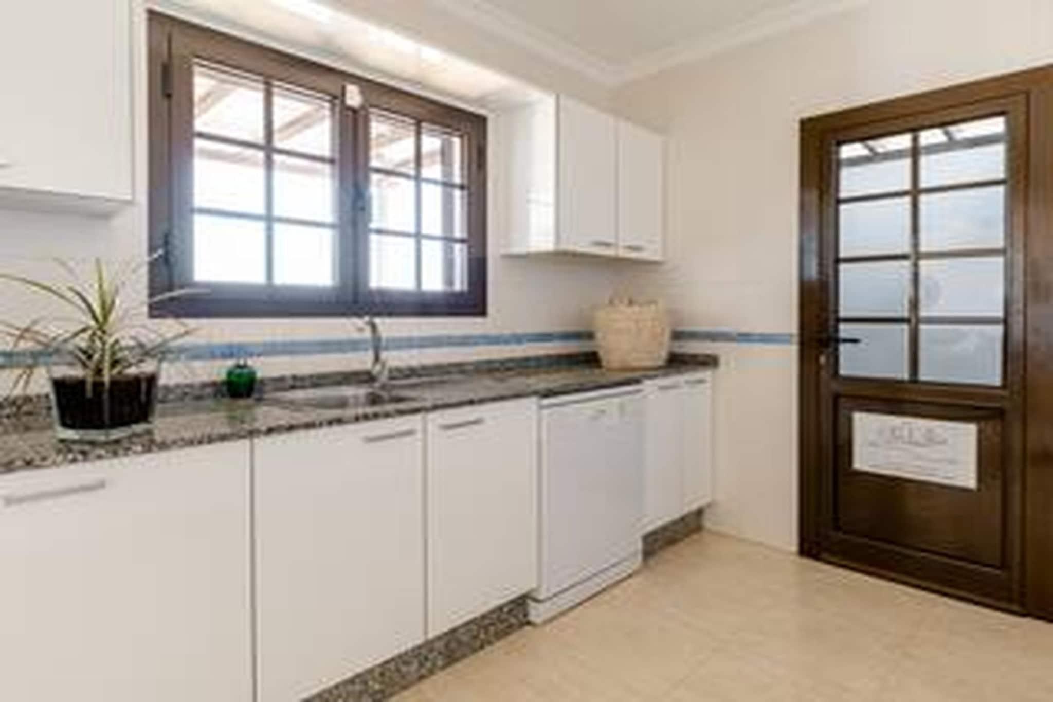 Vil du nyde fred og harmoni i denne romantiske villa? Den spektakulære udsigt over kysten af Puerto del Carmen vil charme dig. Stuen er rummelig, varm og lys med et rustikt bjælkeloft. Spisestuen har en antik "Bernegal" (bruges til vandfiltrering), som det er typisk her på De Kanariske Øer. Det indre af dette hus er meget moderne, enkelt men forankret i traditionerne i regionen. De lyse farver af hvid og beige bringer harmoni. De hvide hovedgavler i soveværelserne er designet til at skabe en afslappet følelse. Nyd en rolig eftermiddag og slappe af i dit eget chill-out område med palmer og klart blå pool vand. Notat! Hvis du ønsker at gøre brug af opvarmning af poolen, bør du rådgive viceværten 1 uge før dit ophold.
