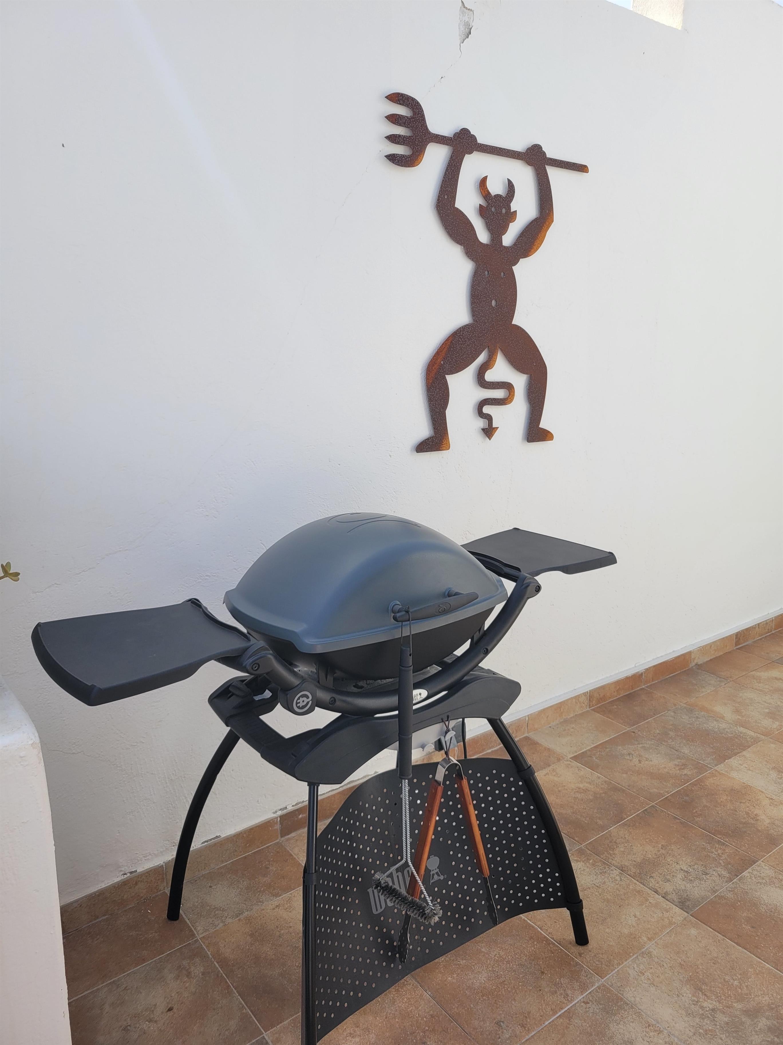 Handtücher und Strandhandücher liegen bereit. Es ist eine Klimaanlage im Wohn und Schlafzimmer ( bei kühleren Tagen auch als Heizung nutzbar) ein Safe ist auch vorhanden. Auf der Terrasse steht ihnen ein Weber Elektro Grill für gemütliche Grillabende zur Verfügung, ich möchte sie bitten, diesen nach Nutzung zu reinigen!