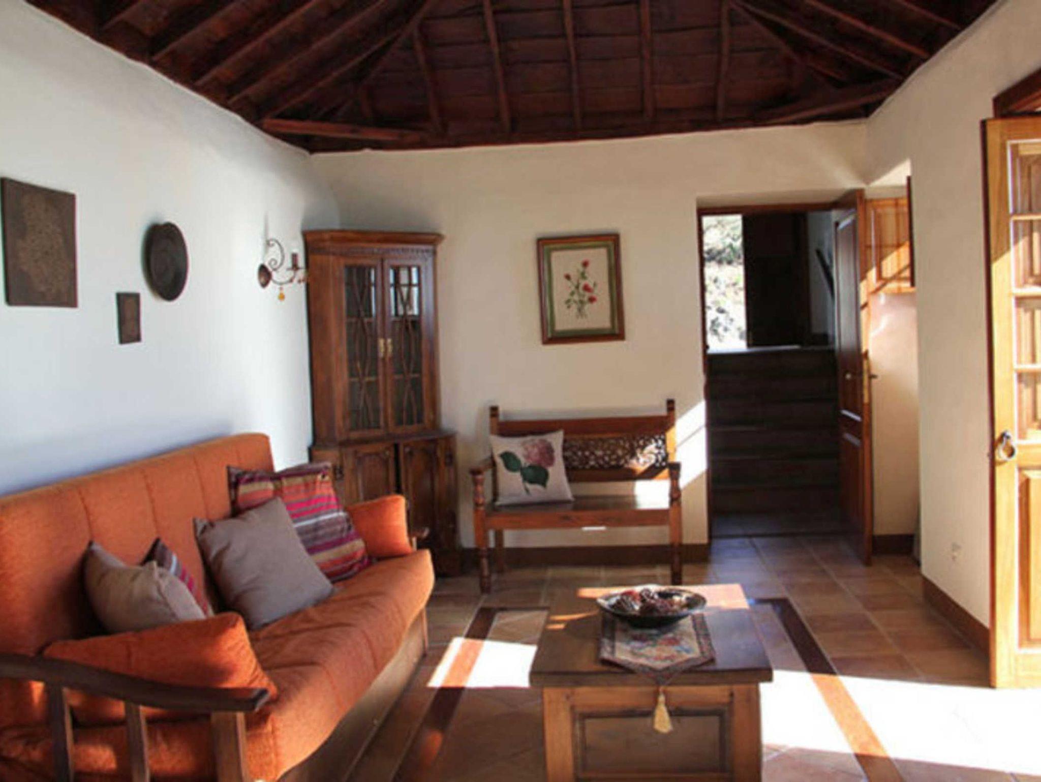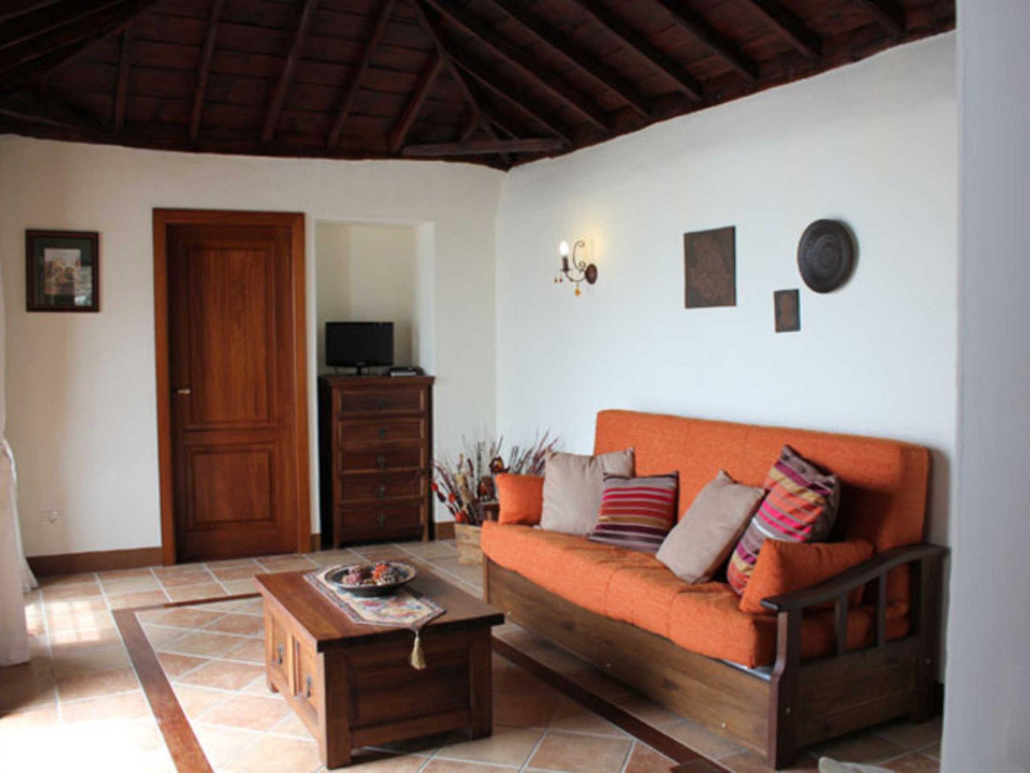 Das Wohnzimmer ist großzügig geschnitten und durch seinen direkten Zugang zur Terrasse sehr hell. Auf dem großen Sofa können Sie es sich gemütlich machen und den unverbauten Blick in die Natur und auf das Meer genießen. Bei sehr klarer Sicht sehen Sie von hier aus sogar Teneriffa. Ein Fernseher mit Sat TV steht zur Verfügung, sollten Sie einmal nicht den Abend auf der Terrasse genießen wollen.