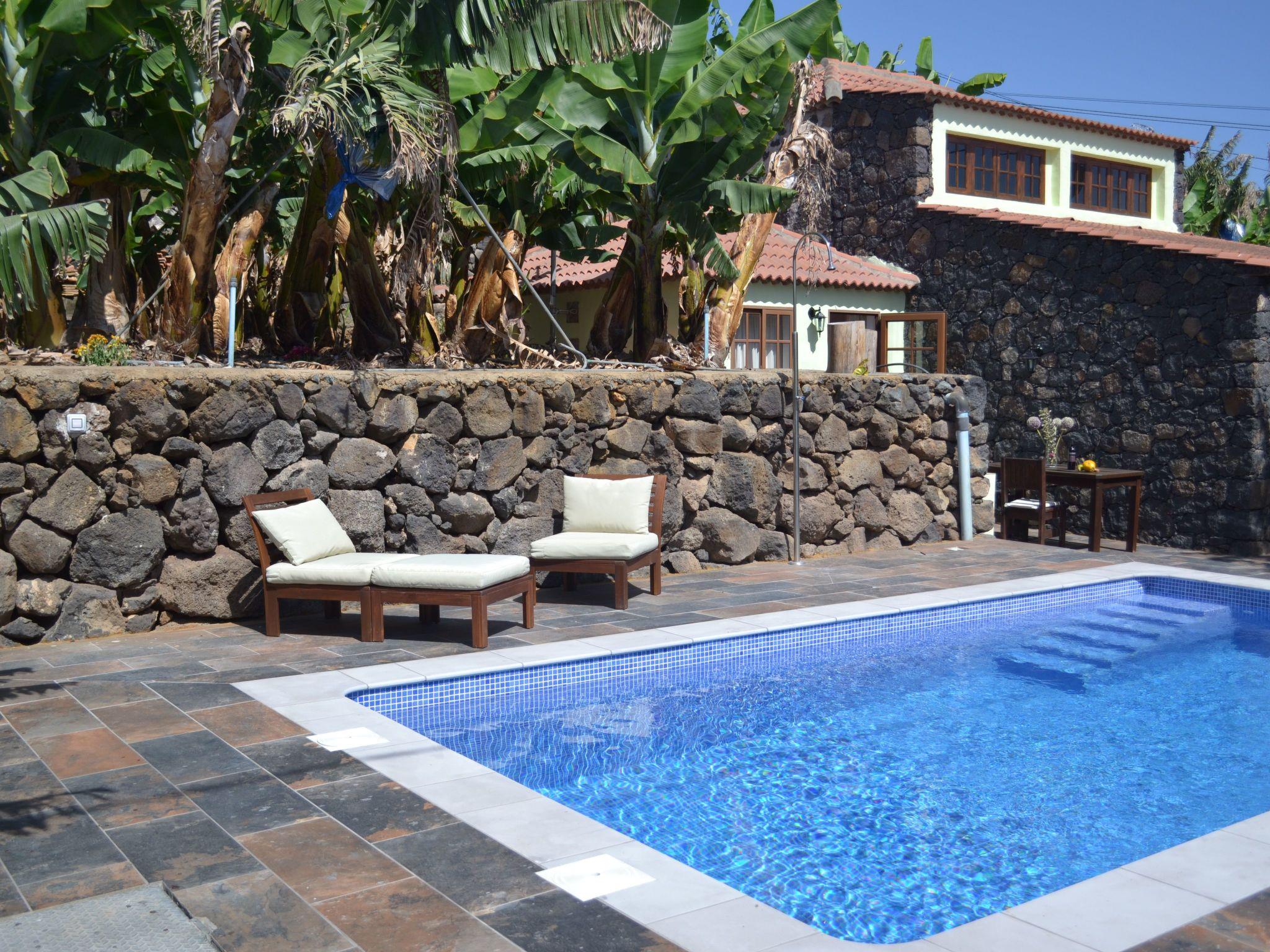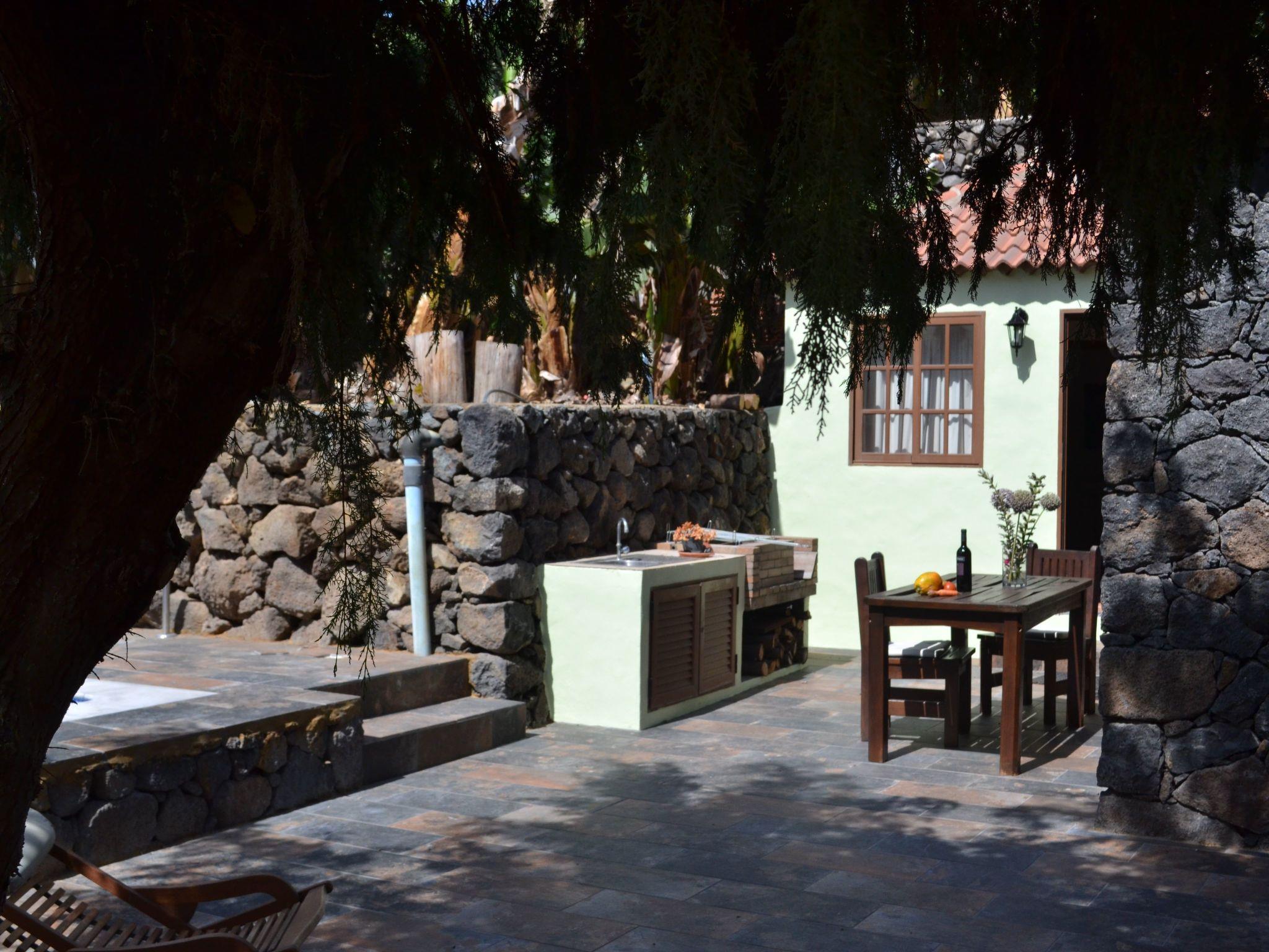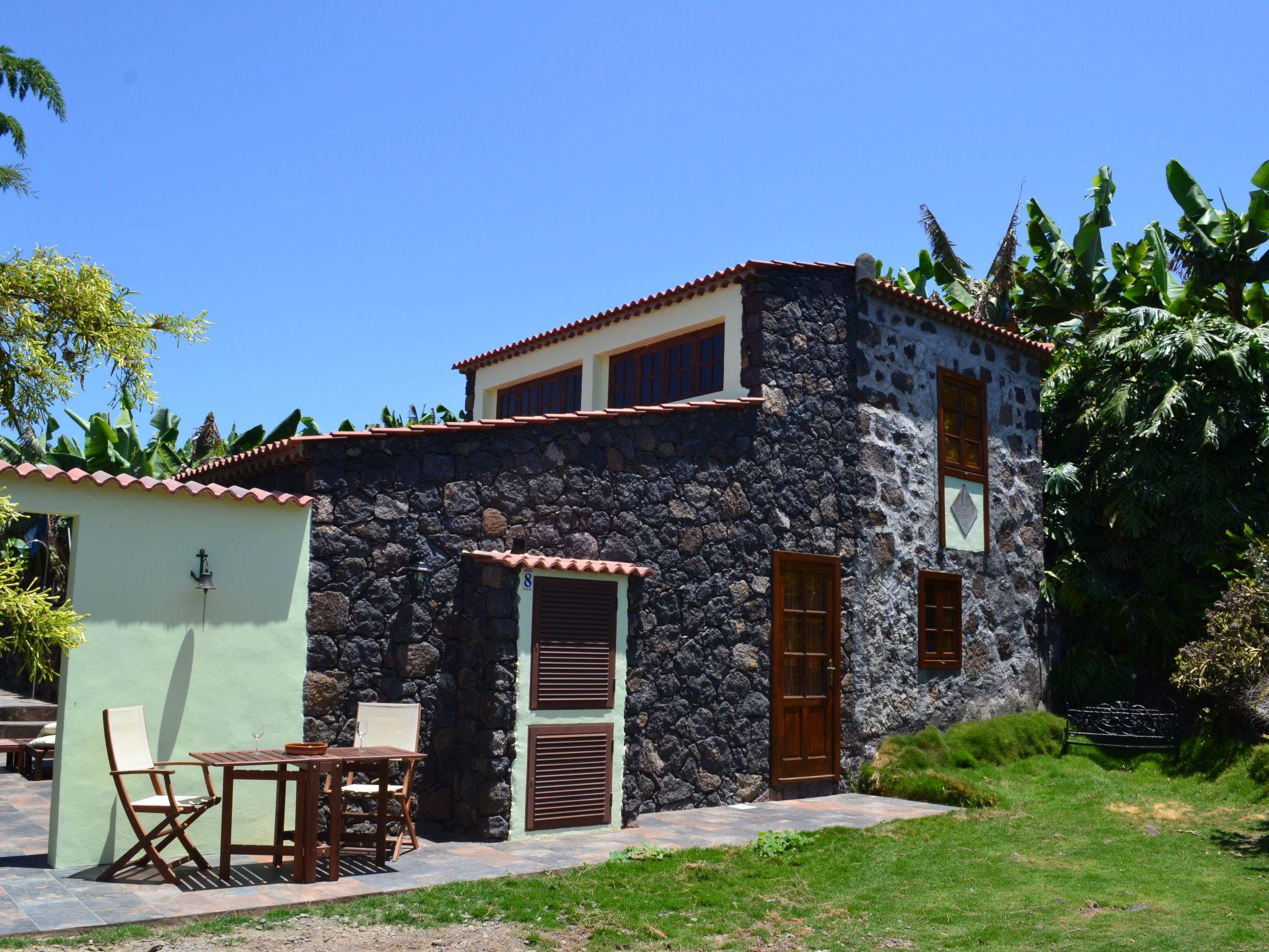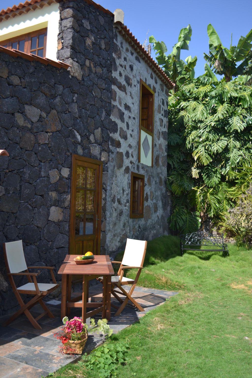 This typical Canarian detached holiday home dates back to the end of the 18th century and was completely restored in 2000 respecting its original construction. However, the walls are still carved in stone and some of the original wooden ceilings and tiles have been preserved. The house is situated in the west of the island near the beach and is at the end of a road near a 10.000 m² banana plantation. It is easily accessible by car. Thanks to its location at only 200 m above sea level, the climate is good all year round and temperatures rarely drop below 20 °C.