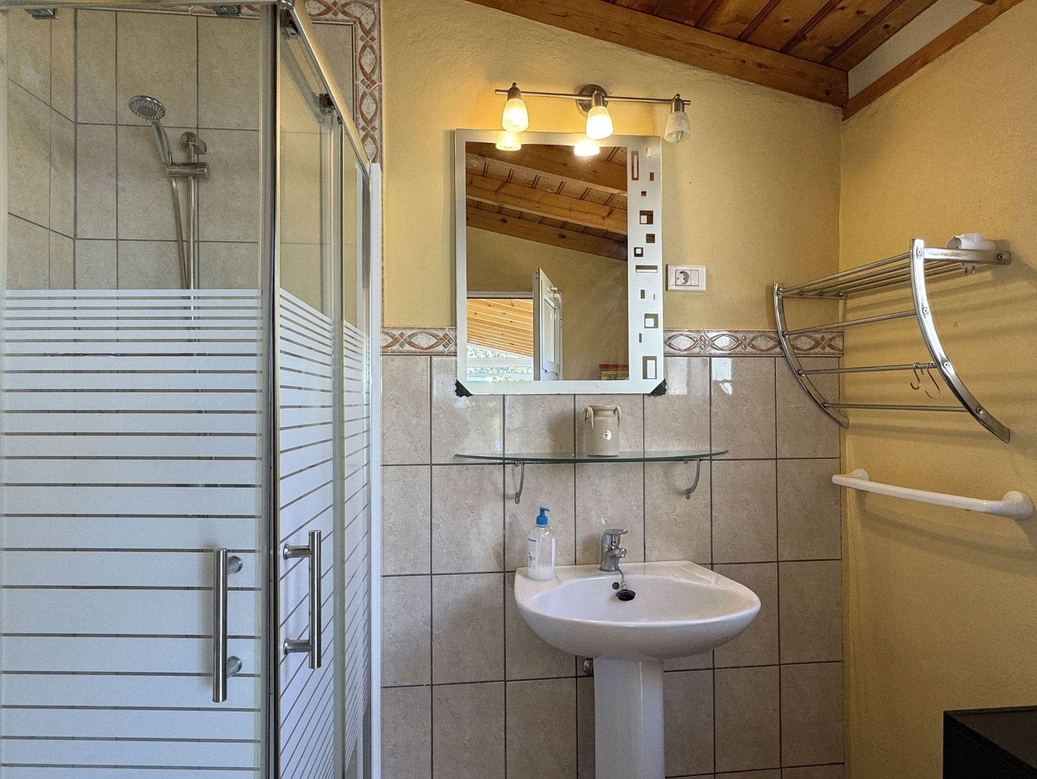 Im Bad finden Sie Dusche, Waschbecken, WC, einen kleinen Abstellschrank und Waschmaschine sowie einen Heizstrahler vor.