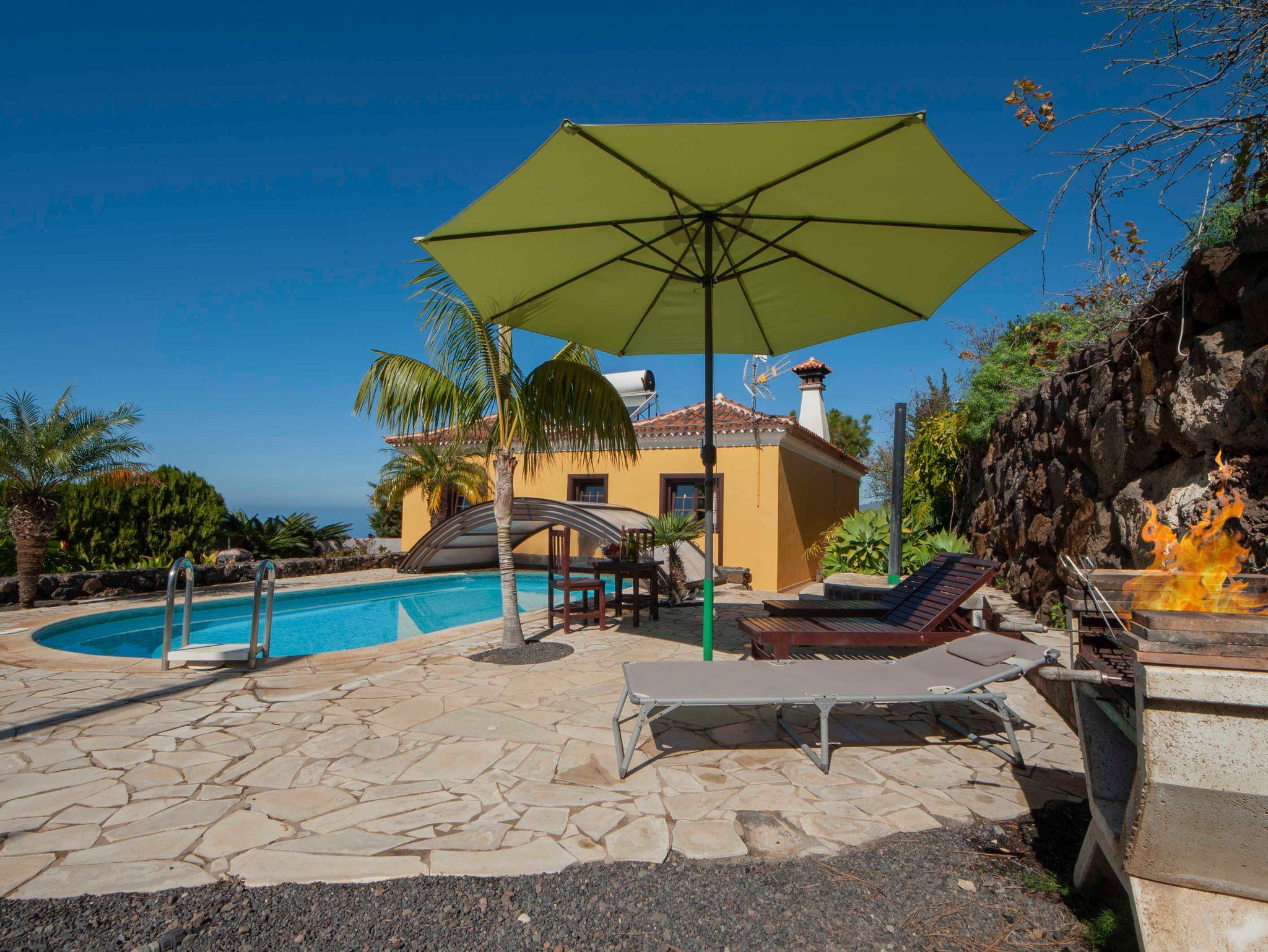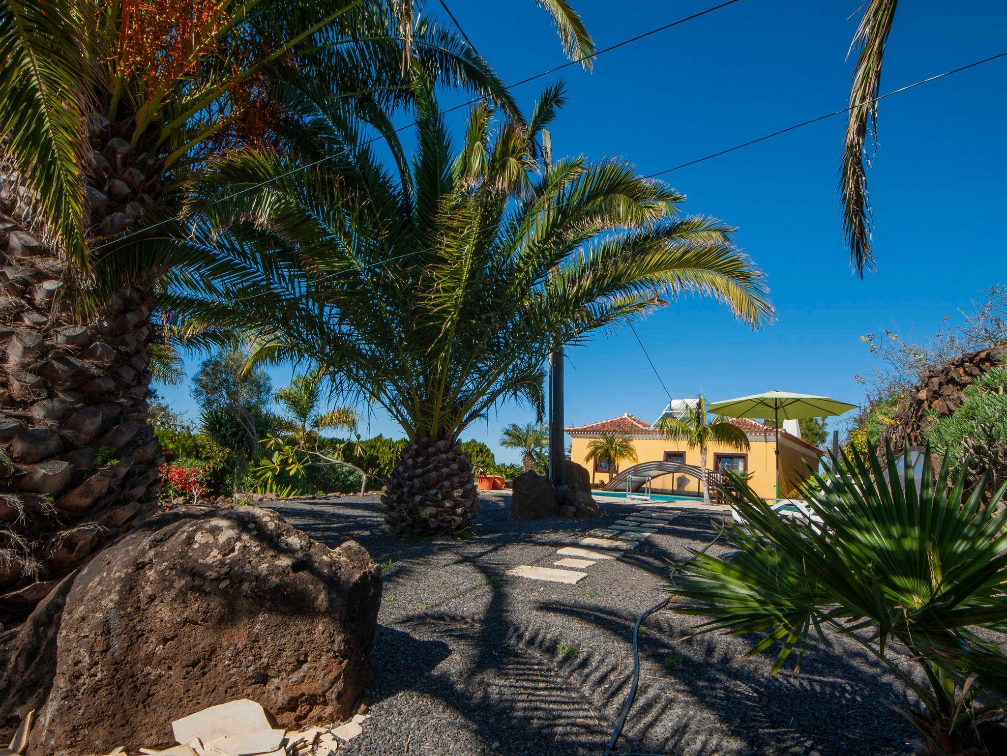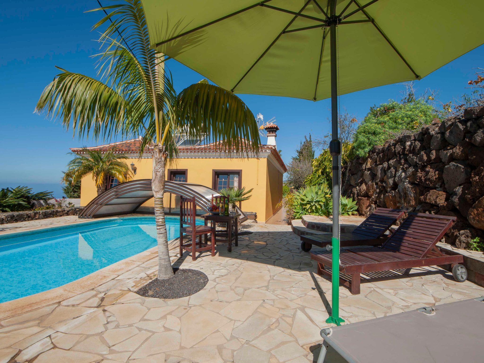 Villa Vista Azul liegt unterhalb von La Punta de Tijarafe auf ca. 350müM. Durch seine Lage in Küstennähe herrscht fast ganzjährig ein gutes Klima, selten weniger als 20°. Das Haus liegt in etwas abseits vom Camino Juan de Valle. Das 1.200m² große Grundstück ist von außen uneinsehbar und gewährleistet absolute Privatsphäre.