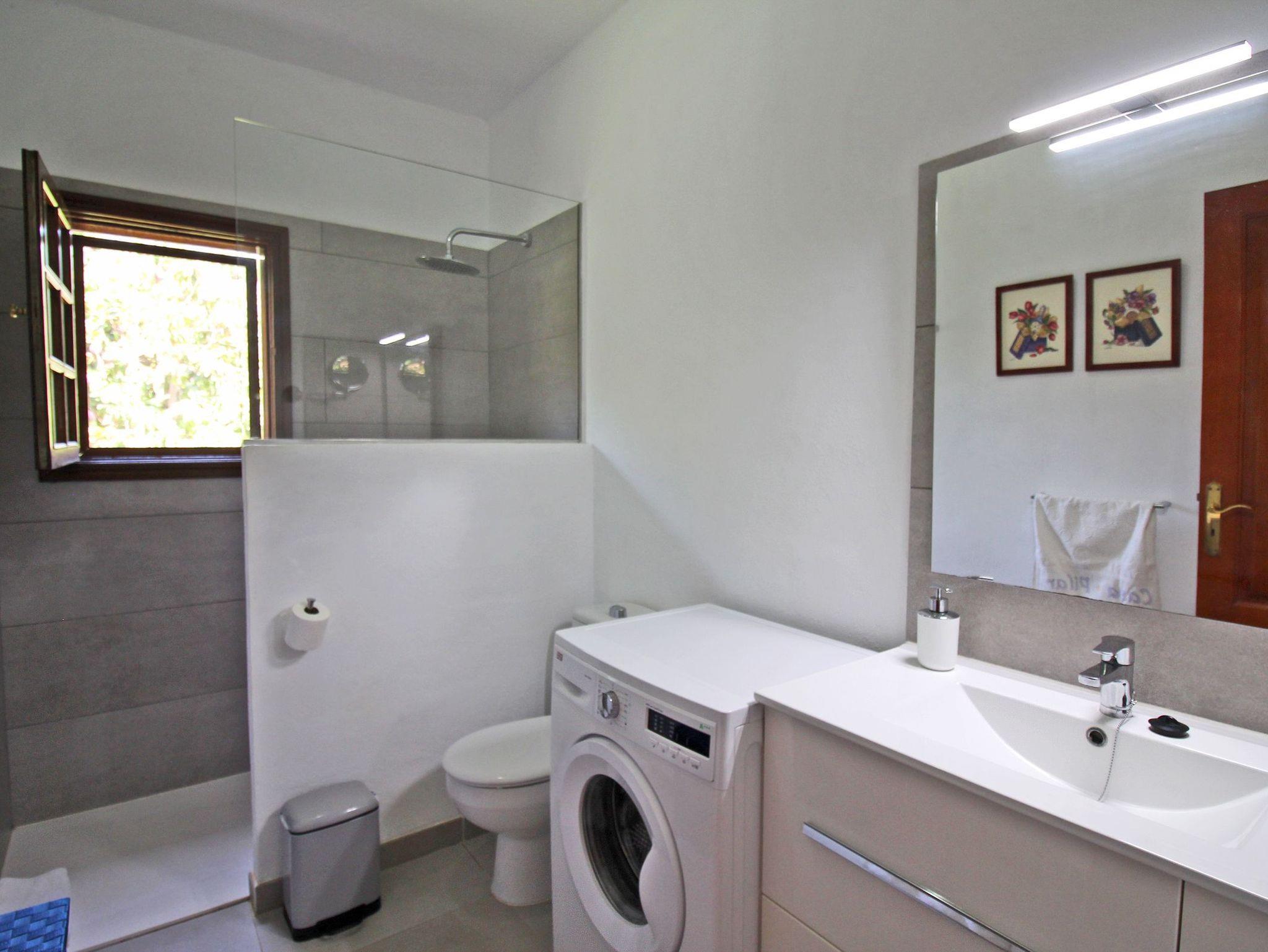 Zwischen den beiden Schlafzimmern befindet sich das Bad, der kleine Wellnessbereich des Hauses. In der Hydromassagedusche können Sie sich ordentlich durchmassieren lassen oder Sie stellen ein entspanntes Dampfbad ein. Iim Bad ist auch die Waschmaschine untergebracht.