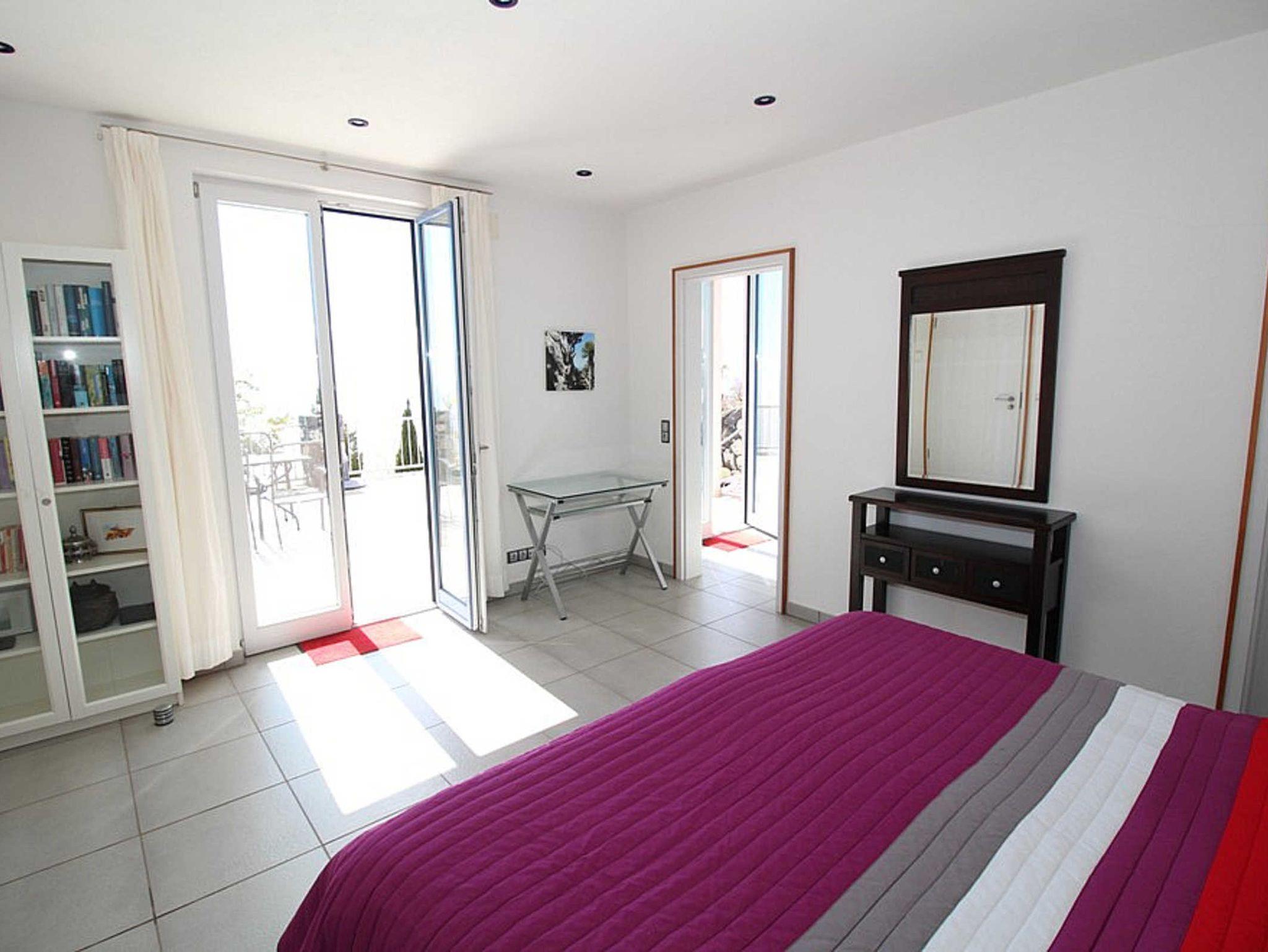 Im unteren Stock liegt das große helle Schlafzimmer mit direktem Zugang zur Hauptterrasse sowie zum Pool. Morgens nach dem Aufstehen als Erstes ein paar Runden schwimmen - egal ob in den Wintermonaten oder im Sommer - hier ists möglich. Auch dank Poolheizung.