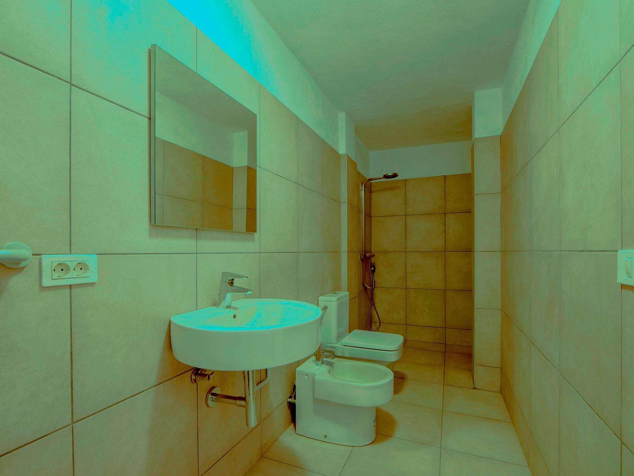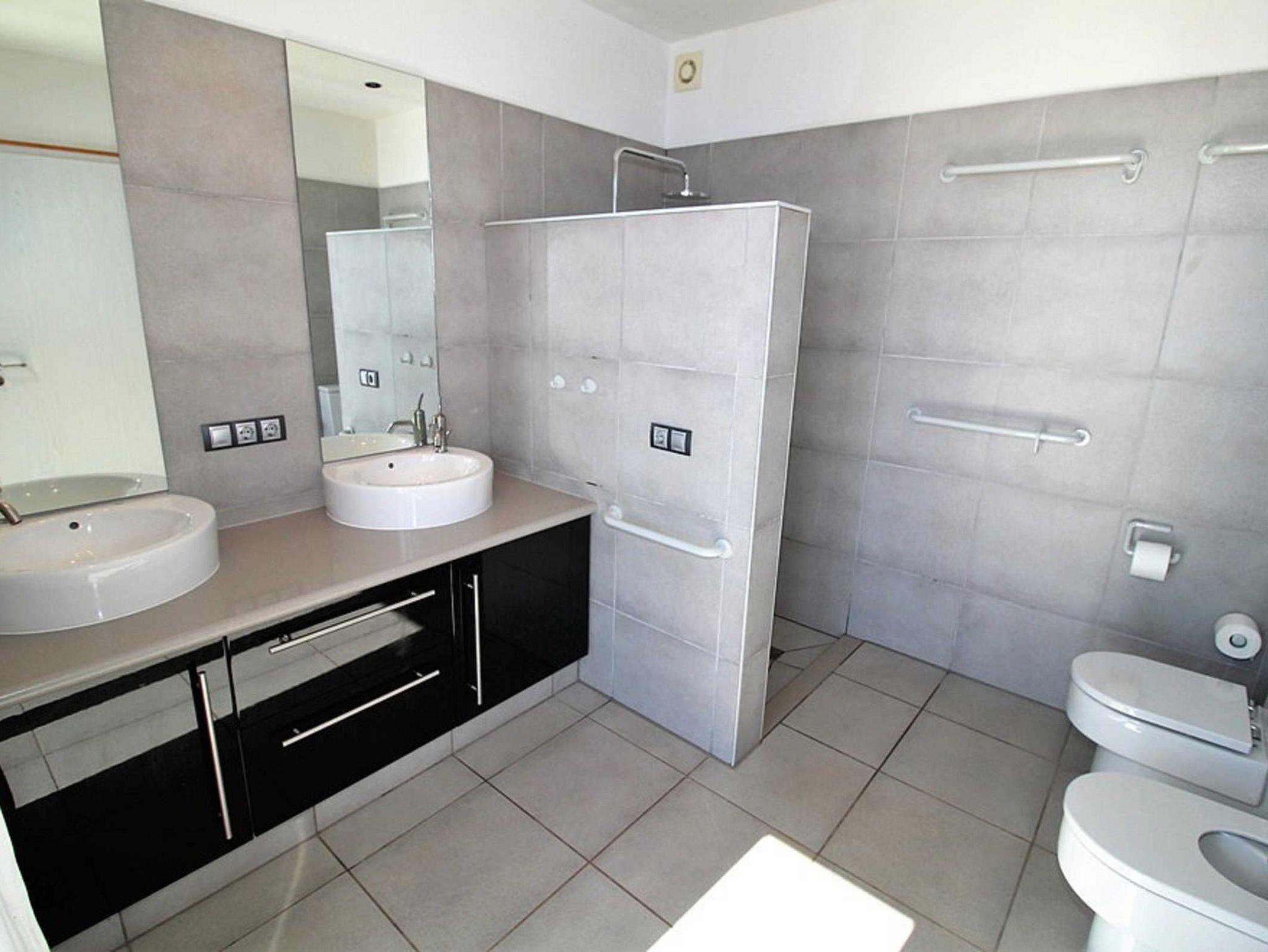 • 1 großes Bad: mit Regen-Dusche, Doppelwaschbecken, Toilette, Bidet