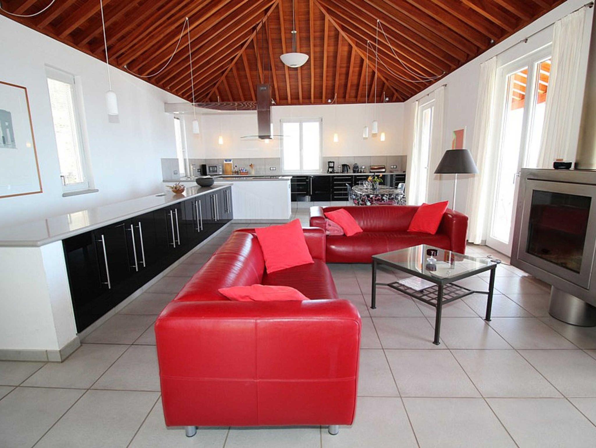 • Wohnsalon (erster Stock): drehbarer Designer - Kamin, Ledersitzgarnitur, Flachbildschirm mit deutschem TV, DVD / CD Spieler, Radio, kleine Buch- und DVD-Sammlung, überdachter Balkon, wunderbarer Blick auf harmonische Landschaft und Atlantik