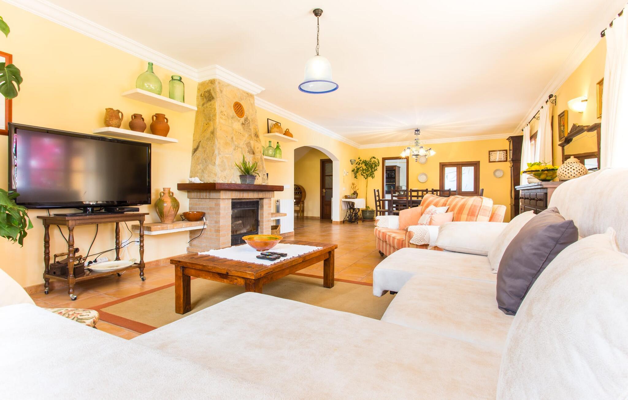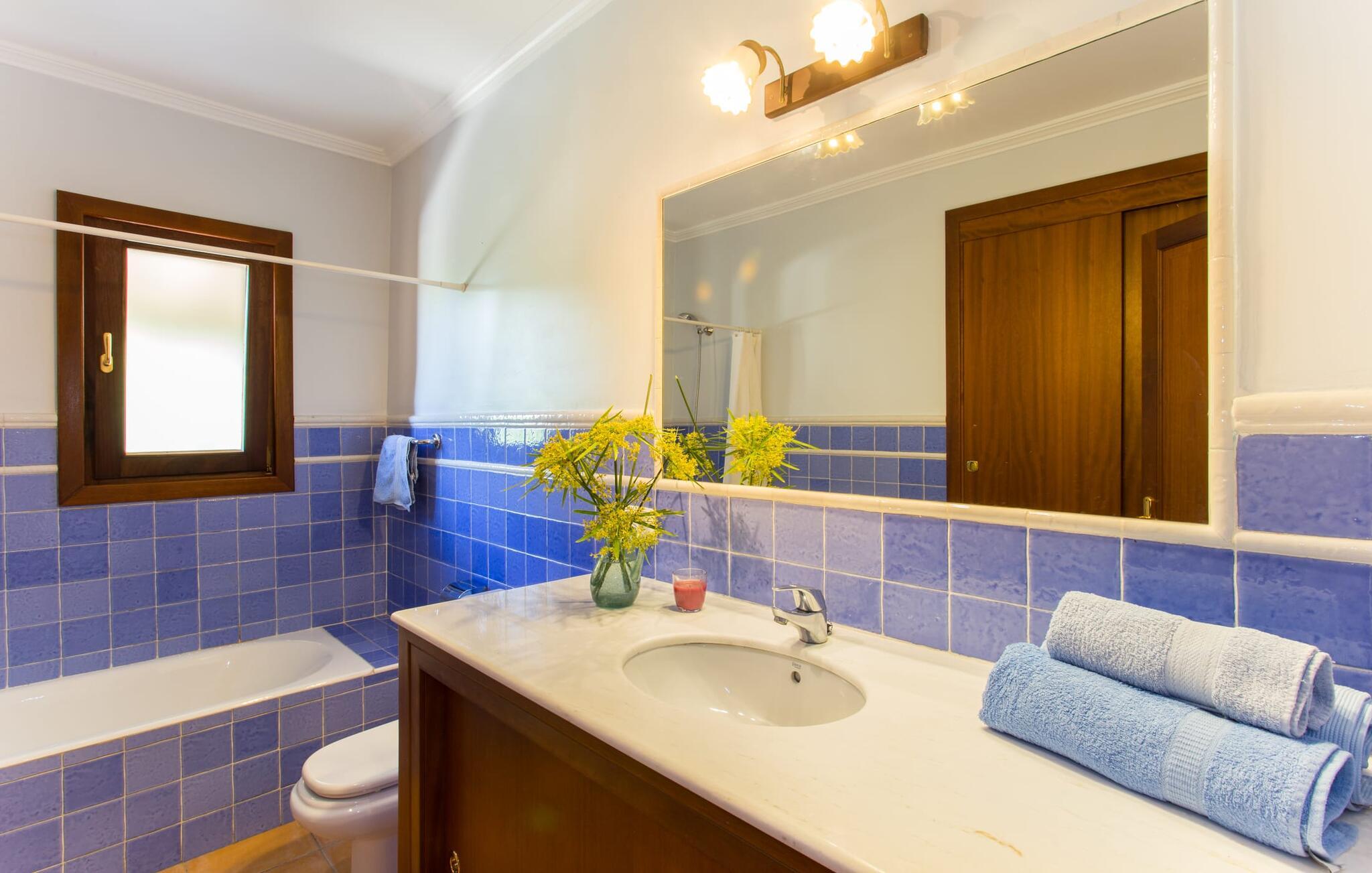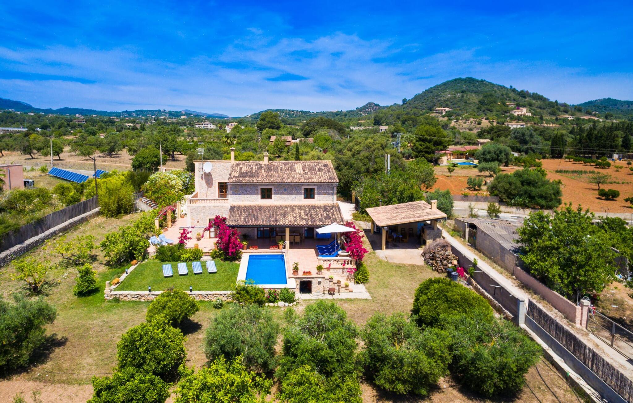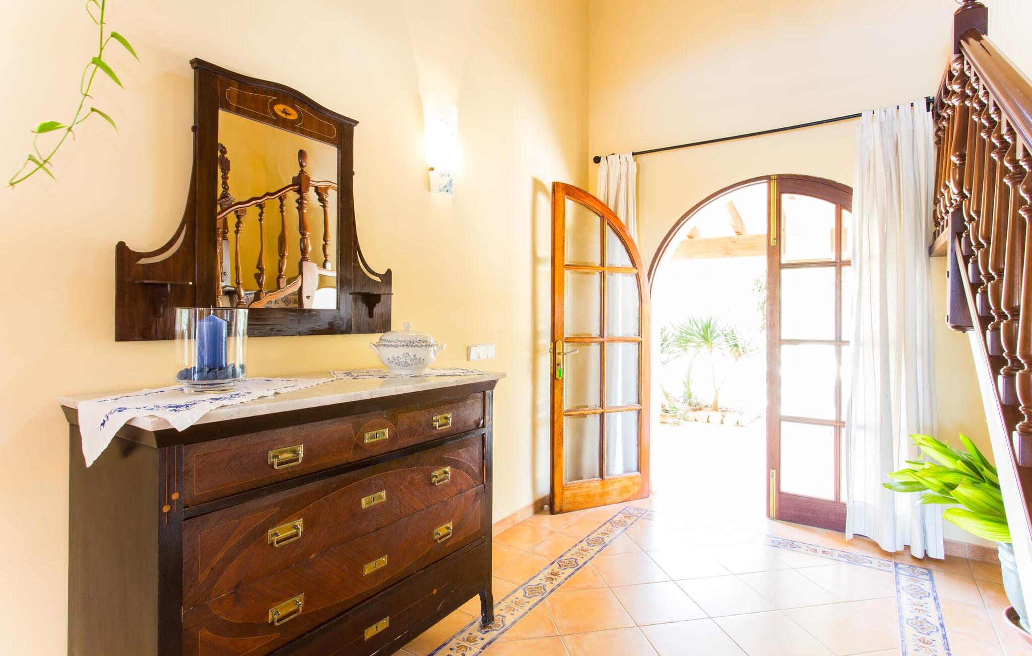 Den to-etagers villa "Tolo" kan mere beskrives som en solid mærkesneaker end som en smart trendy sandal. Den deler det glitrende hav i nærheden og de asfalterede (og nogle gange hørbare) adgangsveje med andre landejendomme: præcist passende, robust med farverige accenter, holdbart, behageligt, virkelig værdi for pengene. Det rigtige fodtøj, der vil tage jer med på en vellykket ferie på Mallorca, til den overdækkede terrasse ved siden af huset dekoreret med bougainvilleaer med direkte pooladgang, til den store altan på første sal med udsigt til de skovklædte bakker og det blå hav, til den lille grønne græsplæne Solbad eller tag stentrappen ind i haven under jeres egne appelsintræer. Og selvfølgelig kan I bruge den til at gå på jagt efter specialiteter til en ordentlig grill i al slags vejr. Kun små børn vil finde disse sko for store, da poolen ikke er sikret og derfor udgør en potentiel fare. Hvis I kan lide at gå barfodet hen over kølige fliser på varme sommerdage, er der mere end plads nok i to etager; Den flisebelagte trappe, der fører til de fire soveværelser og to badeværelser ovenpå, er en perle trin for trin. “Tolo” var delvist indrettet med antikke træmøbler i klassisk mallorcansk stil – solid kvalitet kombineret med lyse, varme farver. Lyset, der falder gennem mange vinduer, giver også rummet en vis vægtløshed. I den store stue med XXL fjernsyn og pejs kan I synke ned i de bløde hynder eller sidde sammen ved det lange spisebord foran køkkenet, som primært er et arbejdskøkken. Et andet gæsteværelse med badeværelse fuldender stueetagen, og et af dobbeltværelserne på øverste etage kan også bruges som et tredobbelt værelse, hvis det kræves. De praktiske aspekter er i forgrunden; Villaen er et sted at bo og have det godt og bør ikke være et udstillings- eller katalogobjekt. Hvis I vil bevæge jer frit i og omkring huset og langs den travle østkyst, bør I helt sikkert sætte Villa “Tolo” på jeres shortlist! Verdensbyer blev bygget på syv bakker, så lille Son Servera kan sagtens konkurrere med varierende højder. Et par smalle gader fører stejlt op til en vidunderlig udsigt over den nærliggende kyst, som lokker med sandstrande, klitter og enorme drypstenshuler. På varme sommerdage byder strandpromenaden i Playa de Sa Coma på skyggefuldt læ. Mellem Cap des Pinar og Punta de sa Roca er der talrige badesteder og promenader omkring kystbyerne Cala Millor, Sa Coma og S'Illot. I hjertet af landet er skovområdet omkring Sant Llorenç des Cardassar ideelt til vandreture, cykling eller ridning, og med lidt held fører en populær cirkulær rute gennem den varierede naturpark på Llevant-halvøen af skarver, vandrefalke eller skildpadder. Glem ikke at pakke vandrestøvler OG flipflops eller sandaler... Vores afsondrede, rustikke finca "Tolo" ligger på den populære østkyst med talrige strande, i udkanten af byen Son Servera, med gode transportforbindelser , havudsigt og indkøbsmuligheder på kun 2 km Afstand. Ma-4040/4042 tager jer til de maleriske gader i den populære Artà på knap et kvarter. Interessante kystbyer (fra idylliske til glamourøse) og strandperler som Cala Millor, Cala Bona, Costa dels Pins og Cala Agulla samt den børnevenlige sandstrand Sa Marjal kan også hurtigt nås. Og næsten lige uden for døren venter Pula Golf på, at I kan starte.