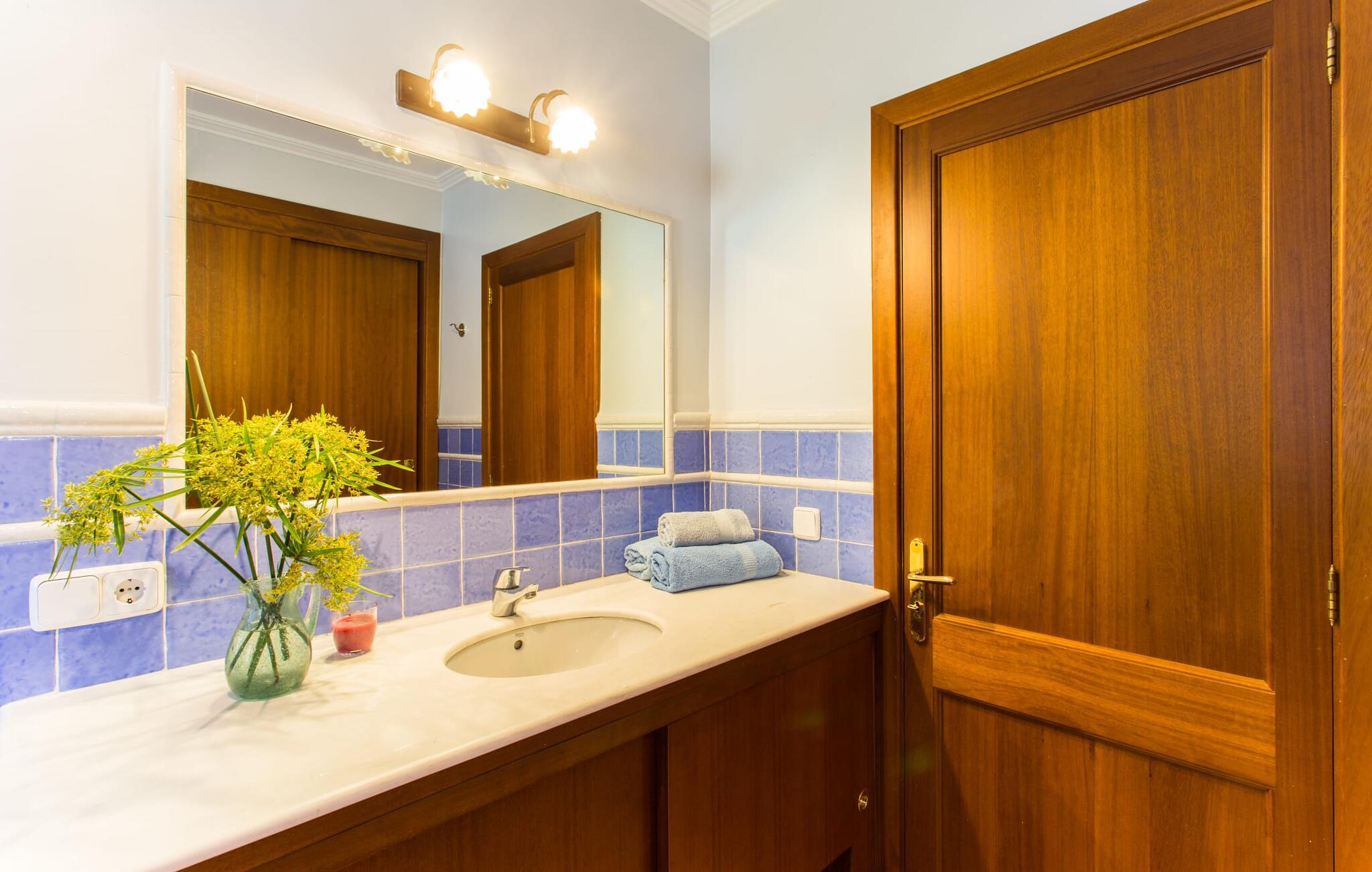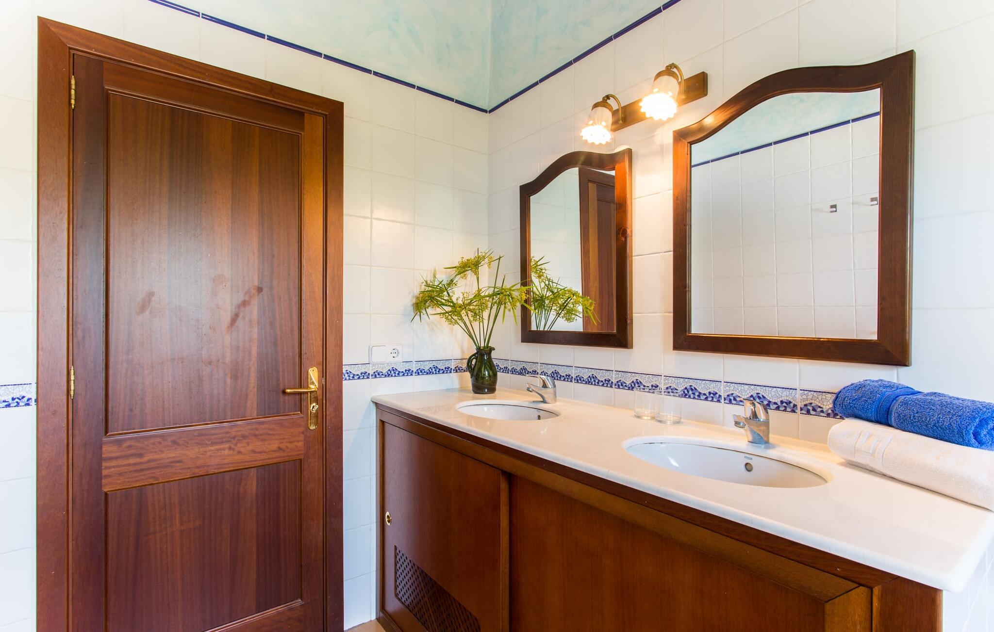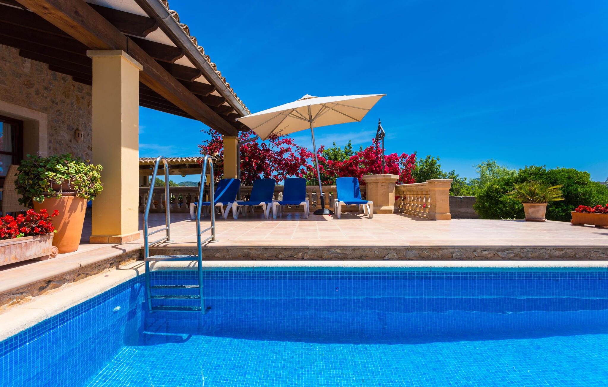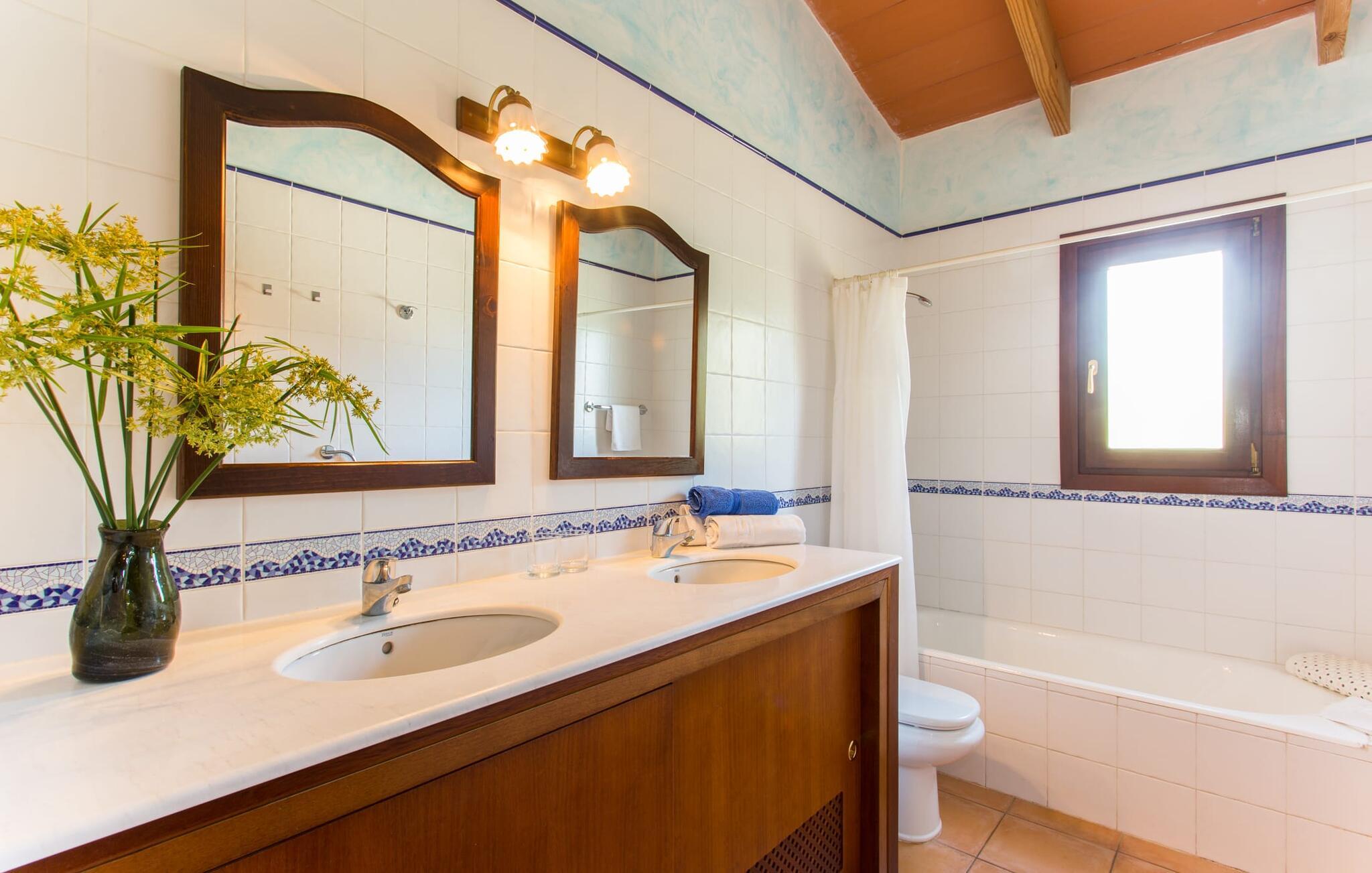 Den to-etagers villa "Tolo" kan mere beskrives som en solid mærkesneaker end som en smart trendy sandal. Den deler det glitrende hav i nærheden og de asfalterede (og nogle gange hørbare) adgangsveje med andre landejendomme: præcist passende, robust med farverige accenter, holdbart, behageligt, virkelig værdi for pengene. Det rigtige fodtøj, der vil tage jer med på en vellykket ferie på Mallorca, til den overdækkede terrasse ved siden af huset dekoreret med bougainvilleaer med direkte pooladgang, til den store altan på første sal med udsigt til de skovklædte bakker og det blå hav, til den lille grønne græsplæne Solbad eller tag stentrappen ind i haven under jeres egne appelsintræer. Og selvfølgelig kan I bruge den til at gå på jagt efter specialiteter til en ordentlig grill i al slags vejr. Kun små børn vil finde disse sko for store, da poolen ikke er sikret og derfor udgør en potentiel fare. Hvis I kan lide at gå barfodet hen over kølige fliser på varme sommerdage, er der mere end plads nok i to etager; Den flisebelagte trappe, der fører til de fire soveværelser og to badeværelser ovenpå, er en perle trin for trin. “Tolo” var delvist indrettet med antikke træmøbler i klassisk mallorcansk stil – solid kvalitet kombineret med lyse, varme farver. Lyset, der falder gennem mange vinduer, giver også rummet en vis vægtløshed. I den store stue med XXL fjernsyn og pejs kan I synke ned i de bløde hynder eller sidde sammen ved det lange spisebord foran køkkenet, som primært er et arbejdskøkken. Et andet gæsteværelse med badeværelse fuldender stueetagen, og et af dobbeltværelserne på øverste etage kan også bruges som et tredobbelt værelse, hvis det kræves. De praktiske aspekter er i forgrunden; Villaen er et sted at bo og have det godt og bør ikke være et udstillings- eller katalogobjekt. Hvis I vil bevæge jer frit i og omkring huset og langs den travle østkyst, bør I helt sikkert sætte Villa “Tolo” på jeres shortlist! Verdensbyer blev bygget på syv bakker, så lille Son Servera kan sagtens konkurrere med varierende højder. Et par smalle gader fører stejlt op til en vidunderlig udsigt over den nærliggende kyst, som lokker med sandstrande, klitter og enorme drypstenshuler. På varme sommerdage byder strandpromenaden i Playa de Sa Coma på skyggefuldt læ. Mellem Cap des Pinar og Punta de sa Roca er der talrige badesteder og promenader omkring kystbyerne Cala Millor, Sa Coma og S'Illot. I hjertet af landet er skovområdet omkring Sant Llorenç des Cardassar ideelt til vandreture, cykling eller ridning, og med lidt held fører en populær cirkulær rute gennem den varierede naturpark på Llevant-halvøen af skarver, vandrefalke eller skildpadder. Glem ikke at pakke vandrestøvler OG flipflops eller sandaler... Vores afsondrede, rustikke finca "Tolo" ligger på den populære østkyst med talrige strande, i udkanten af byen Son Servera, med gode transportforbindelser , havudsigt og indkøbsmuligheder på kun 2 km Afstand. Ma-4040/4042 tager jer til de maleriske gader i den populære Artà på knap et kvarter. Interessante kystbyer (fra idylliske til glamourøse) og strandperler som Cala Millor, Cala Bona, Costa dels Pins og Cala Agulla samt den børnevenlige sandstrand Sa Marjal kan også hurtigt nås. Og næsten lige uden for døren venter Pula Golf på, at I kan starte.