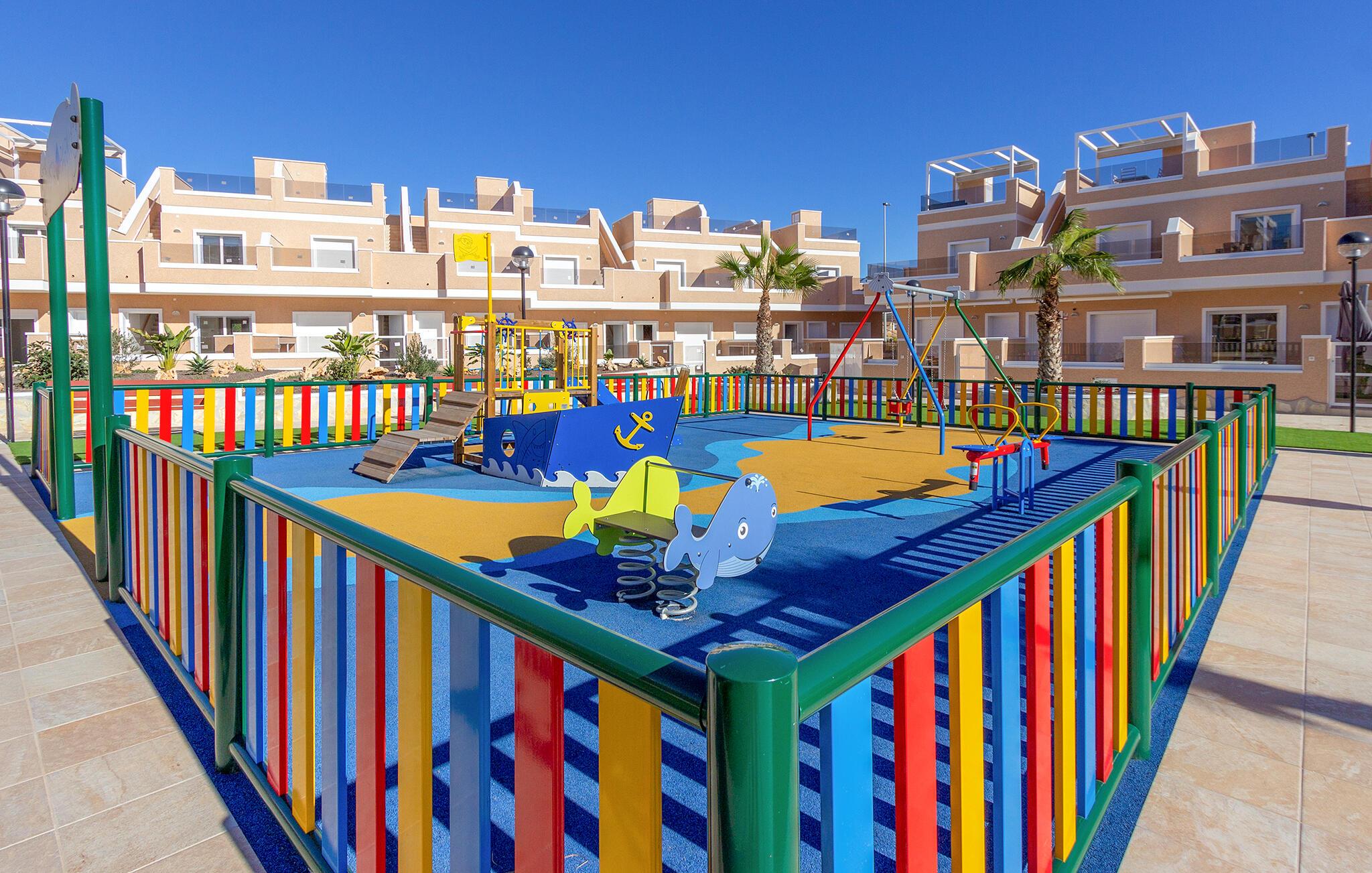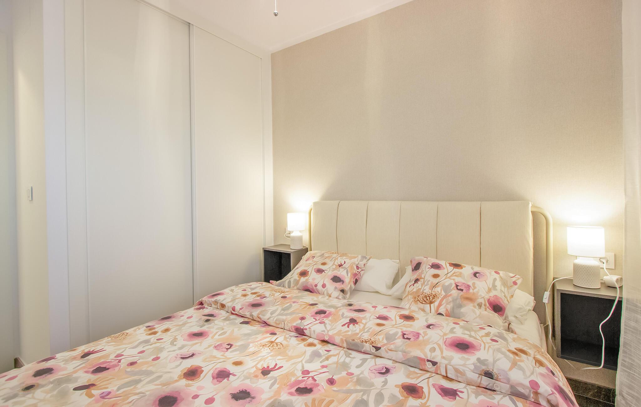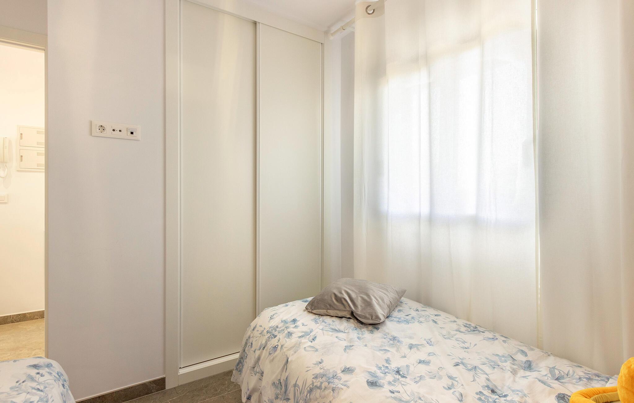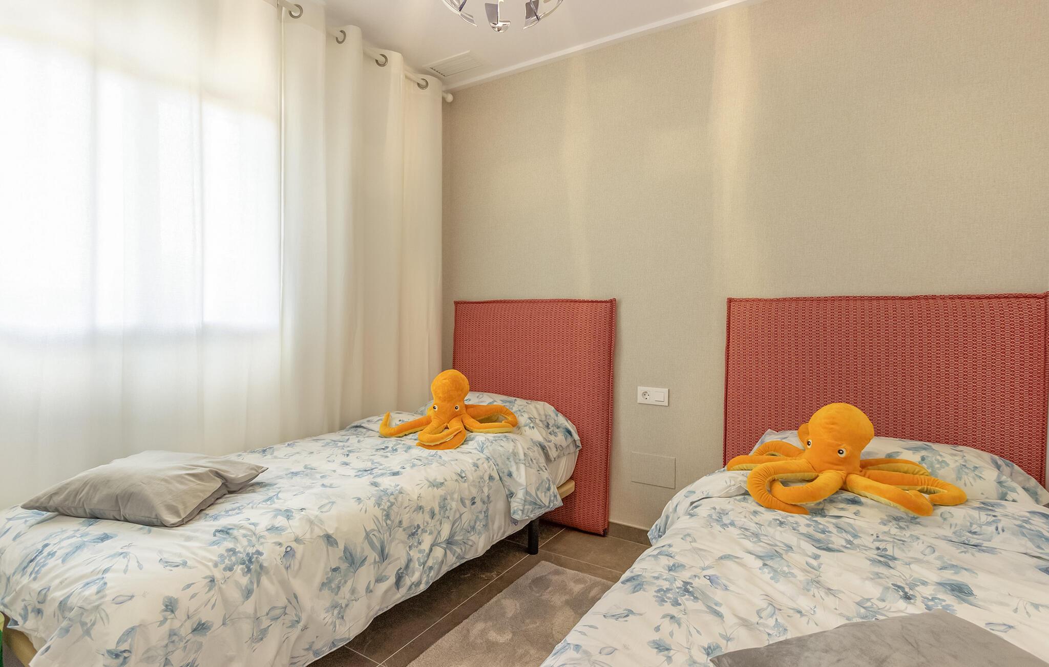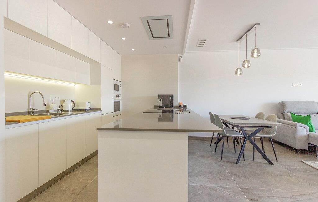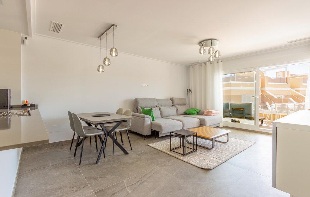 Begynd dagene i denne ferielejlighed i Torre de la Horadada på Costa Blanca med morgenmad på den solrige terrasse og nyd udsigten til det velholdte boligkompleks og det smukke poolområde. Find jer godt til rette på de komfortable stole og planlæg jeres feriedag. Den rummelige opholds- og spisestue med åbent køkken er smukt og moderne indrettet. Tilbered jeres egne måltider og nyd dem sammen ved spisebordet. Så slap af i sofaen og afslut dagen med en film eller en god samtale.