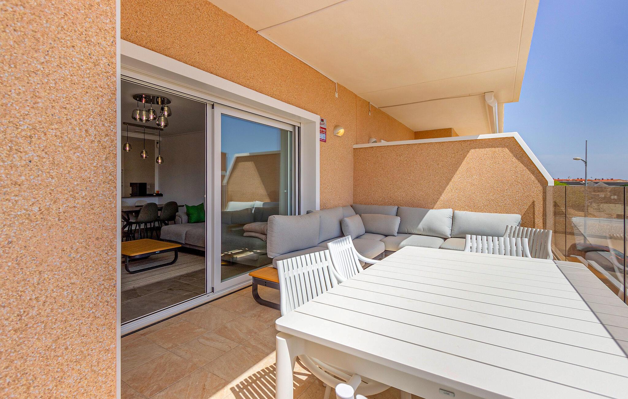 Glæd jer til en dejlig ferie i denne moderne ferielejlighed med en fantastisk terrasse.
