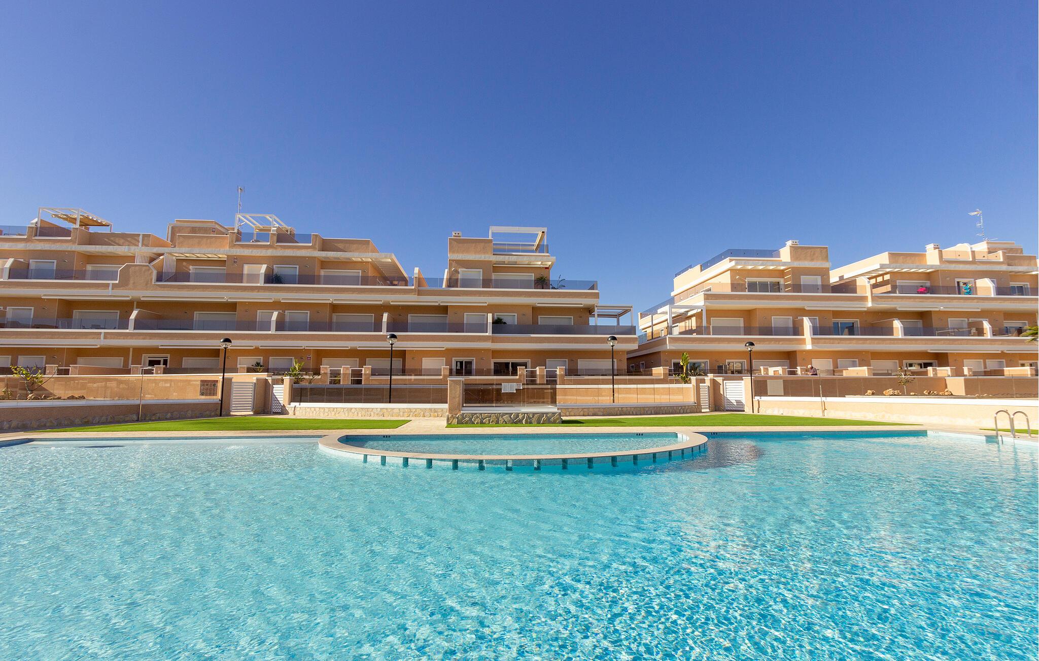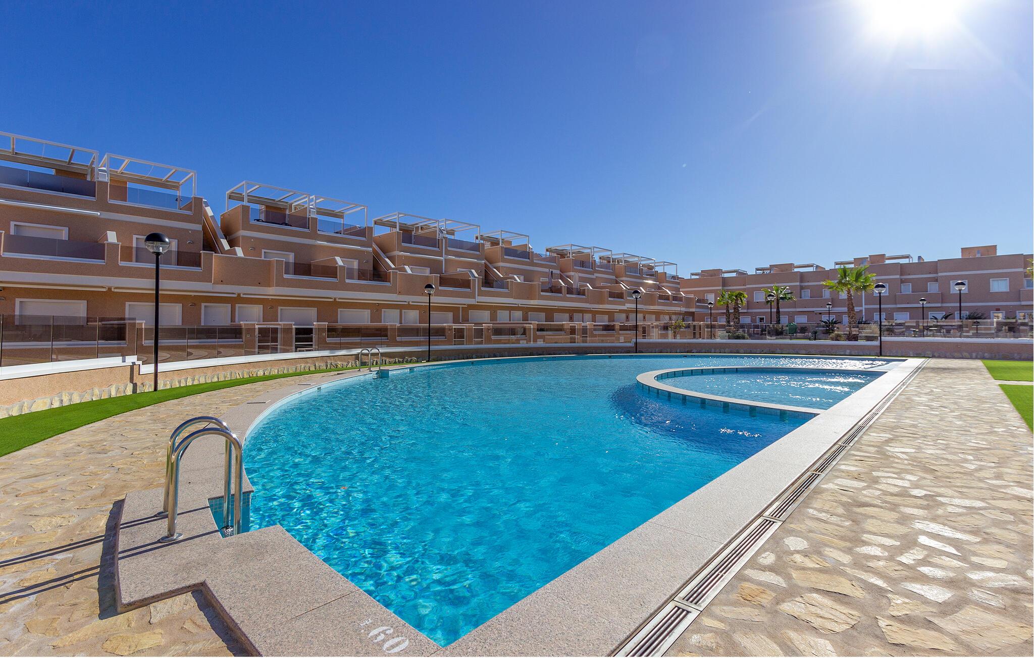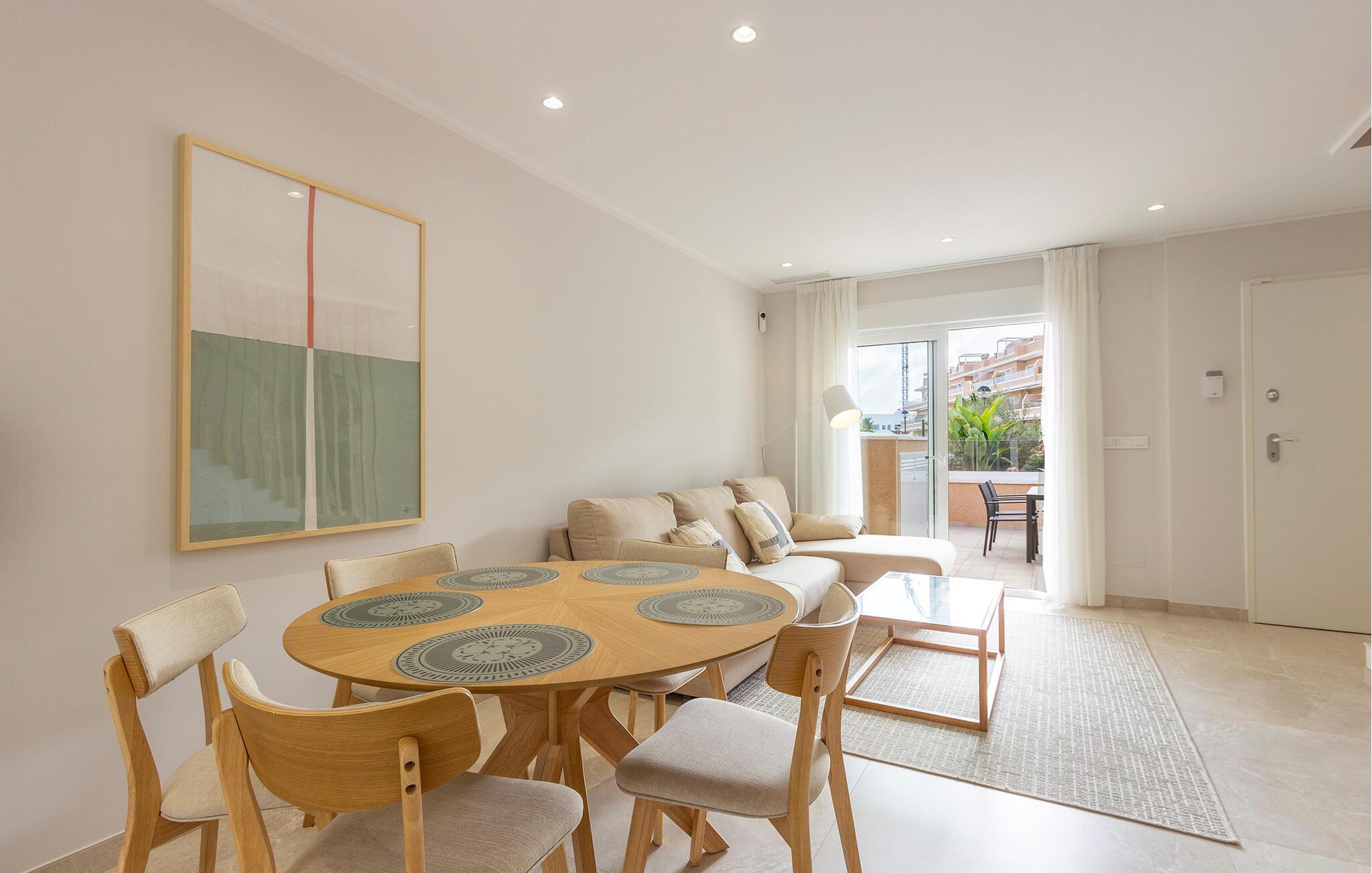 Oplev den naturskønne klitlandskab med de rosafarvede saltsøer, eller udforsk de lange sandstrande på cykel langs de veludbyggede stier – ideelt til familieudflugter. Gå ikke glip af den historiske by Orihuela og dens charme. For dem, der elsker natteliv og shopping, byder det nærliggende Torrevieja på masser af muligheder.
