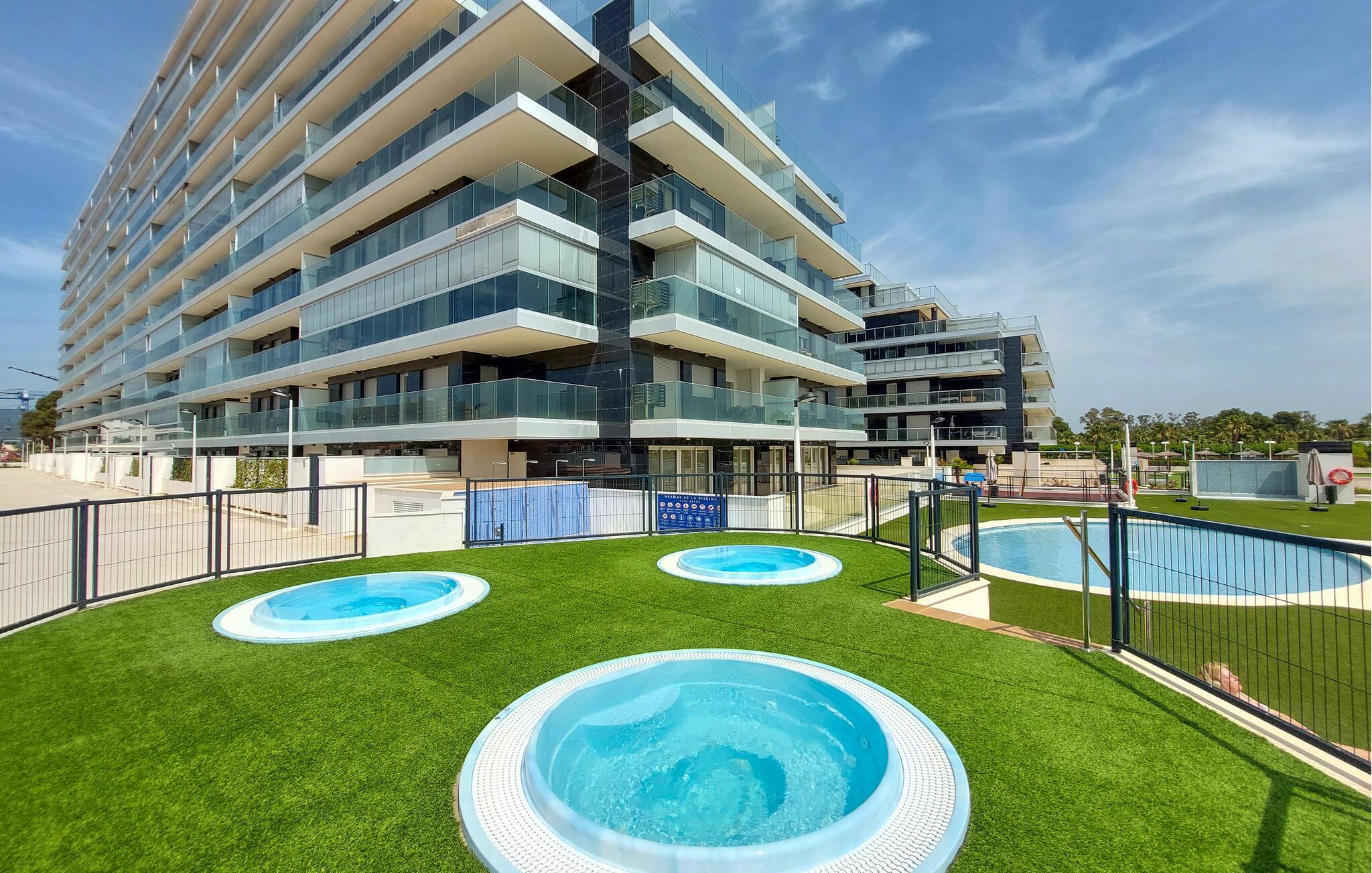 Det fælles udendørsområde har et fantastisk poolkompleks med en stor, forfriskende pool og flere spabade. Dyk ned i det klare vand som det første om morgenen, eller slentr ned til stranden for en dukkert i Middelhavet. Server en god morgenmad på terrassen og nyd et glas vin her på lune sommeraftener.